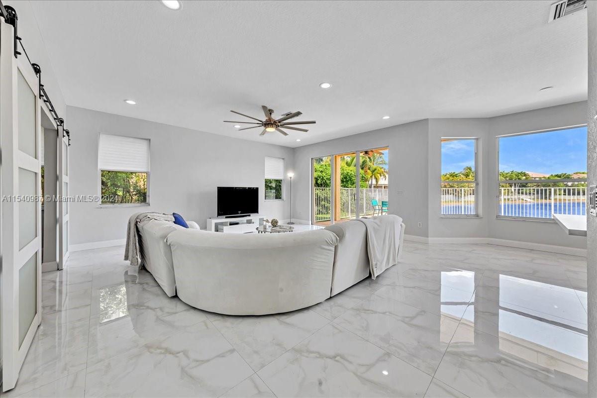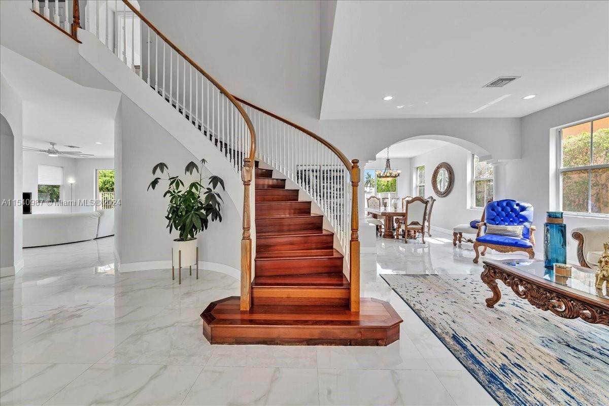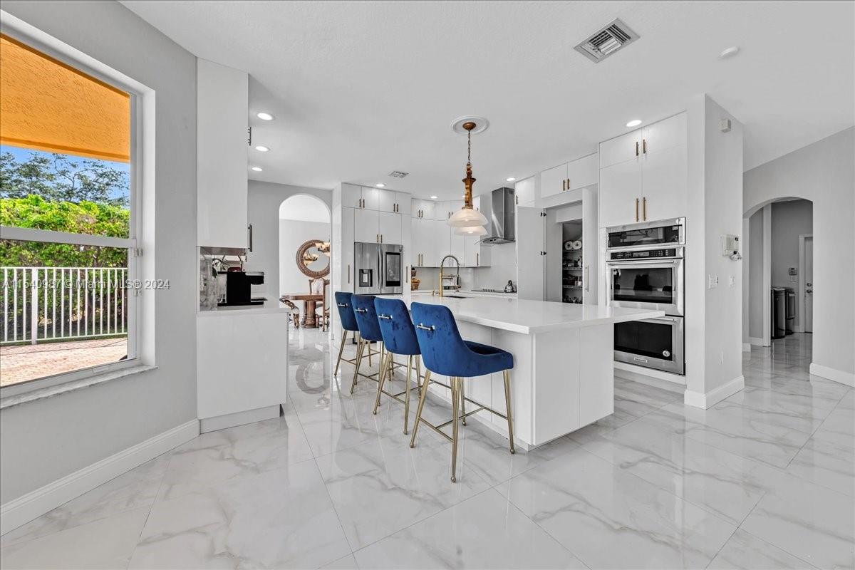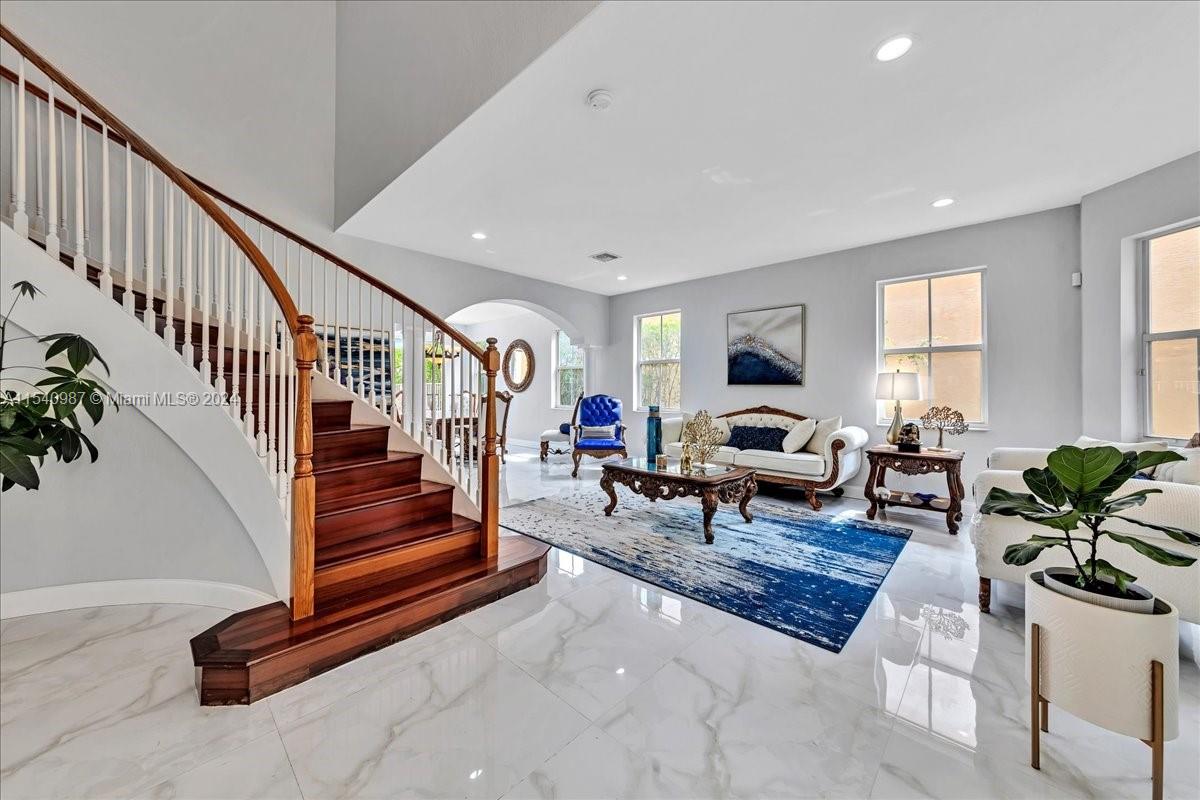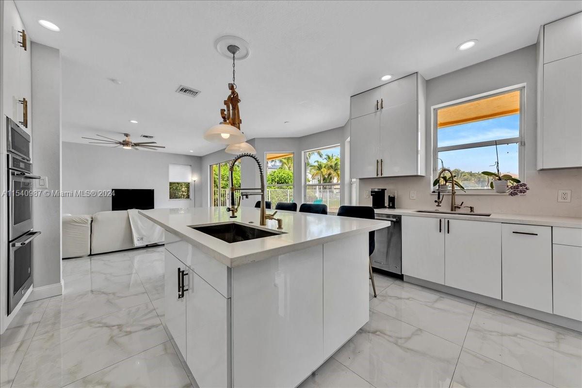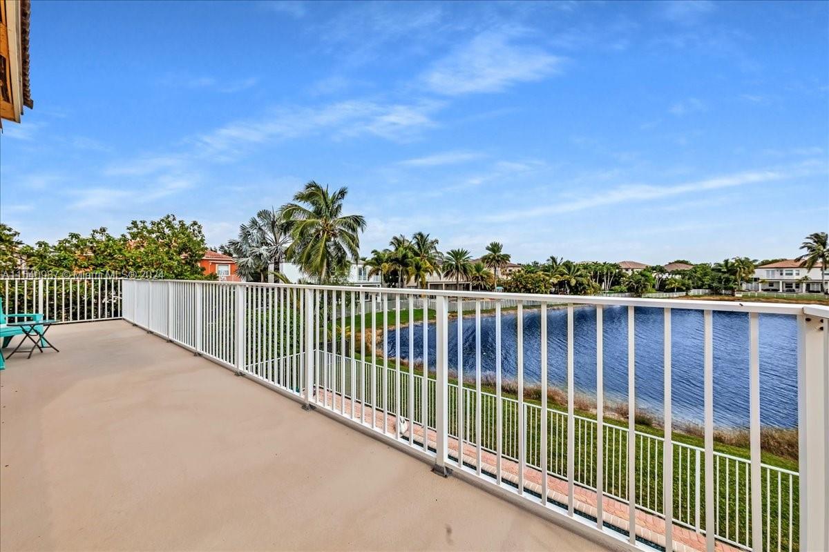Beautiful 5/3.5 Bedroom/Den, 3 car garage, pool/lake view home located in cul-de-sac of the exclusive community of Riviera Isles. This meticulously well kept home offers an ample balcony overlooking the serene lake/pool area and a totally renovated kitchen with an ample island and SS appliances - perfect for the most discerning buyer who loves to cook and entertain. The huge Master Bedroom is a plus with 2 bathrooms, his & hers, with an ample shower and separated hot tub made of this area your private oasis. Additionally there is one bedroom and one full bath in first floor for extra convenience. Riviera Isles has a multimillion-dollar clubhouse, heated pool, tennis, basketball, gym, and 24hr security. Top-rated schools, close to shopping, dining, and major highways.