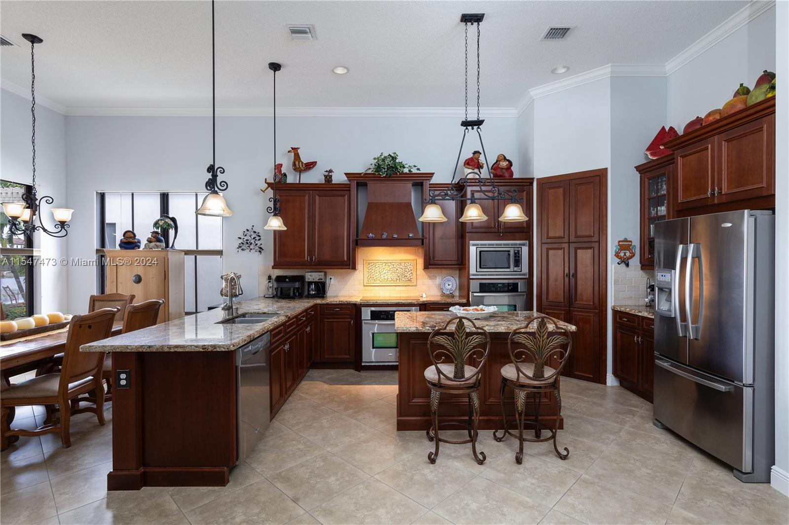 Building Area: 3,798 sf. Living Area: 2,860 sf. MAGNIFICENT DREAM HOME in the luxurious gated community of MONTERRA that offers a perfect blend of splendid lifestyle and comfort. RELAXING VIEW OF THE LAKE from a screened patio with a beautiful pergola. Natural travertine patio floors create an elegant and cozy ambiance with automated screens. Lavish and elegantly designed new landscape. Natural light floods through high impact windows. Beautiful kitchen in the heart of the house connects to the family room, informal dining area and the huge patio for enjoyment and relaxation. Resort-style community includes club house, party room, gym, pool, tennis, basketball, children’s water playground, on site administration, dog park and a walking and biking trail. A+ schools.