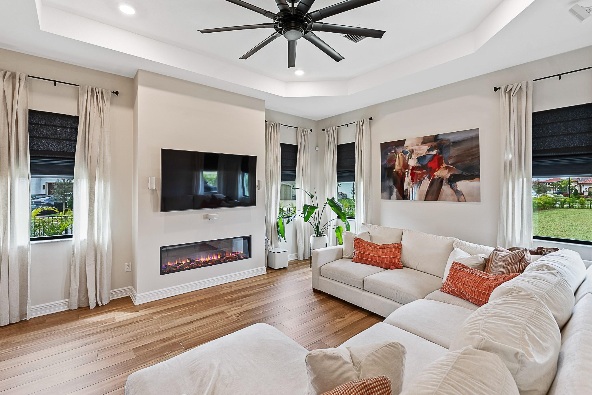 Welcome to the Hibiscus Model in Parkland Bay! This newly built home offers 4 Bed, 3 Full bath, a closed door Den/Office Space on a 17,000+ sq ft lot. Luxury waterproof flooring and custom made, retractable Roman Shades are installed throughout the entire home. The custom built breakfast nook, built in electric fireless fireplace & beautifully curated lighting make this 2022 built property feel like home. Outside, enjoy your ENORMOUS 17,173 sq ft lot with freshly installed landscaping and Areca Palm privacy hedges. Newly laid travertine pavers and a screened in patio space make it the perfect sunset spot. Parkland Bay offers a spectacular lifestyle with its resort style amenities including a Fitness Center, beach entry lakeside pool, playground - and so much more.