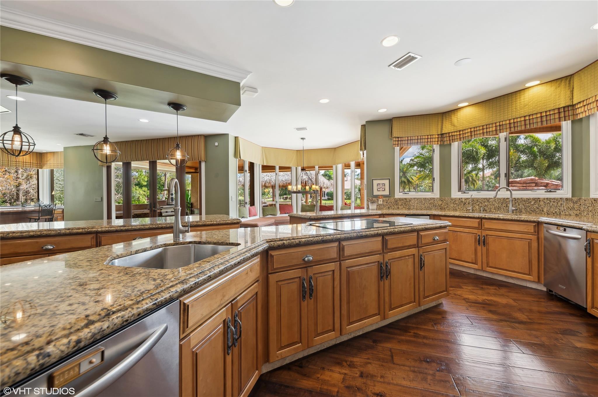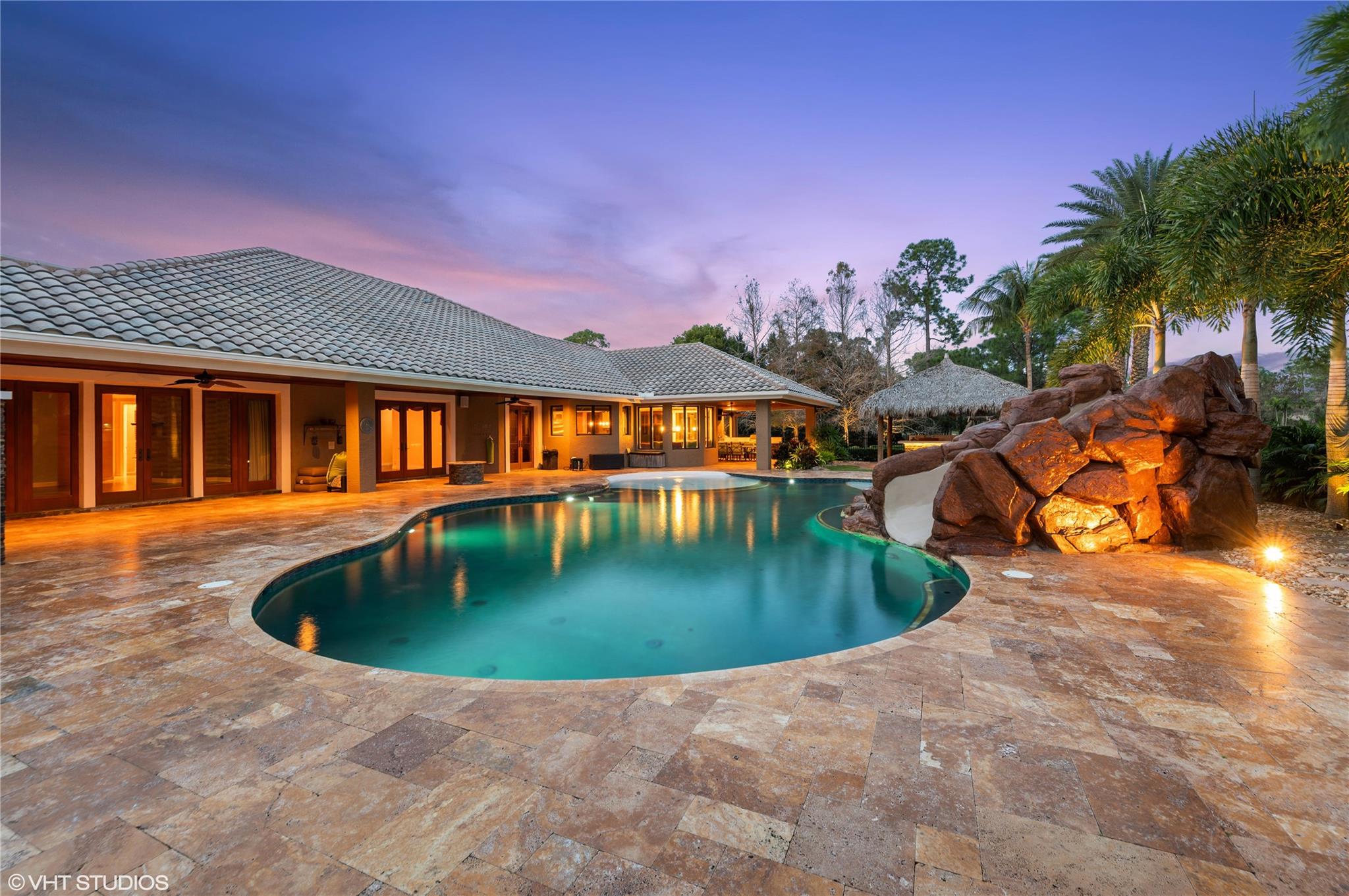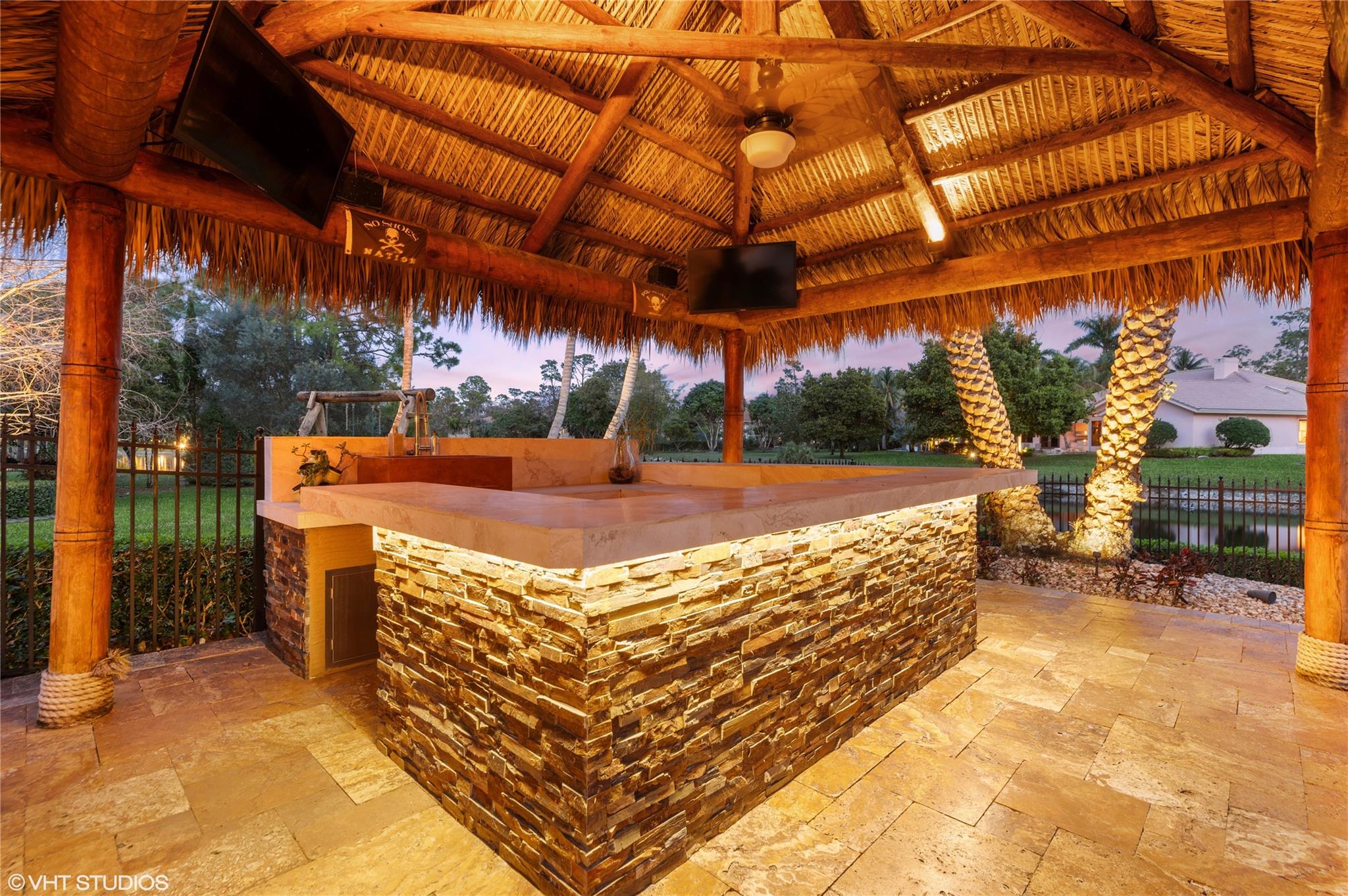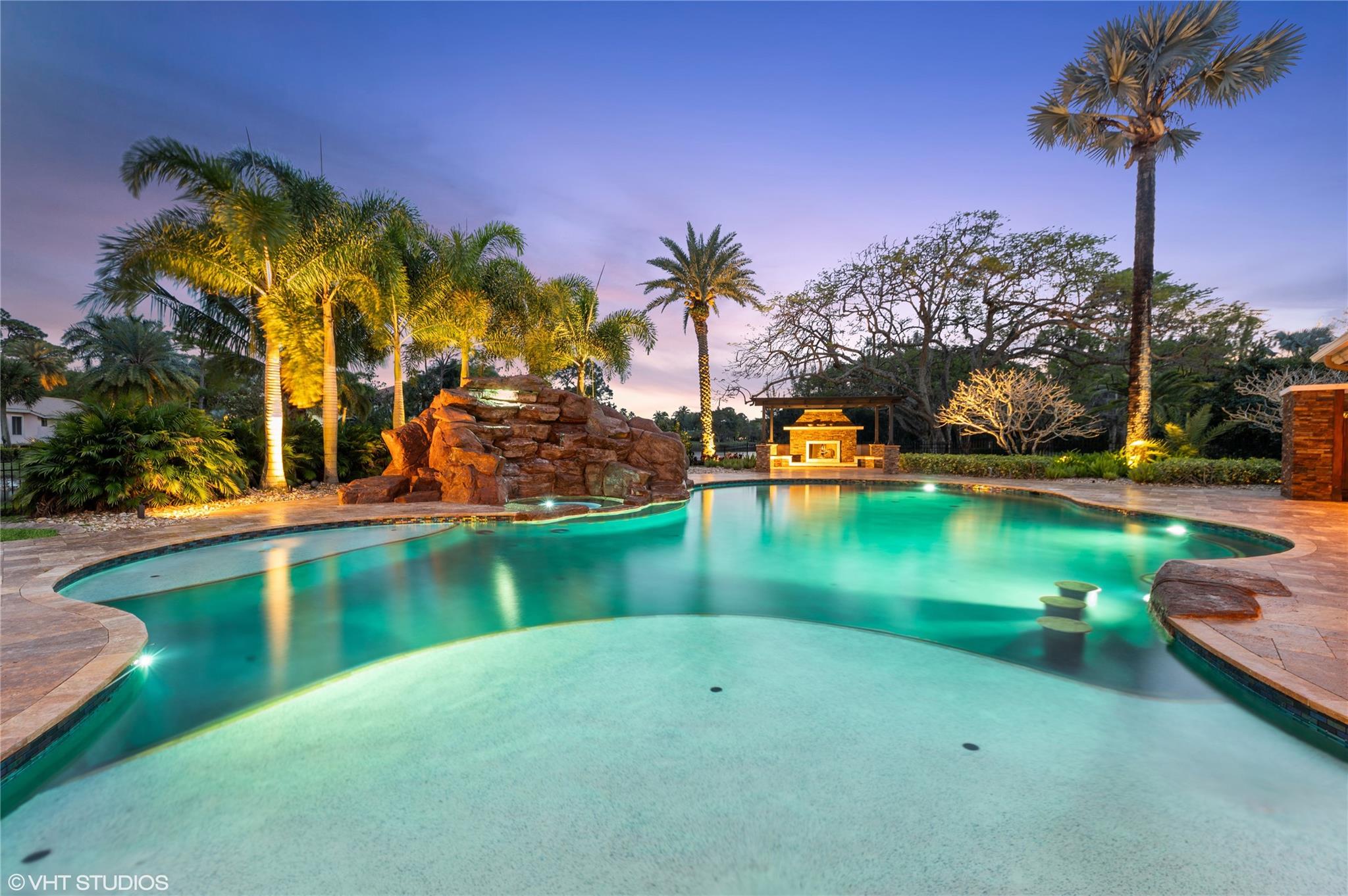 Indulge in unparalleled luxury on this 1 acre estate overlooking a stunning lake. 5 bed 5 bath over 6000 sq ft masterpiece boasts high-end finishes. Gourmet kitchen with a Sub Zero Refrigerator, Induction stovetop, Double oven & 2 Walk in Pantries. Separate bar to entertain w/ Sub Zero Wine Fridge. Enormous Media Room with Bar. Unwind in your lavish primary suite complete with a double bathroom, steam shower, Sauna, office and a private gym. Entertain w/ multiple covered patios, a resort style sparkling saltwater pool, Tiki area w/ TVs, Outdoor Kitchen, firepit & custom sport court. Water purifier and softener, 5 car garage. This home is the ultimate in indoor-outdoor living, creating a private oasis perfect for families who appreciate quality & tranquility. Make this dream home yours