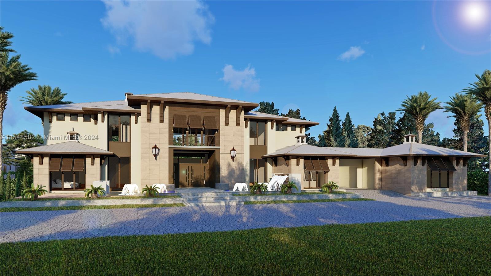The spectacular Delano Contemporary estate is nestled within the exclusive gated enclave of LANDMARK RANCH ESTATES. This remarkable 11,408sf masterpiece offers 8,000sf of A/C two-story floor plan, providing impressive ceilingheights of up to 27', and floor to ceiling glass walls that allow for grand views of the expansive landscaped acre-sized yards and over-sized pool. This is a true Estate property. The open format kitchen is completely equipped with top of the line Sub Zero and Wolf appliances, room sized pantry, summer kitchen, among manyother features. The second story, boasts a additional laundry room, morning bar, plus a dedicated loft and outdoor terraces. All this, while still being minutes from Miami, FLL and Boca. Pre-construction, 24 mos. to complete. Shown with site upgrades.