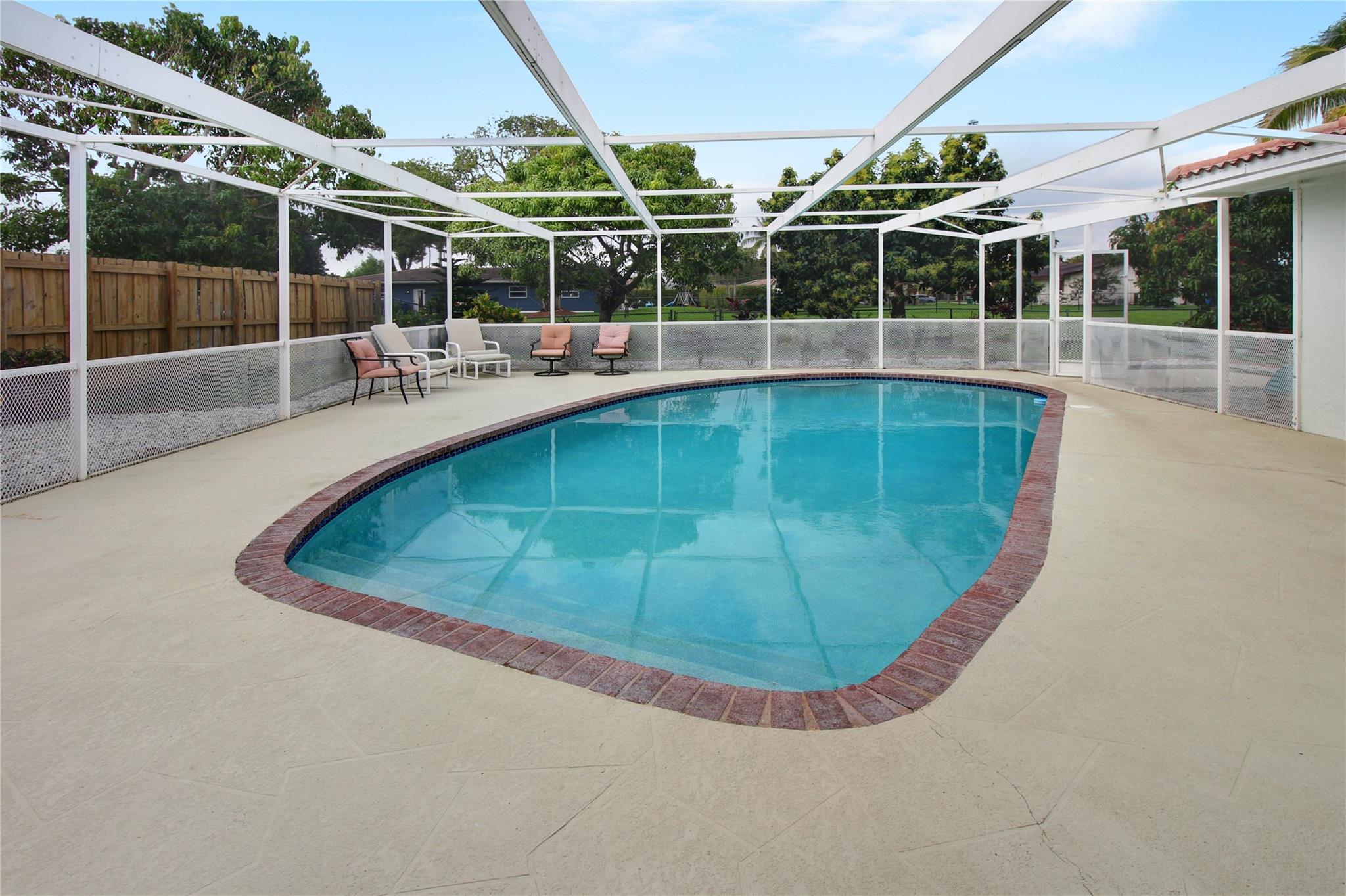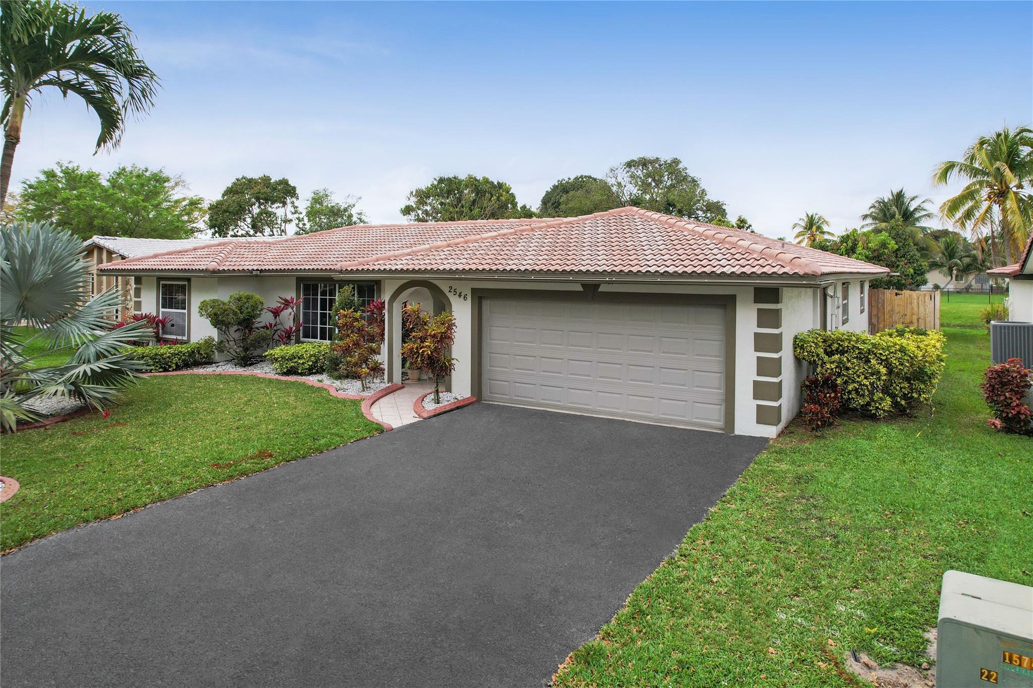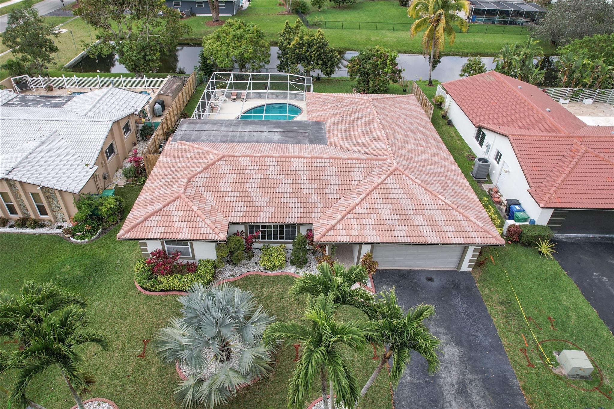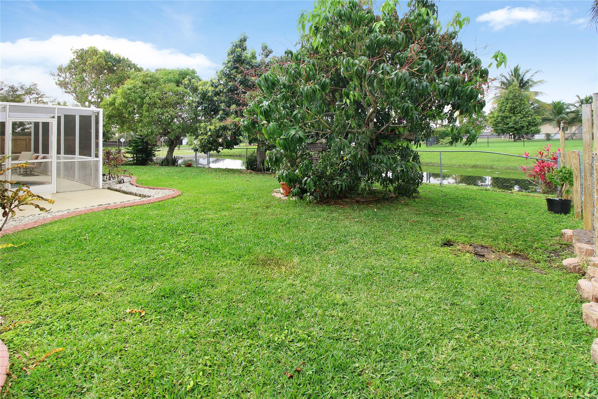 This is a wonderful 4/2 Waterfront Home in The Coral Springs Country Club. Recently painted, it has a lg living room w/ crown moulding. Recess Lighting. Tile floors throughout. Split bedroom. Large master bedroom, walk in closet and 2nd closet. Cabana bath in master upgraded 2023. 3 other bedrooms are large with good closet space and ceiling fans. 2nd bath recently upgraded; Double sink and 2nd cabana. The kitchen was remodeled in 2022. Stainless Steel appliances and Backsplash. Screened in Pool patio has stamped concrete. 2 ceiling fans & roll down for privacy. Lighted and diamond brite pool. Fenced for privacy. 3 large fruit trees. Mango & avacado. A/C 2019, tankless H/W htr, New electrical box. Hurricane panels for storm protection. This beautiful Home can be your forever Home.