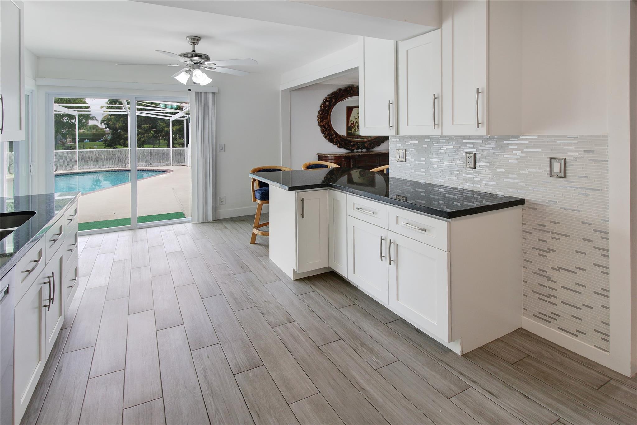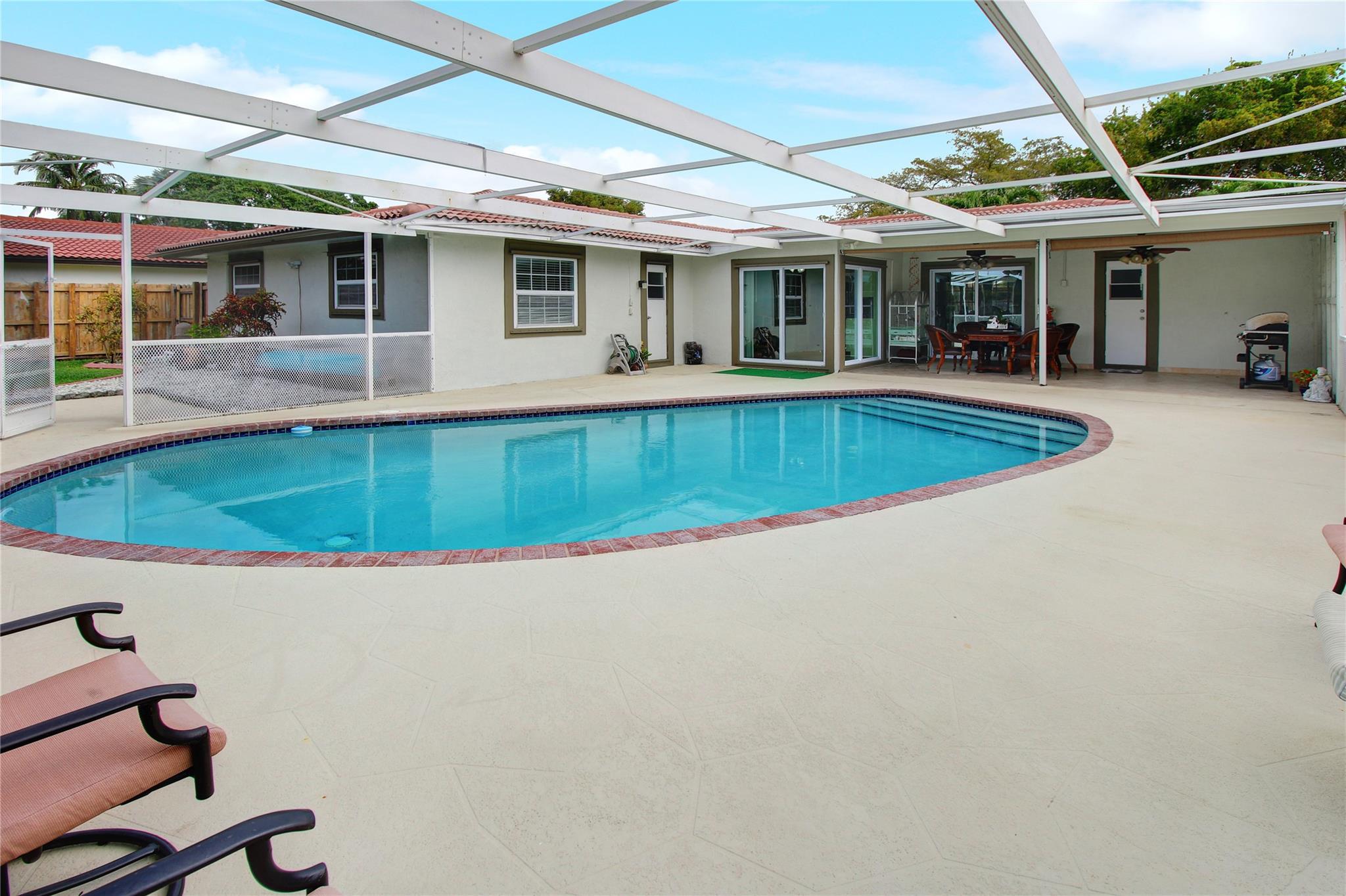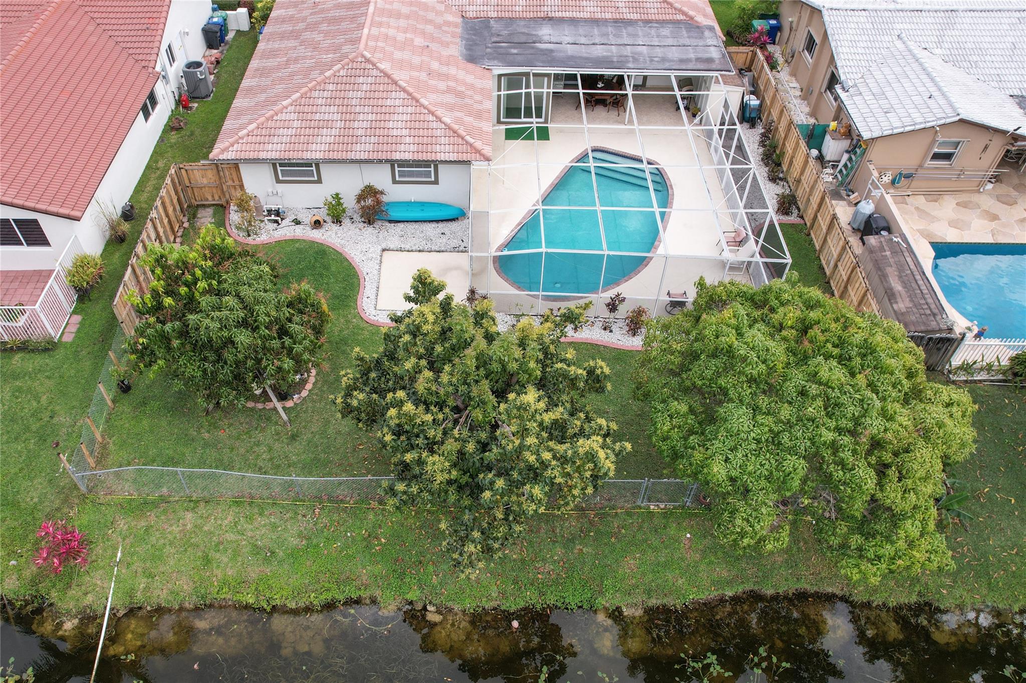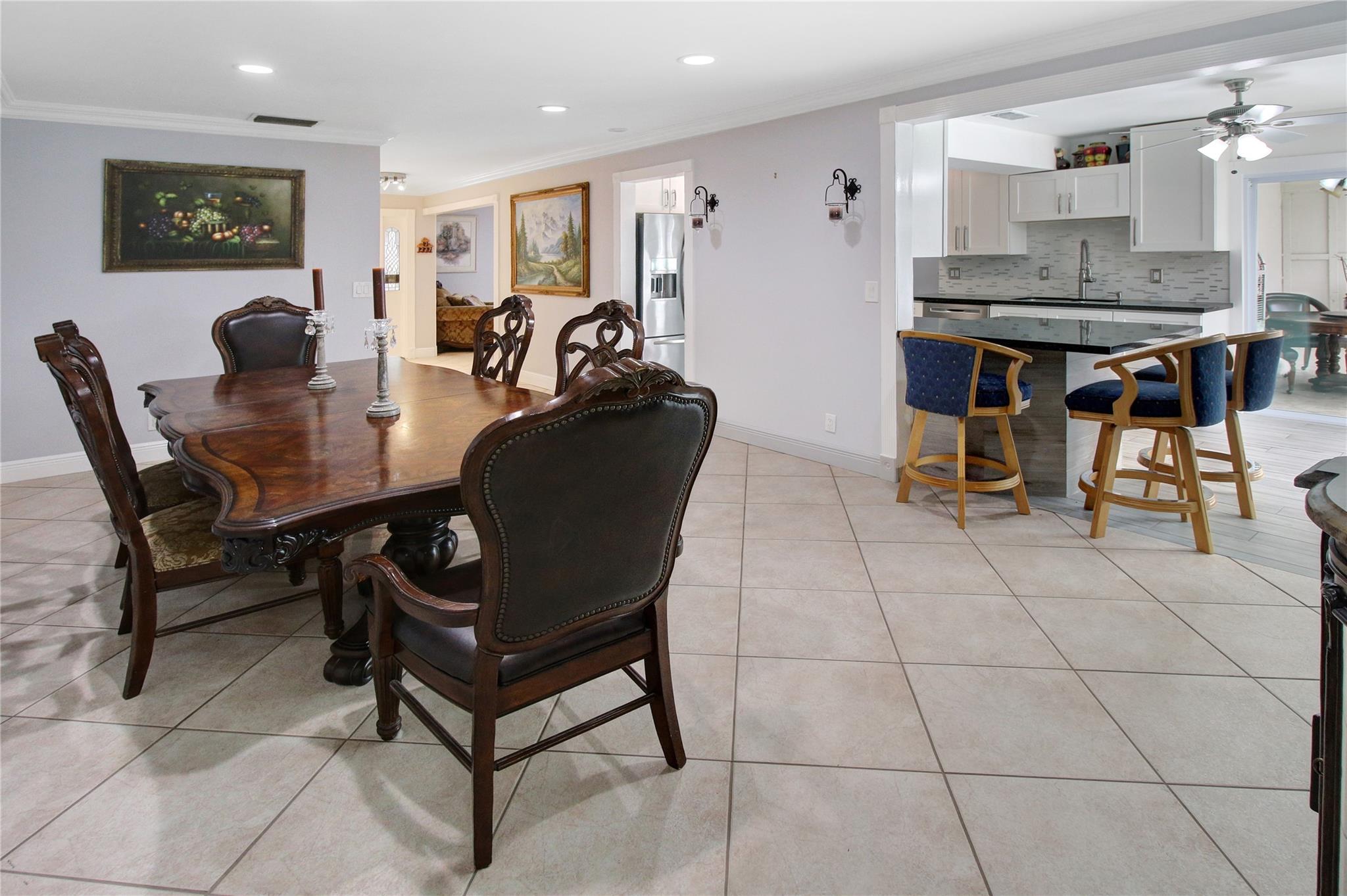 This is a wonderful 4/2 Waterfront Home in The Coral Springs Country Club. Recently painted, it has a lg living room w/ crown moulding. Recess Lighting. Tile floors throughout. Split bedroom. Large master bedroom, walk in closet and 2nd closet. Cabana bath in master upgraded 2023. 3 other bedrooms are large with good closet space and ceiling fans. 2nd bath recently upgraded; Double sink and 2nd cabana. The kitchen was remodeled in 2022. Stainless Steel appliances and Backsplash. Screened in Pool patio has stamped concrete. 2 ceiling fans & roll down for privacy. Lighted and diamond brite pool. Fenced for privacy. 3 large fruit trees. Mango & avacado. A/C 2019, tankless H/W htr, New electrical box. Hurricane panels for storm protection. This beautiful Home can be your forever Home.
