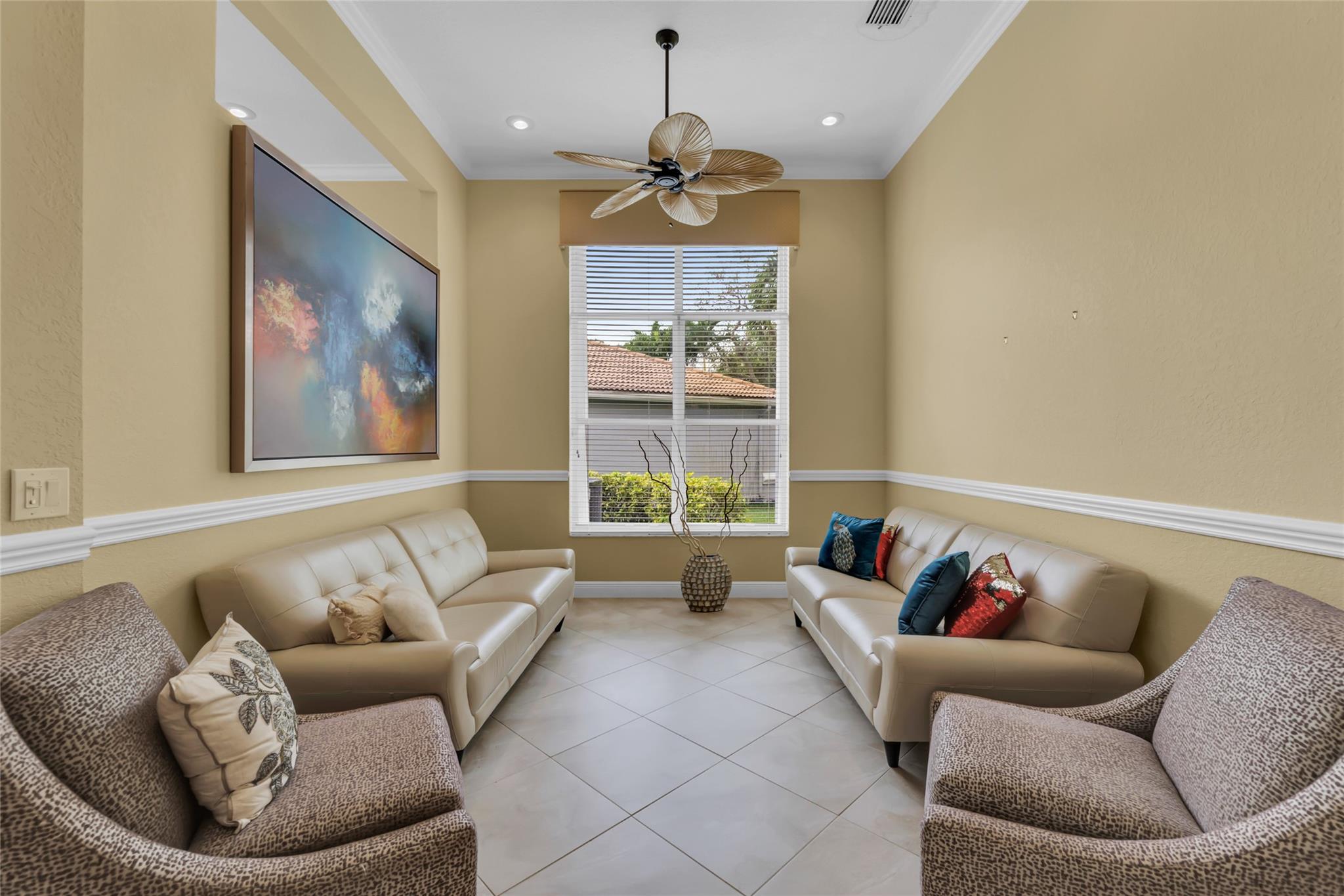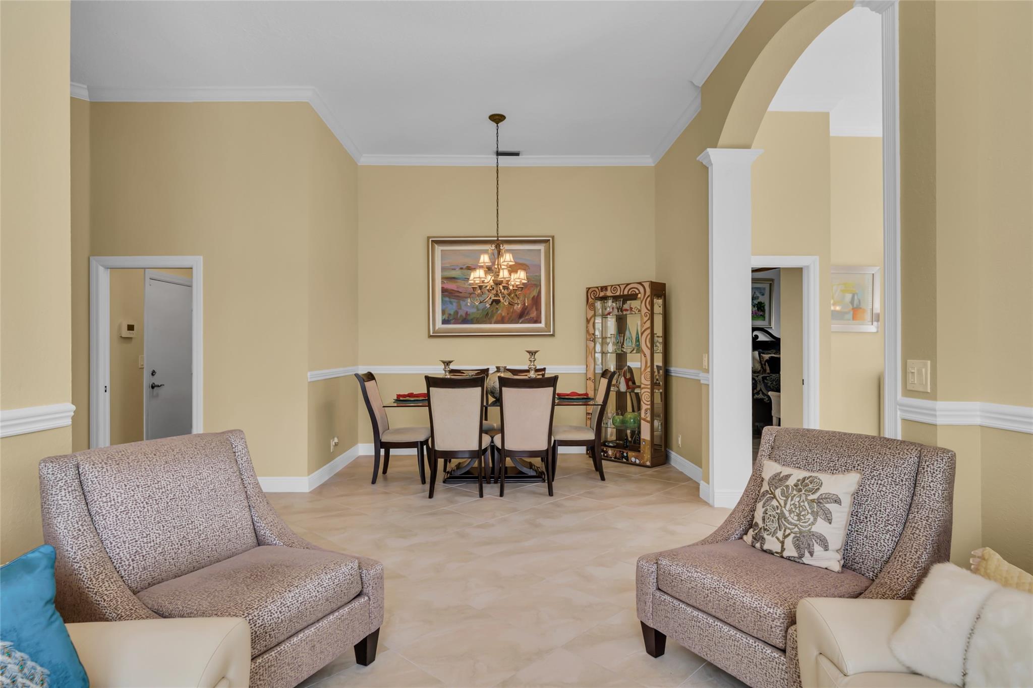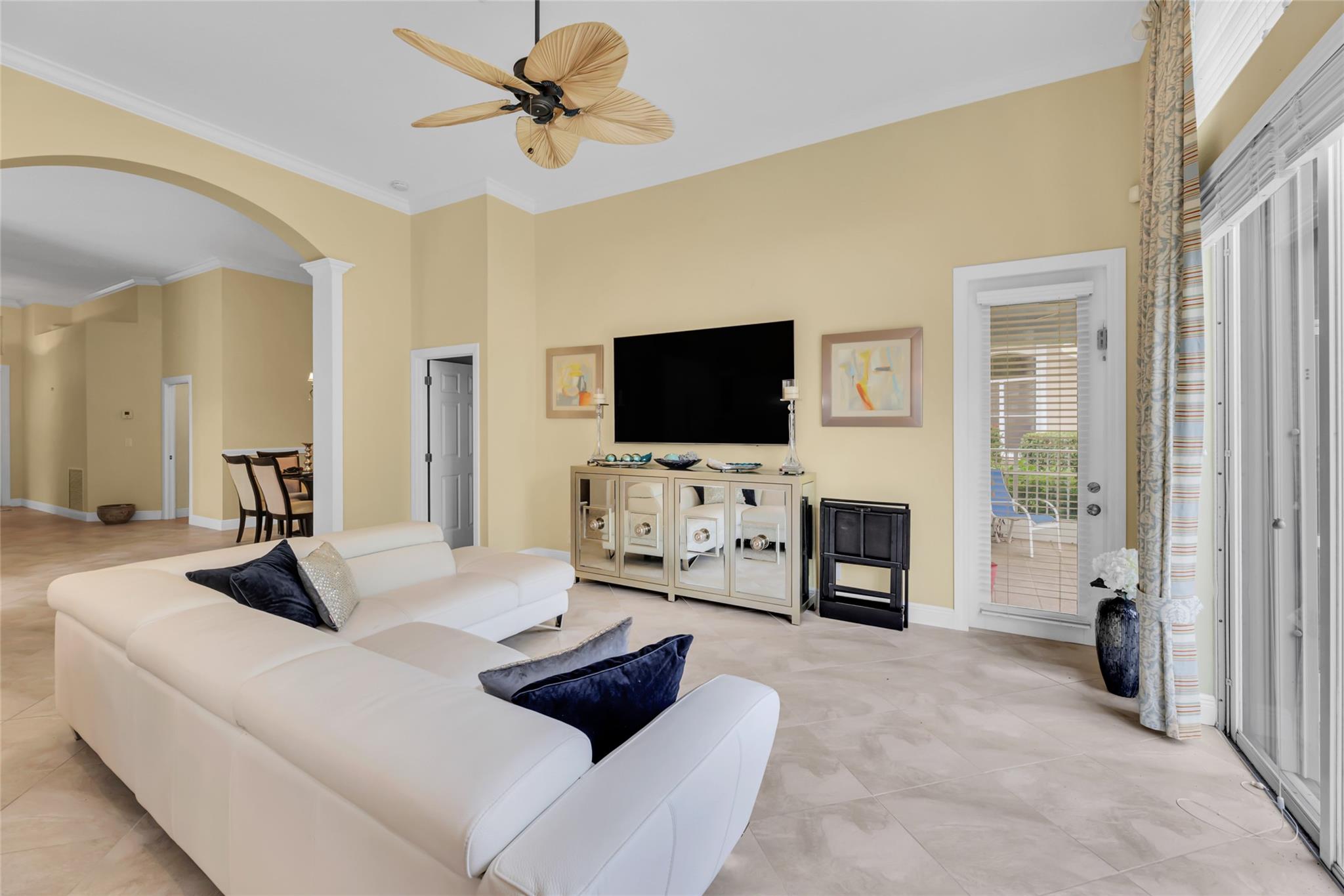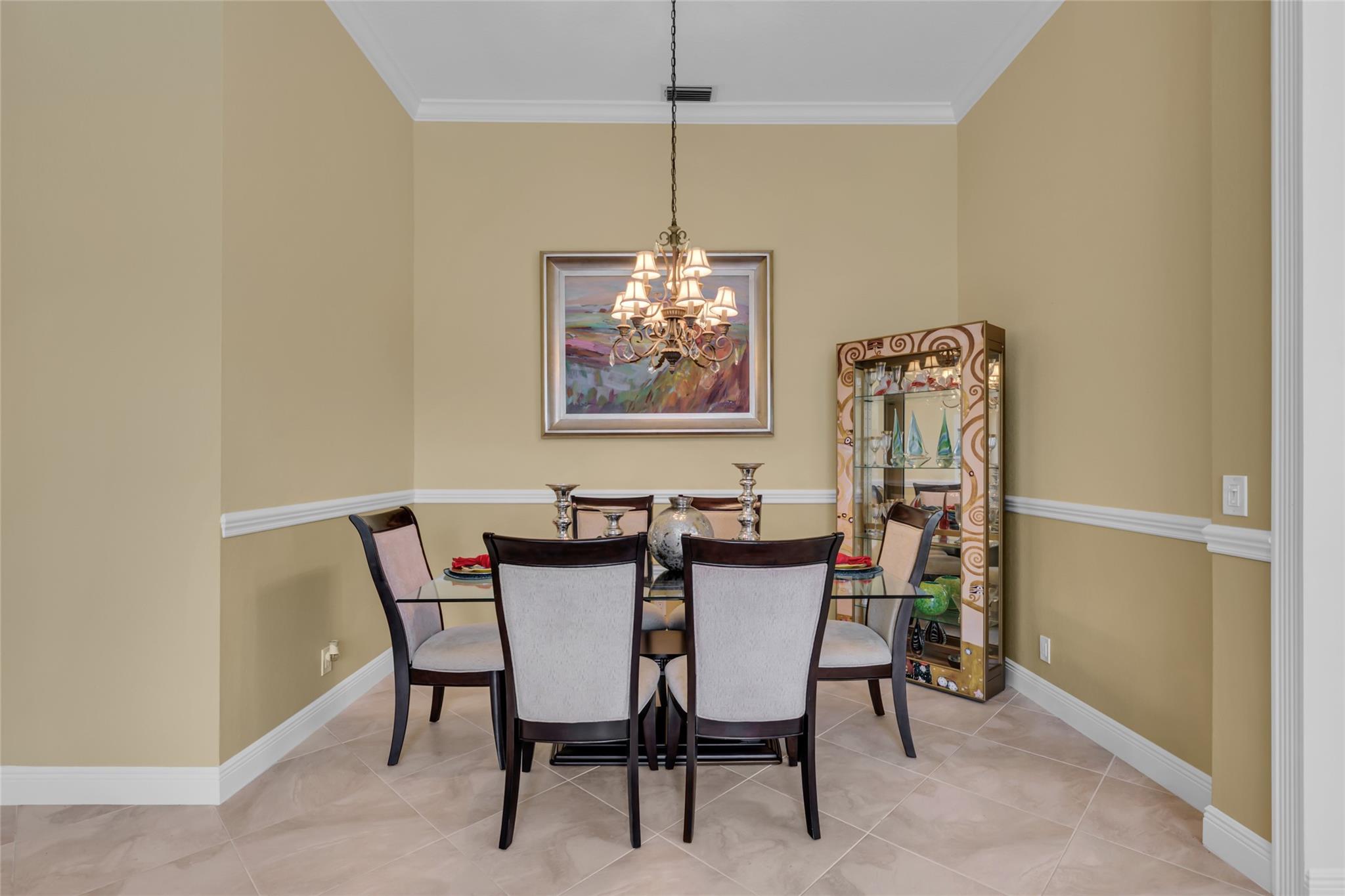 Beautiful 3 bedroom, 2 bathroom house in gated Eagle Trace golf community. Split floor plan includes: formal dining room, family room, and living room. High-vaulted ceilings and high-quality flooring throughout the home. All-white kitchen includes kitchen island, great for entertaining guests. Master bedroom has walk-in closet and spacious master bathroom. Screened patio has serene sitting area overlooking the pool. Fenced backyard is very private, surrounded by vegetation. The home features a 2-car garage with extra parking in the driveway and storm shutters for added safety. Amenities include: 24-hour security at gate entrance, basketball and tennis courts. This home is move-in ready!