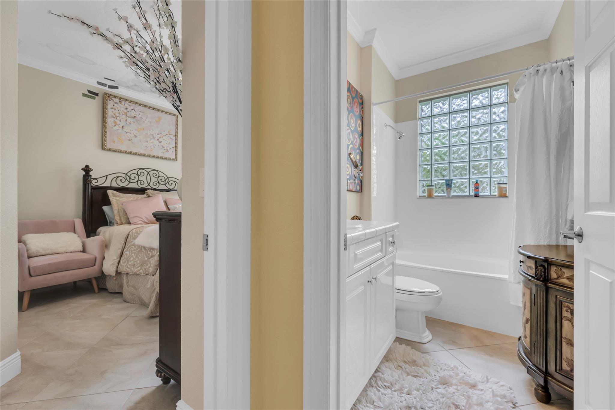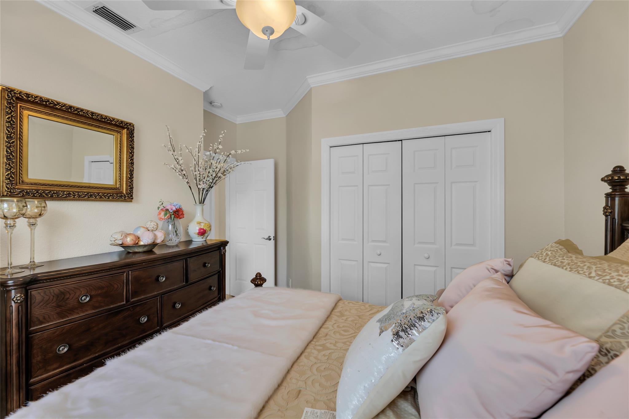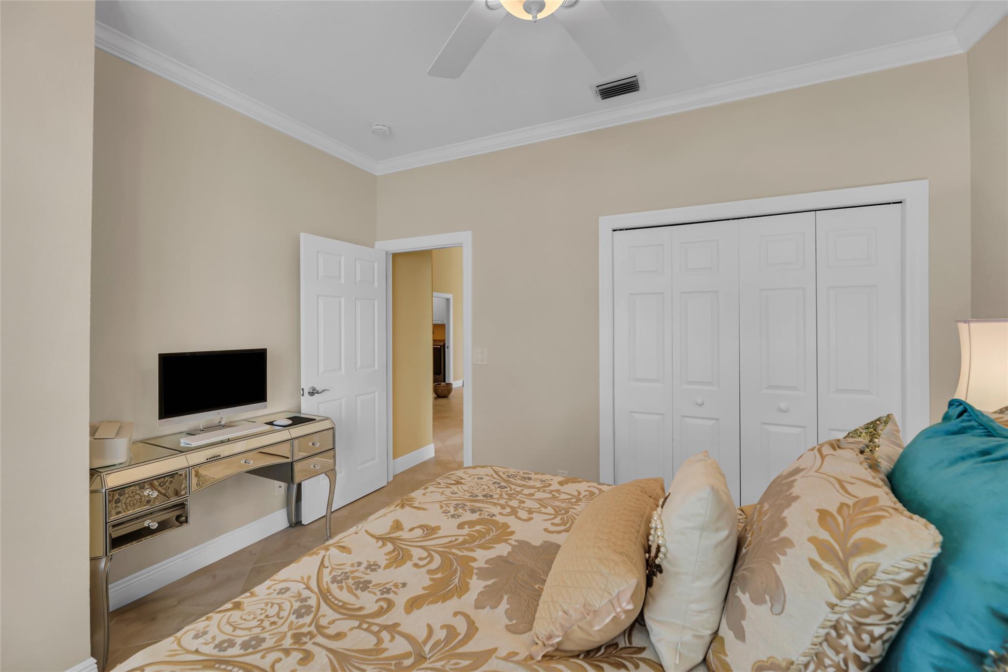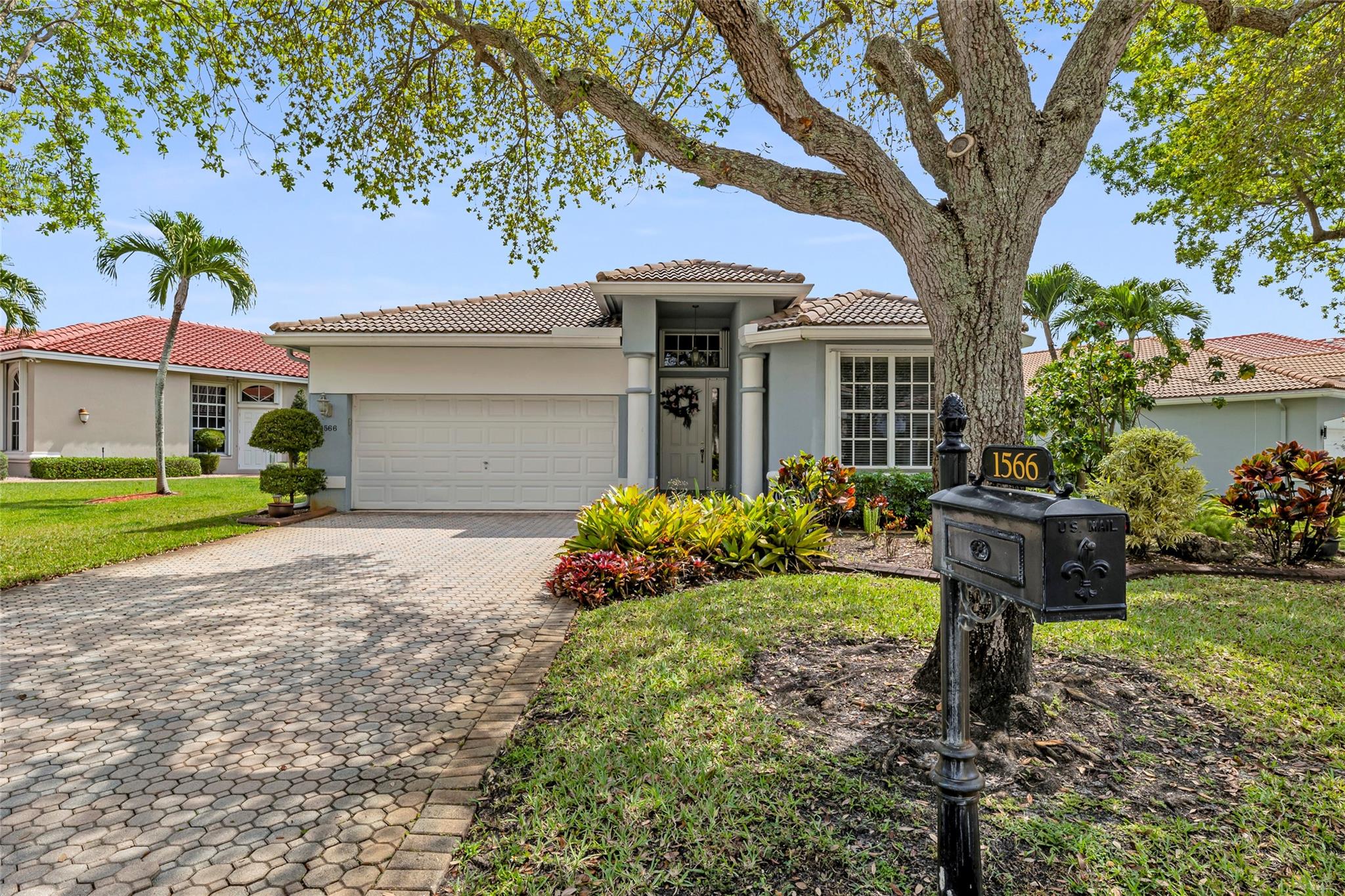 Beautiful 3 bedroom, 2 bathroom house in gated Eagle Trace golf community. Split floor plan includes: formal dining room, family room, and living room. High-vaulted ceilings and high-quality flooring throughout the home. All-white kitchen includes kitchen island, great for entertaining guests. Master bedroom has walk-in closet and spacious master bathroom. Screened patio has serene sitting area overlooking the pool. Fenced backyard is very private, surrounded by vegetation. The home features a 2-car garage with extra parking in the driveway and storm shutters for added safety. Amenities include: 24-hour security at gate entrance, basketball and tennis courts. This home is move-in ready!
