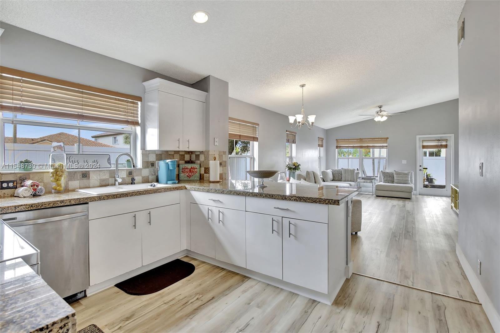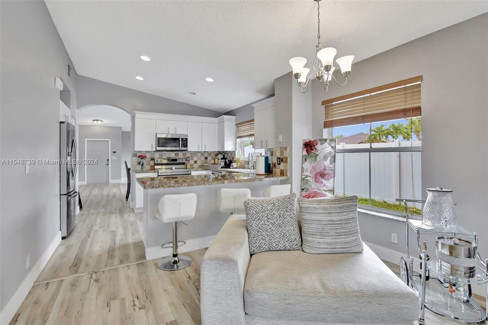 Beautifully maintained single-family home offers an open floor plan that radiates with natural lighting. This elegant home is located in a gated sub-division–Hidden Lakes in the desirable Chapel Trail Pembroke Pines. This home boast 3 bedrooms/2 remodeled bathrooms, walk-in closet, 2 car garage, dedicated laundry room, vaulted ceilings, new stainless-steel appliances, granite counter tops, white cabinets,new flooring throughout the entire house, new water heater, freshly painted exterior & interior, 6ft privacy fence, home warranty on all appliances. The fantastic backyard is your private oasis that provides a tropical feeling for incredible entertainment. Easy access to excellent A+ schools K-12, major highways, hospitals, restaurants, and many more. THIS IS A PERFECT PLACE TO CALL HOME!