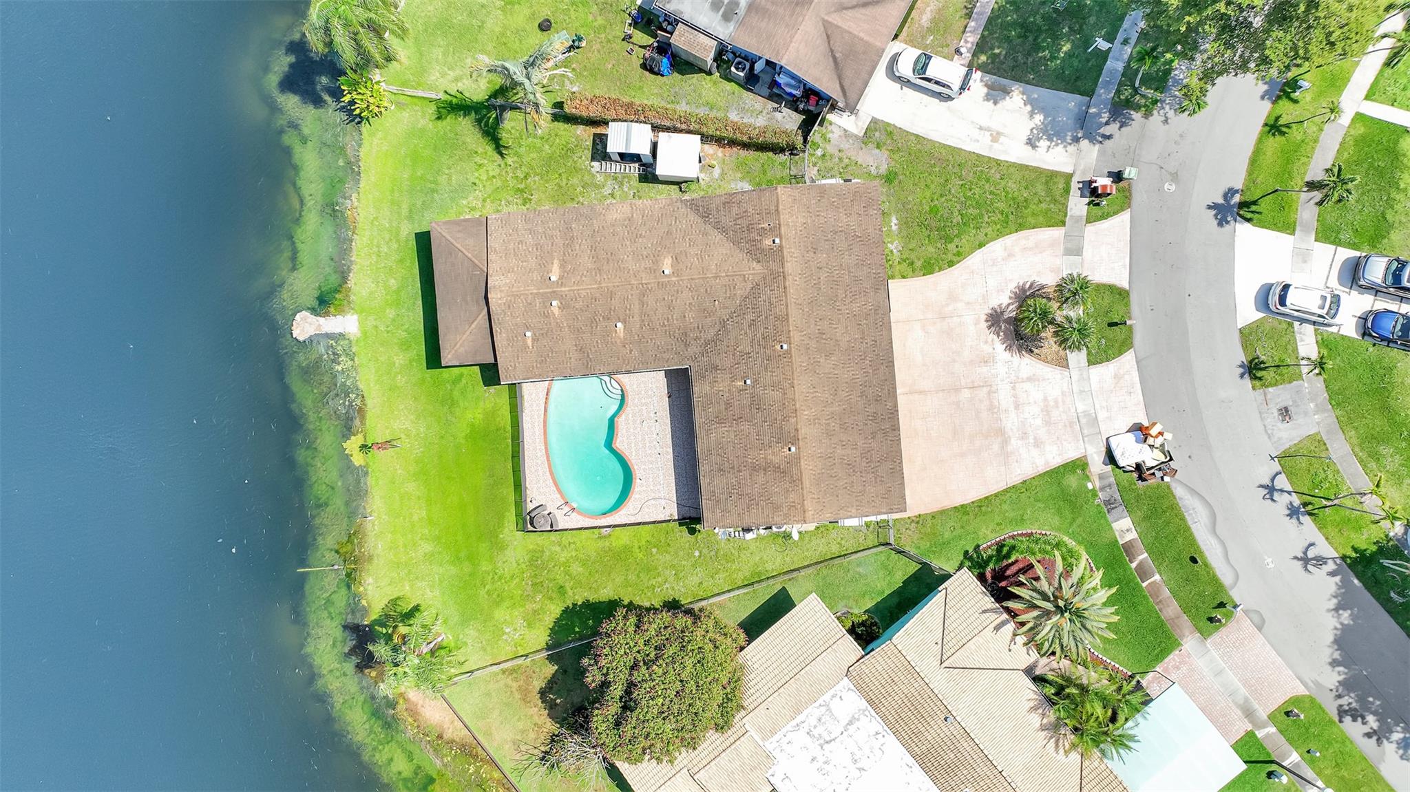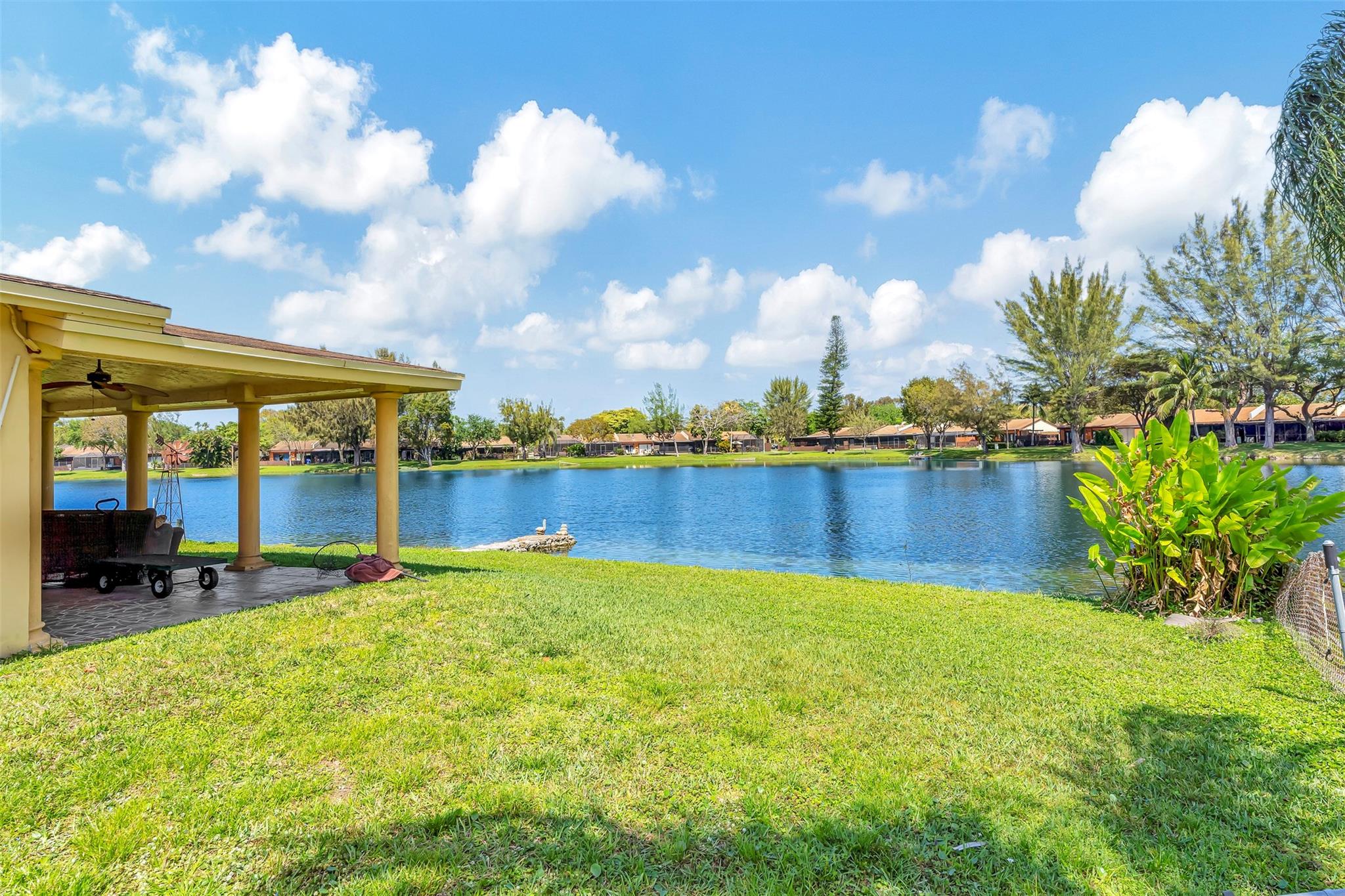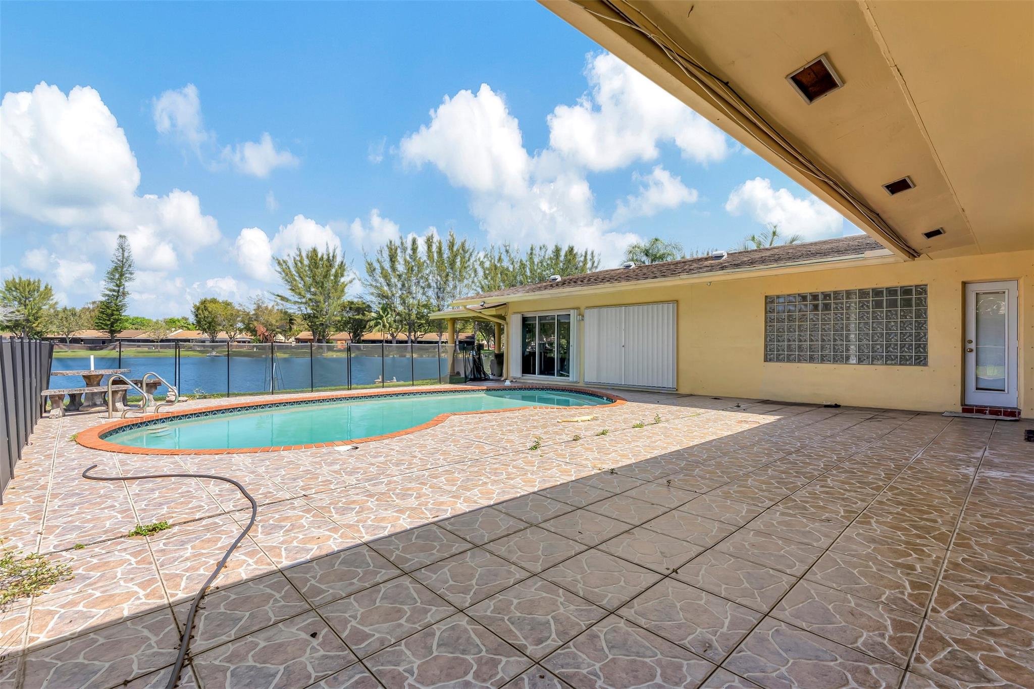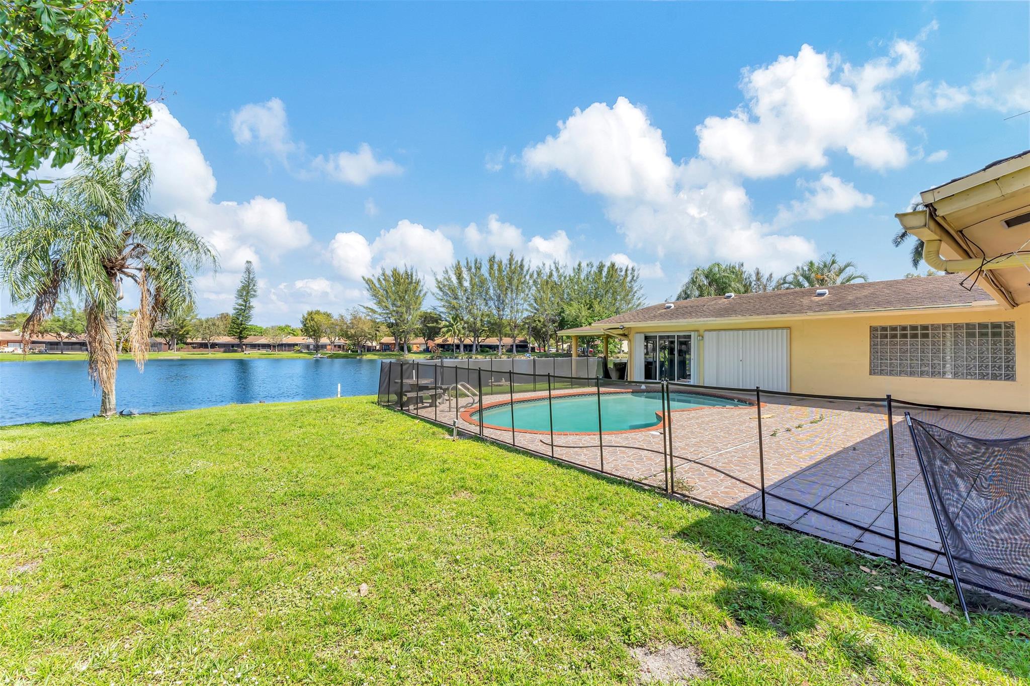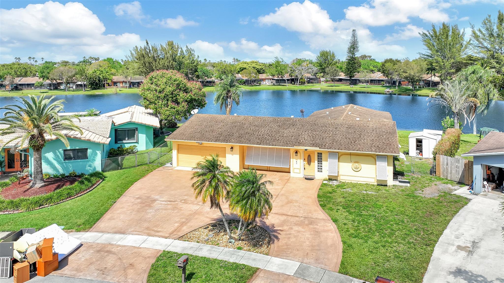 Here's the 3 bed 2 bath waterfront/pool home you've been waiting for located on a pie shaped lot in most desirable Pembroke lakes. One of a kind home for entertaining. Circular driveway for all your company to park. The open plan living space, with its large windows and sliding doors give your perfect views of the water from every angle. This property has the ability as well to be used as a 1/1 income producing property with one of the bedrooms. The unique pie-shaped lot ensures a level of privacy and space. Convenient access to local amenities, including shops, restaurants, and entertainment options.