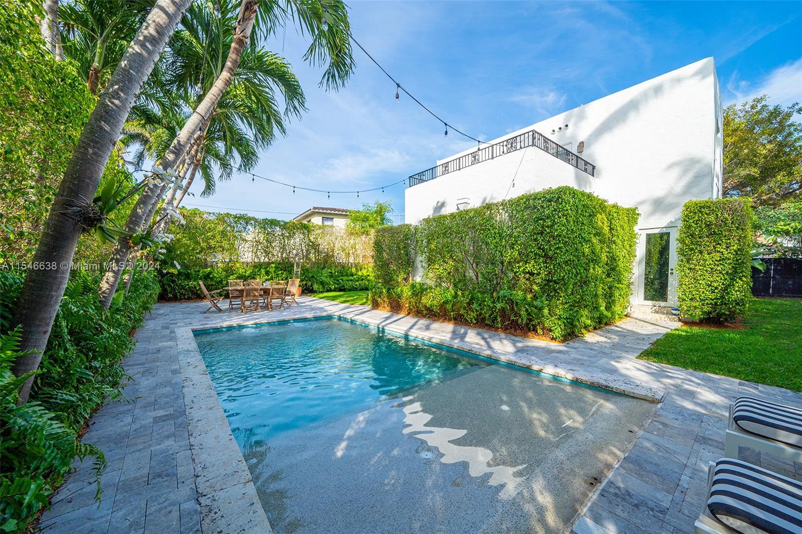 Welcome home to this 4 bed, 3.5 bath Mediterranean charmer originally built in 1927. Filled with dreamy details such as high ceilings, an open air exterior foyer, arched doorways, lush gardens, original inlaid wooden floors and a historic stone fireplace. This two-story renovated home offers the best of single family living in the heart of Miami Beach; all with a gorgeous backyard and swimming pool. Other features include impact doors and windows, one car garage with laundry, 3 bedrooms upstairs with an ensuite 4th bedroom downstairs, extra powder room, tons of storage throughout and updated electrical. There are also two balconies off the upper level. The backyard is a showstopper filled with mature landscaping, orchids, royal palms and Bougainvillea. Come see this gem for yourself.