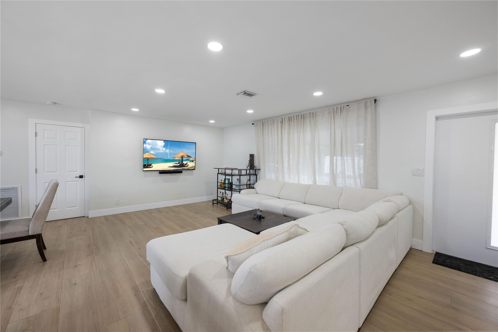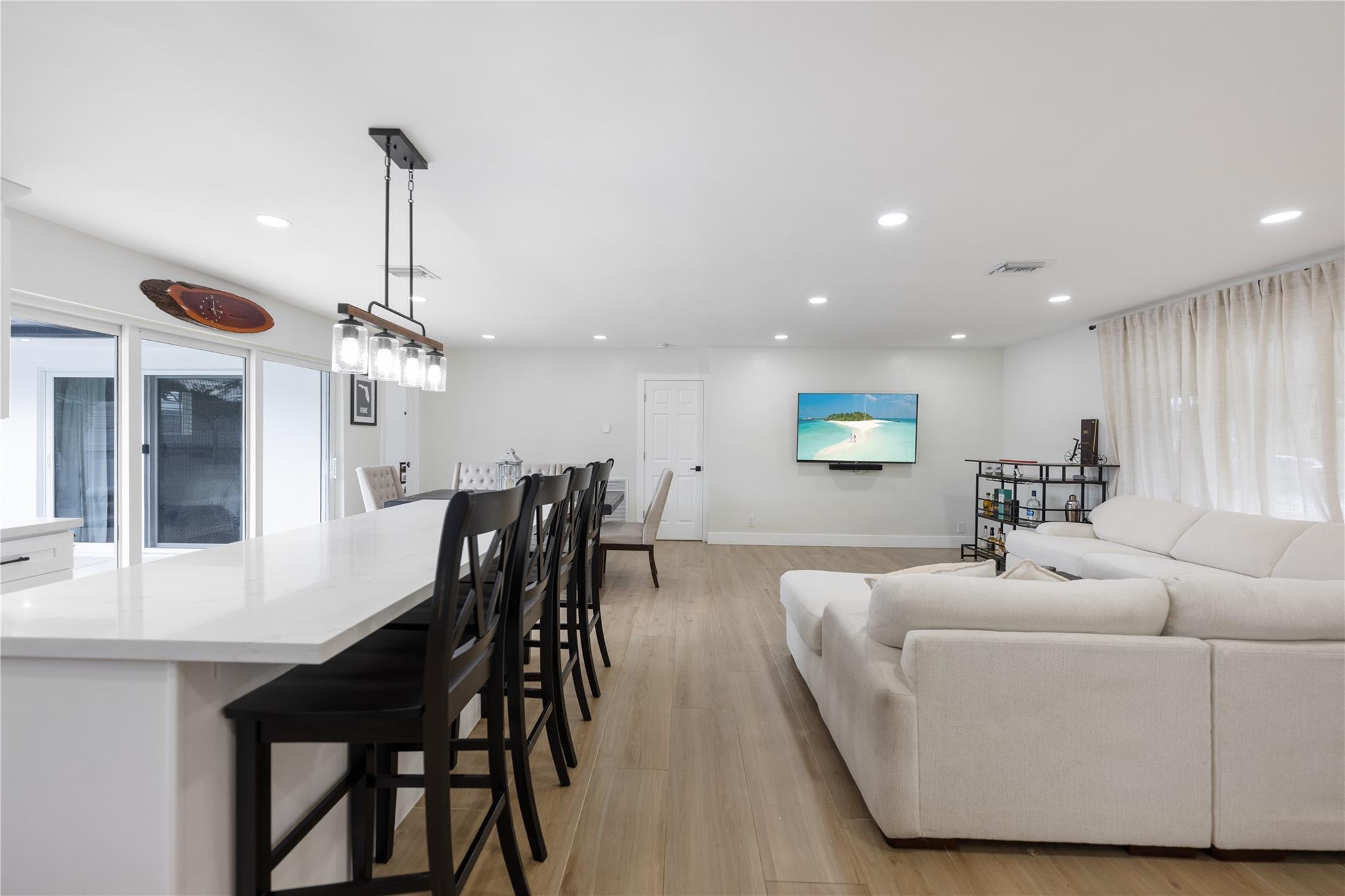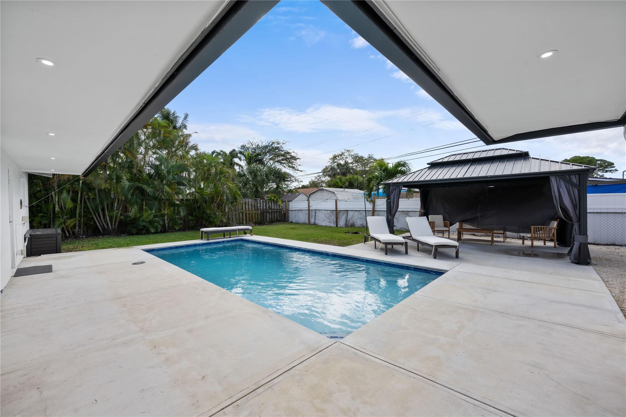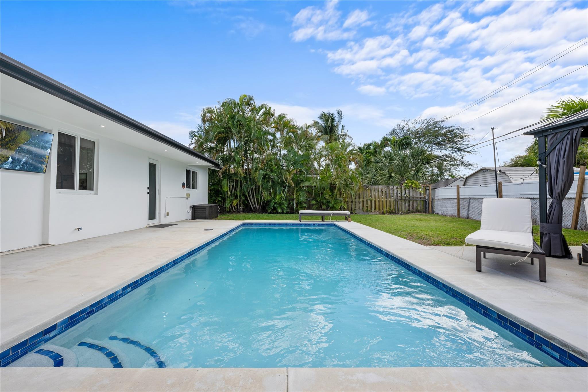 Stunning 4-bedroom, 2-bathroom home in the sought after Garden Isles neighborhood of East Pompano! Open floorplan connecting the kitchen, dining room, and living room areas with sliding glass doors to the recently updated saltwater pool creating a perfect indoor/outdoor space for entertaining. The kitchen has custom shaker cabinets, quartz countertops, stainless-steel appliances, and features a large island with additional storage. Tile floors throughout. Master bath has dual sinks and extra-large shower. Guest bath has a cabana door for easy access from the pool/backyard. Impact doors and windows. The garage and circular driveway can accommodate approximately 6 vehicles. Less than a 10-minute drive to Pompano Pier and close to intracoastal waterways. Roof 2020. AC 2021.