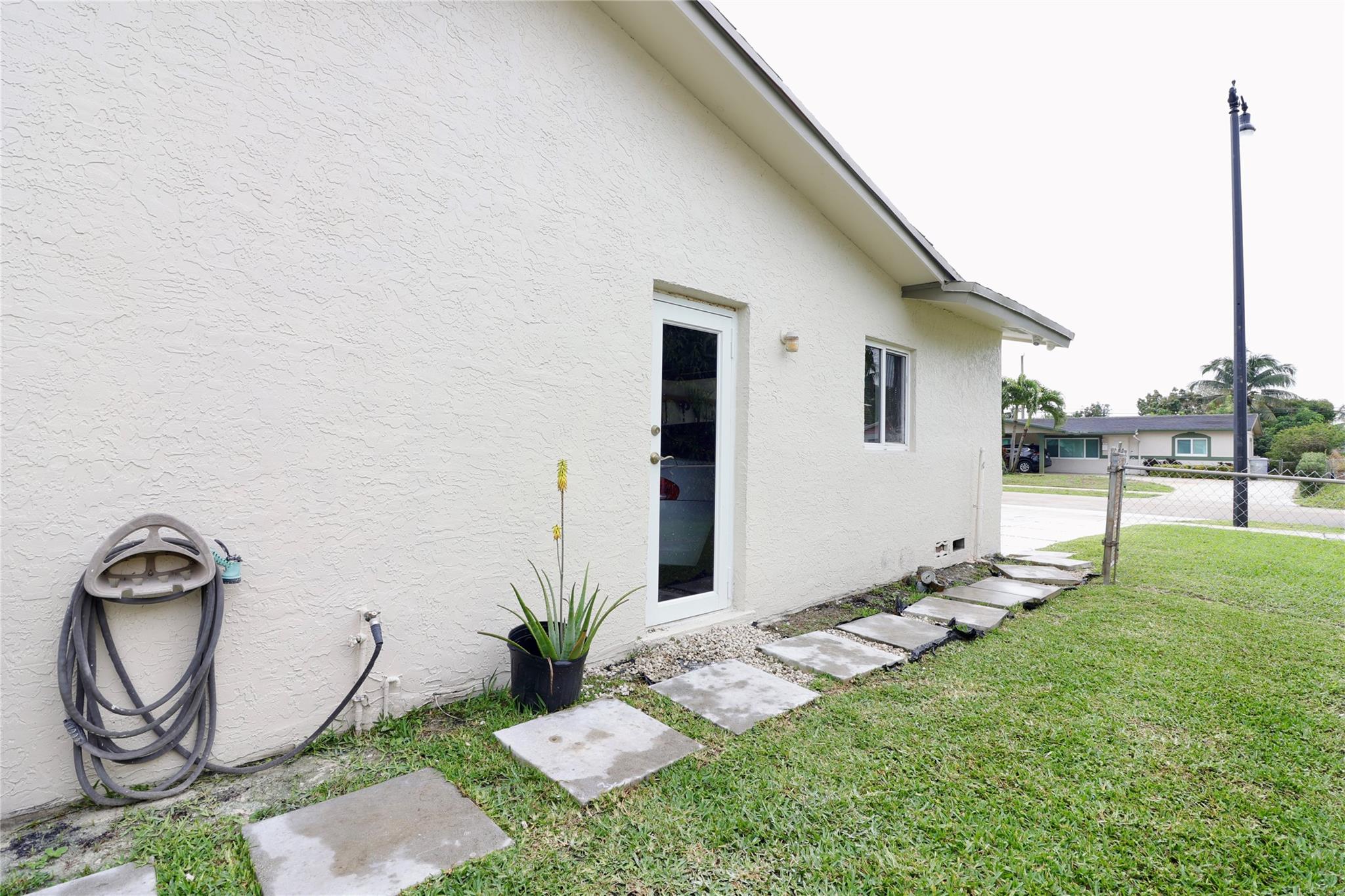 Welcome to this Cozy 4bedroom, 3bathroom 1car garage home. This home was tastefully designed by owner. Livingroom has large stone wall with TV and captivating electric fireplace. Kitchen has quartz countertops & backsplash /curios cabinets. Master bathroom features Onyx wall in bath area with a whirlpool/spa and waterfall shower. Also, a Vovo Smart Bidet Toilet & a LED mirror. Closet by design (custom cabinetry) porcelain floors. This home is split, You can rent out the back which includes two jack & Jill rooms and the main room with a private door. Custom concrete driveway with white stones. Low insurance rates NEW ROOF! IMPACT WINDOWS! No Flood zone! (sprinklers-well water)! MIns to the beach, I95, hospitals, schools. Perfect for Air B&B. Bring you buyers.!