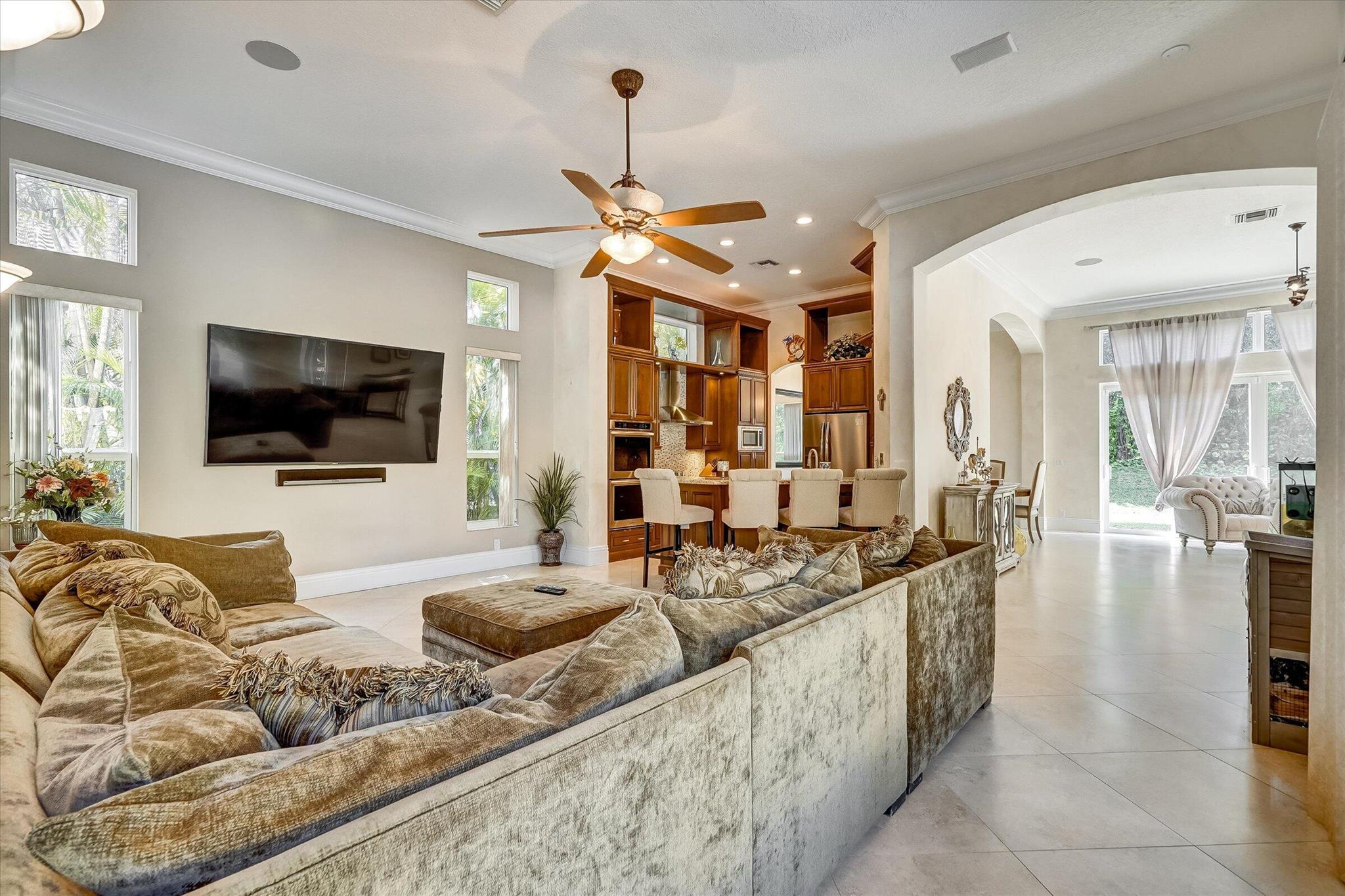 Courtyard home with separate guest house. 5 bedrooms, 3.5 bathrooms, 3 car garage. Brand new roof. Whole house has hurricane impact windows and doors. Master bedroom downstairs. Courtyard has a resort-like patio/pool area, wonderful for entertaining. 24''porcelain tile and hardwood floors throughout. Sonos speakers throughout, central VAC, chef's kitchen with double oven, formal dining, master walk-in custom closet. Crown molding, volume and coffered ceilings! Clubhouse Just remodeled! Amenities include Tennis, basketball, play-ground, pool+spa, sauna, social-rooms, billiards, state of the art movie room, fitness center, manned gate. A+ school zone. Close to turnpike and 95.