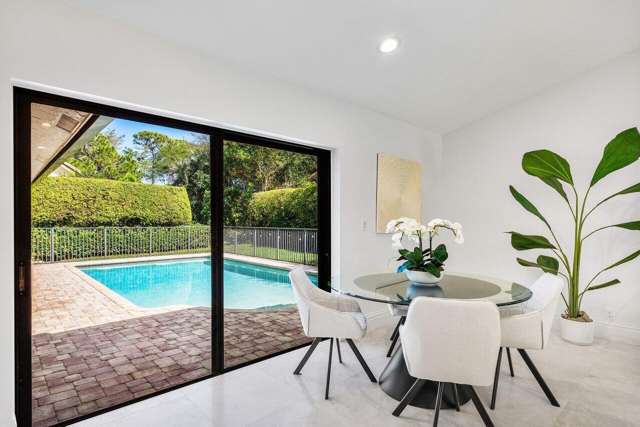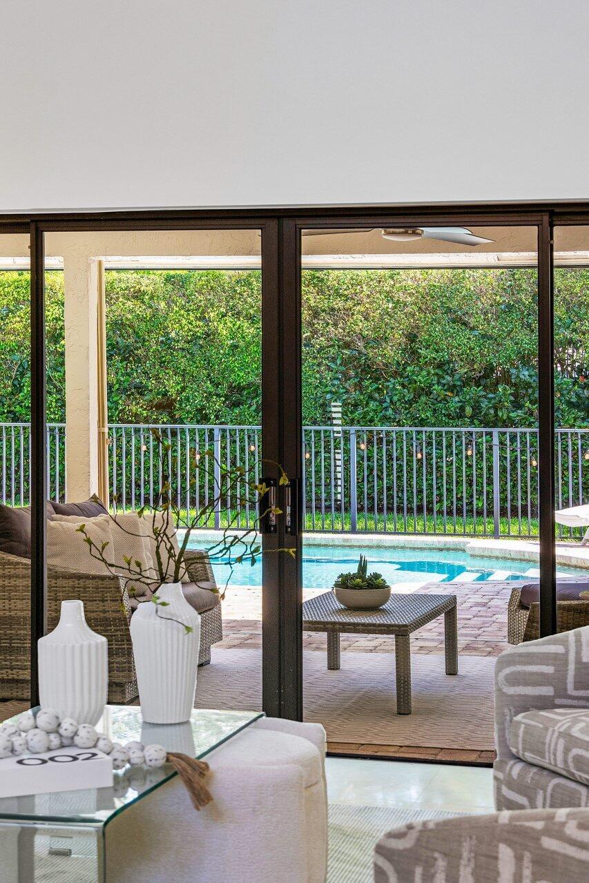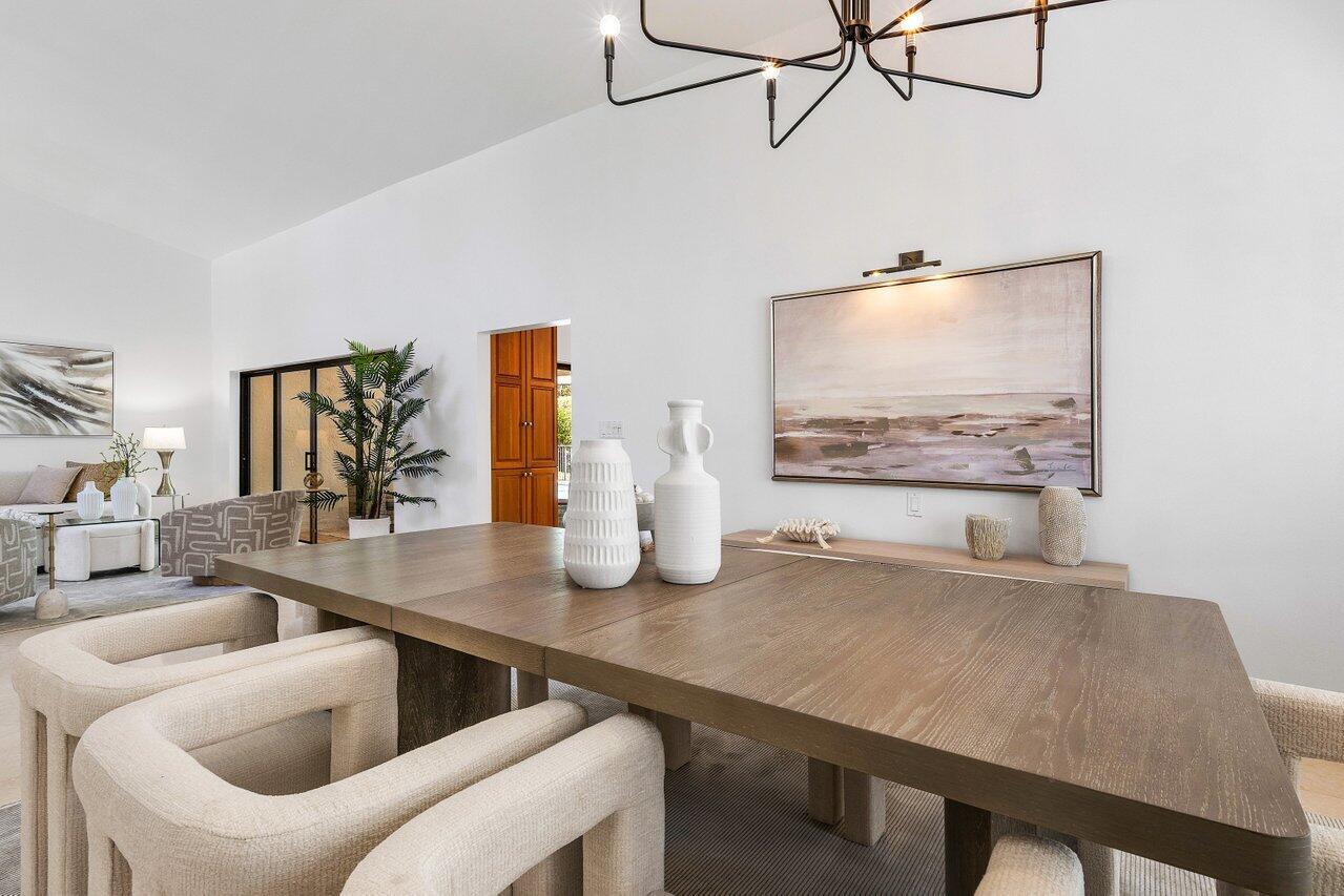 Nestled in one of the quietest cul-de-sacs in the peaceful enclave of Millpond, this exquisite single-story residence boasts 4 bedrooms and 2.5 bathrooms. Elegant travertine floors and soaring volume ceilings in the common areas, provide a luxurious feel across nearly 2800sf of living space. The NEW 2023 concrete tile roof plus complete storm protection combines impact glass and accordion shutters to offer peace of mind. The well-designed floorplan showcases a generously-sized gourmet kitchen with premium designer appliances, spacious family room, along with separate formal dining and living areas. Beautifully-landscaped grounds provide privacy and tranquility. This home offers meticulous attention to detail indoors and outdoors, creating a perfect blend of comfort and sophistication.