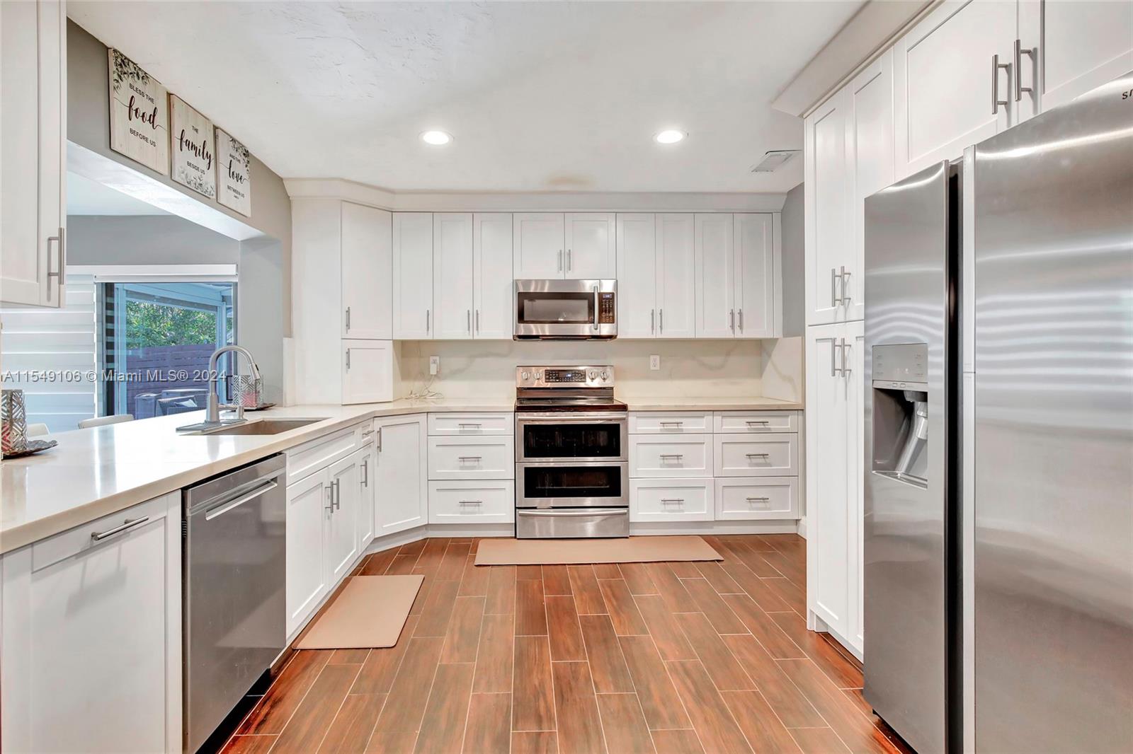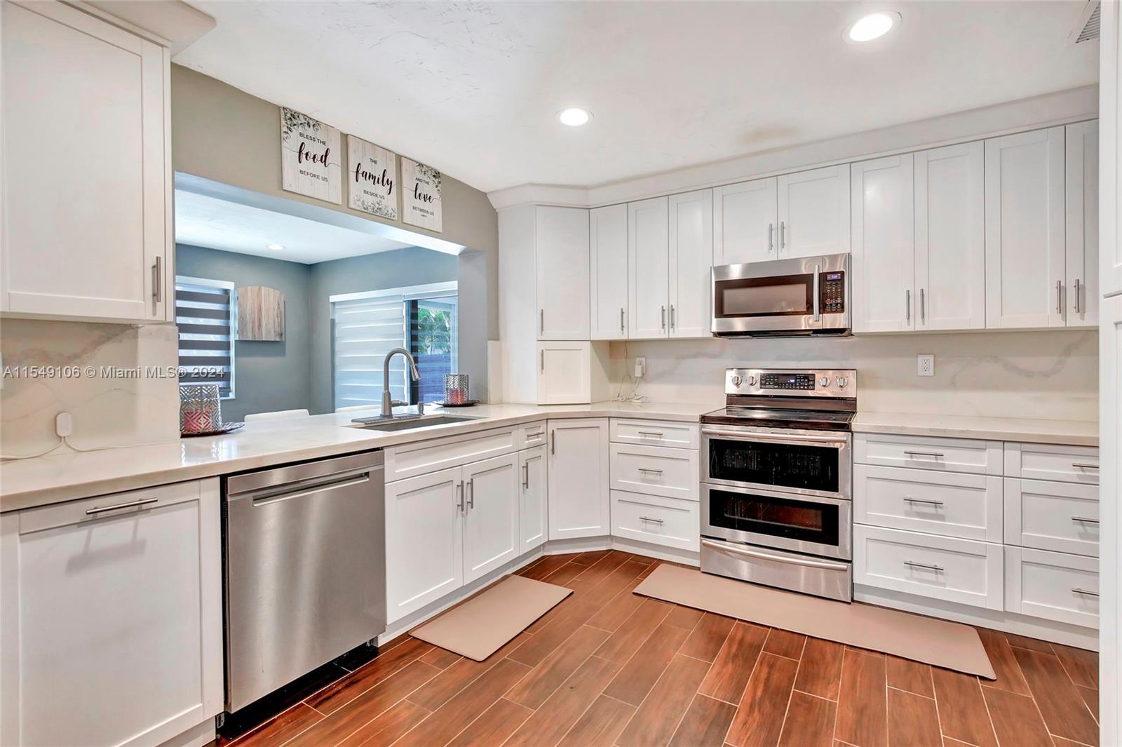 Magnificently upgraded and well maintained pool home in the heart of Pembroke Lakes. Updated kitchen (5 yrs) with quartz countertops, wood cabinets w/soft close, deep commercial grade kitchen sink, double oven, porcelain floors with wood grain look. Bathrooms fully updated. Impact windows and doors. Custom closets. Recessed LED lights. New (4 yrs) Travertine pool deck. New (3 yrs) electronic window treatments. Tankless Water Heater (5 yrs). Washer/Dryer (3 yrs.) 8 view Security System. Wood panel fence (3 years). Near shopping, hospitals and major highways. This home is turnkey. Make it yours today!