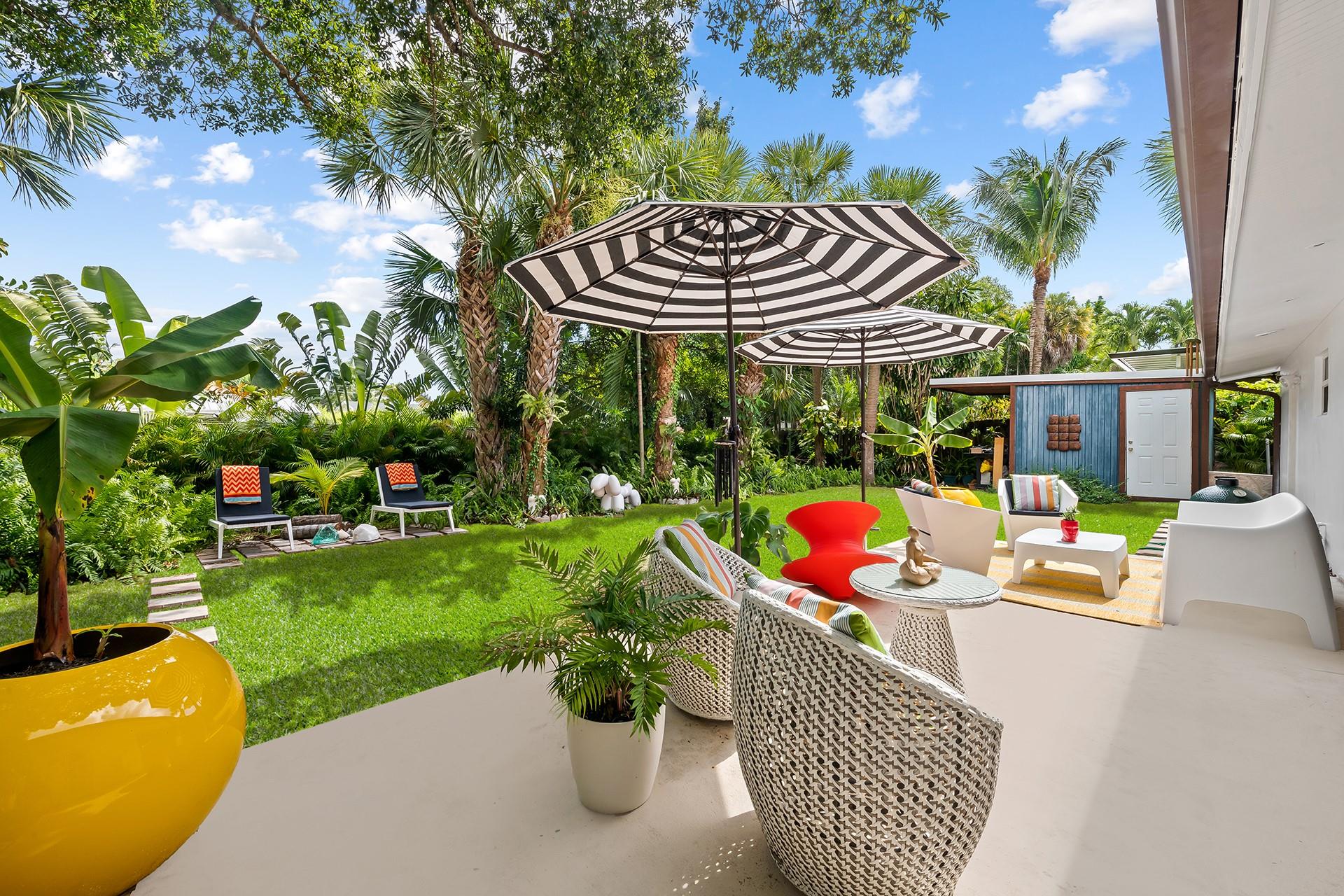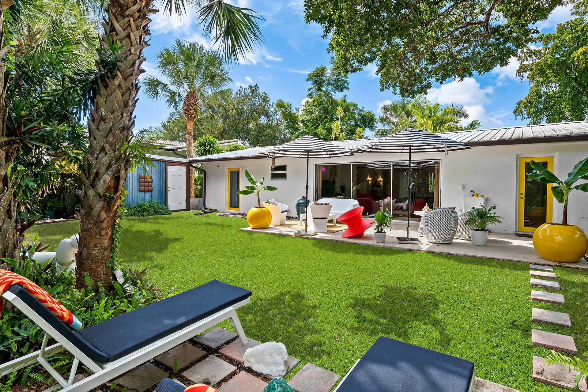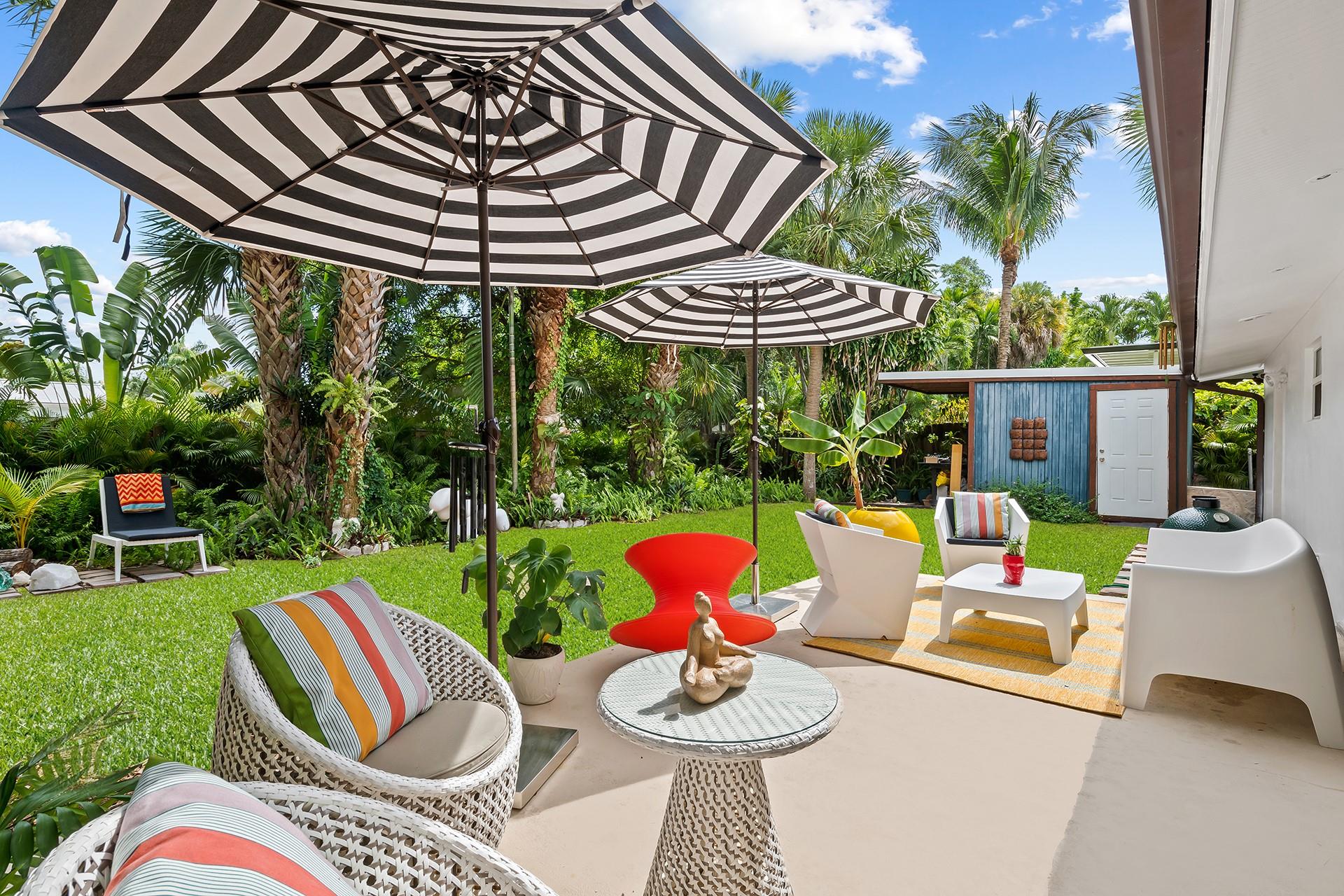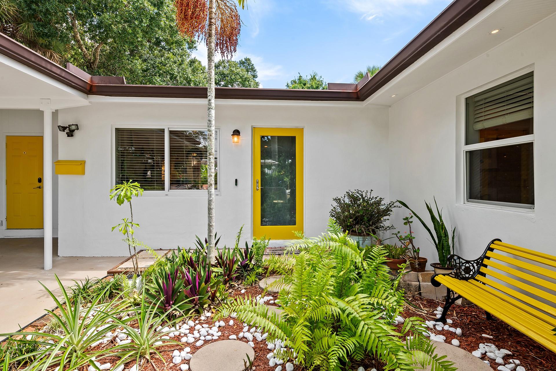 New price reduction for immediate sale! Mid-century modern home meets contemporary! Welcome to tranquil private retreat w/ interior designer finishes. This charming one story villa is an Oasis of nature with many mature palms and gorgeous oak tree! Great opportunity for investors as the house is licensed for short term rental w/ verifiable numbers. $150k spent on upgrades in 2023! Some of the features include: brand new baths, new PVC pipes, brand new AC units, impact doors and windows, salt water heated pool with underwater LED lights, polished original terrazzo floors, new landscaping, new metal roof, iPhone controlled smart home system, cameras & sound system and many more! - all minutes from downtown, Brightline and I-95 in park like setting of prestigious Gill Isles neighborhood.