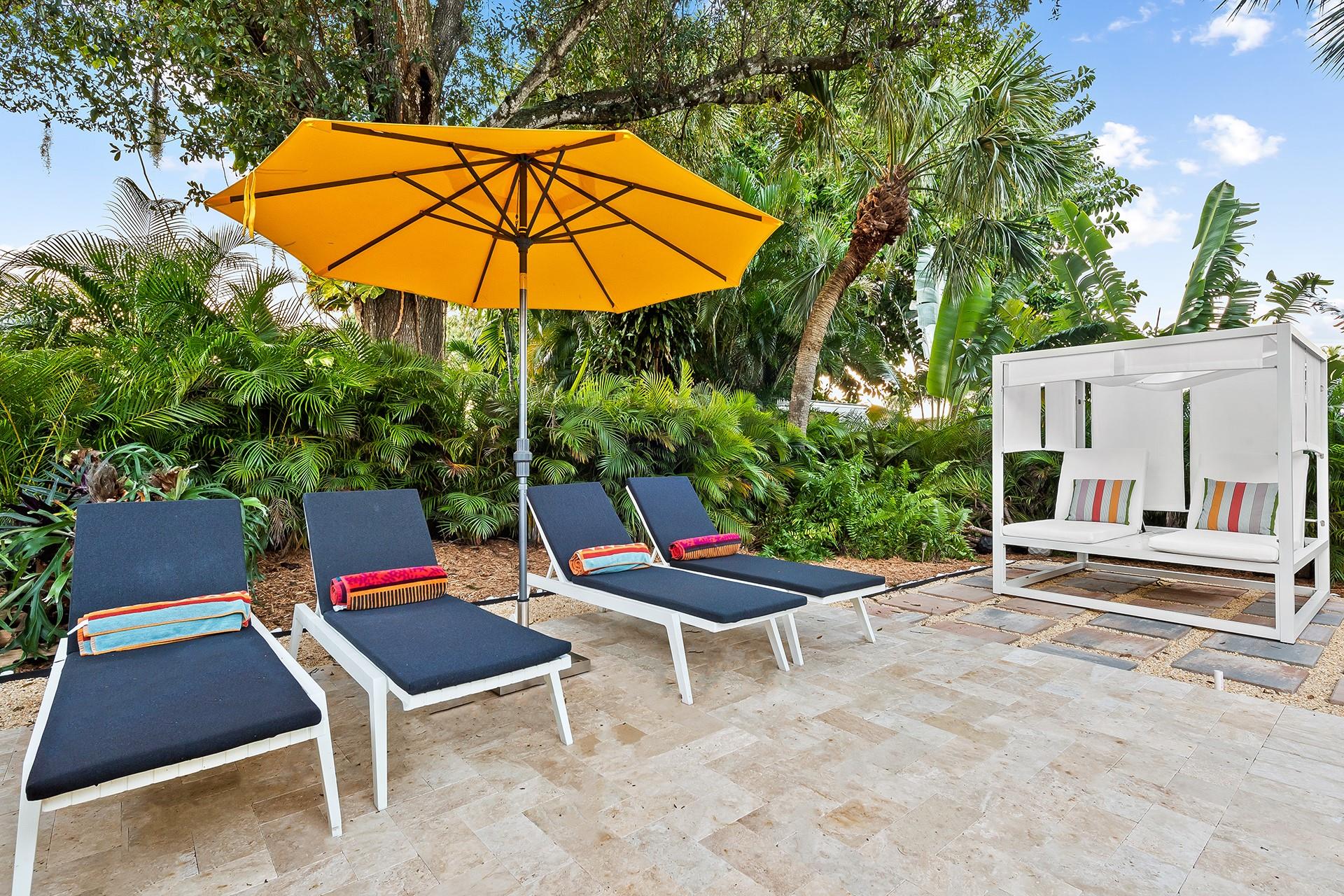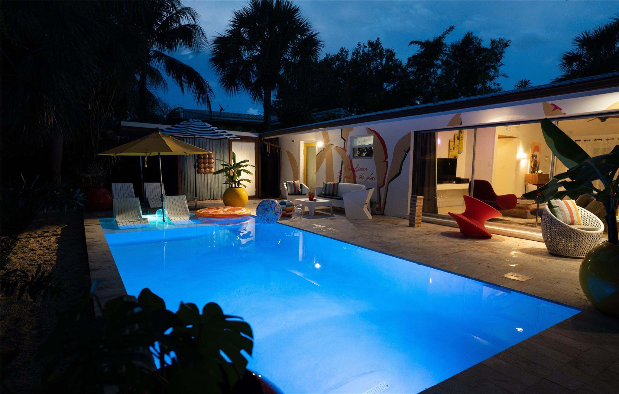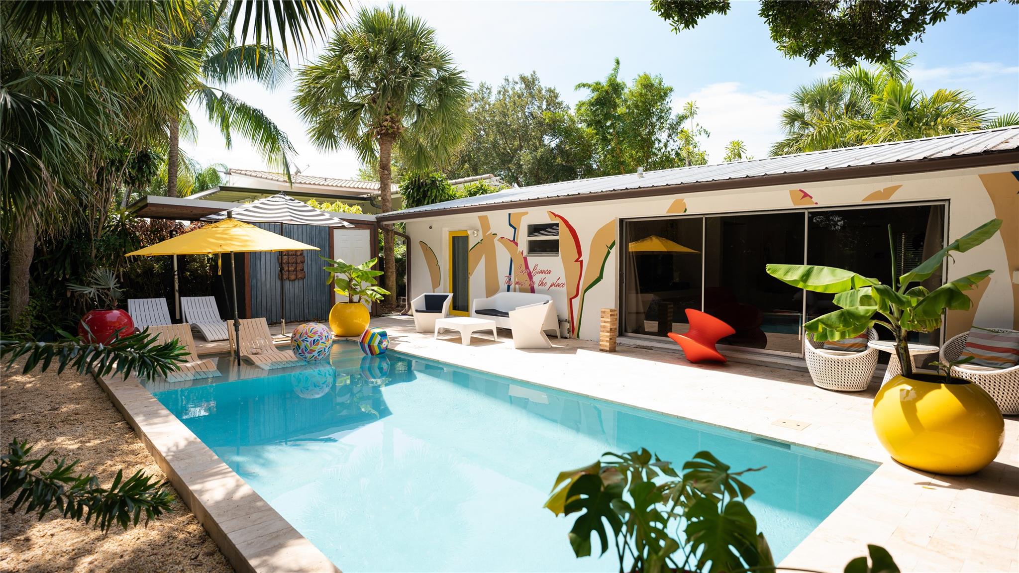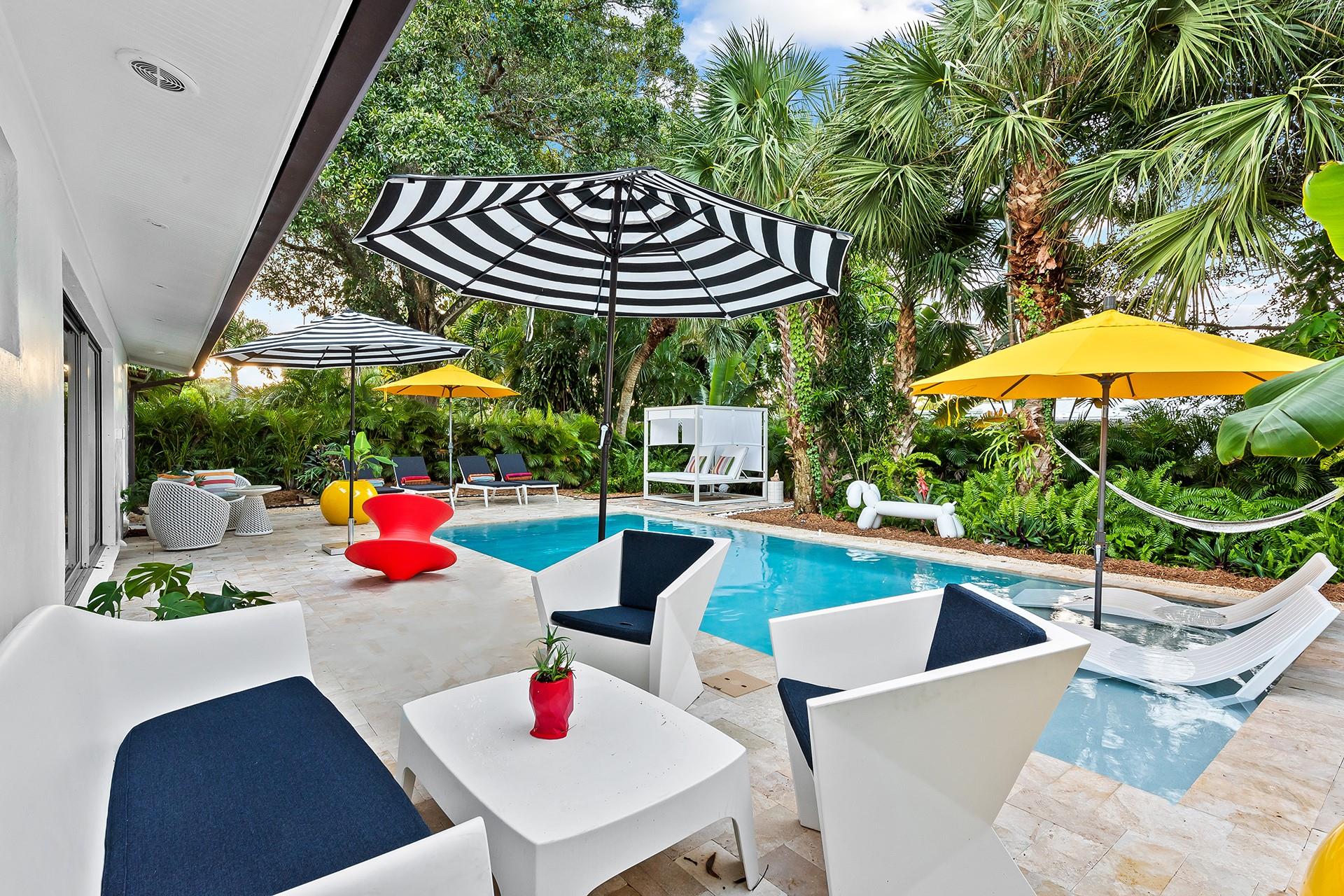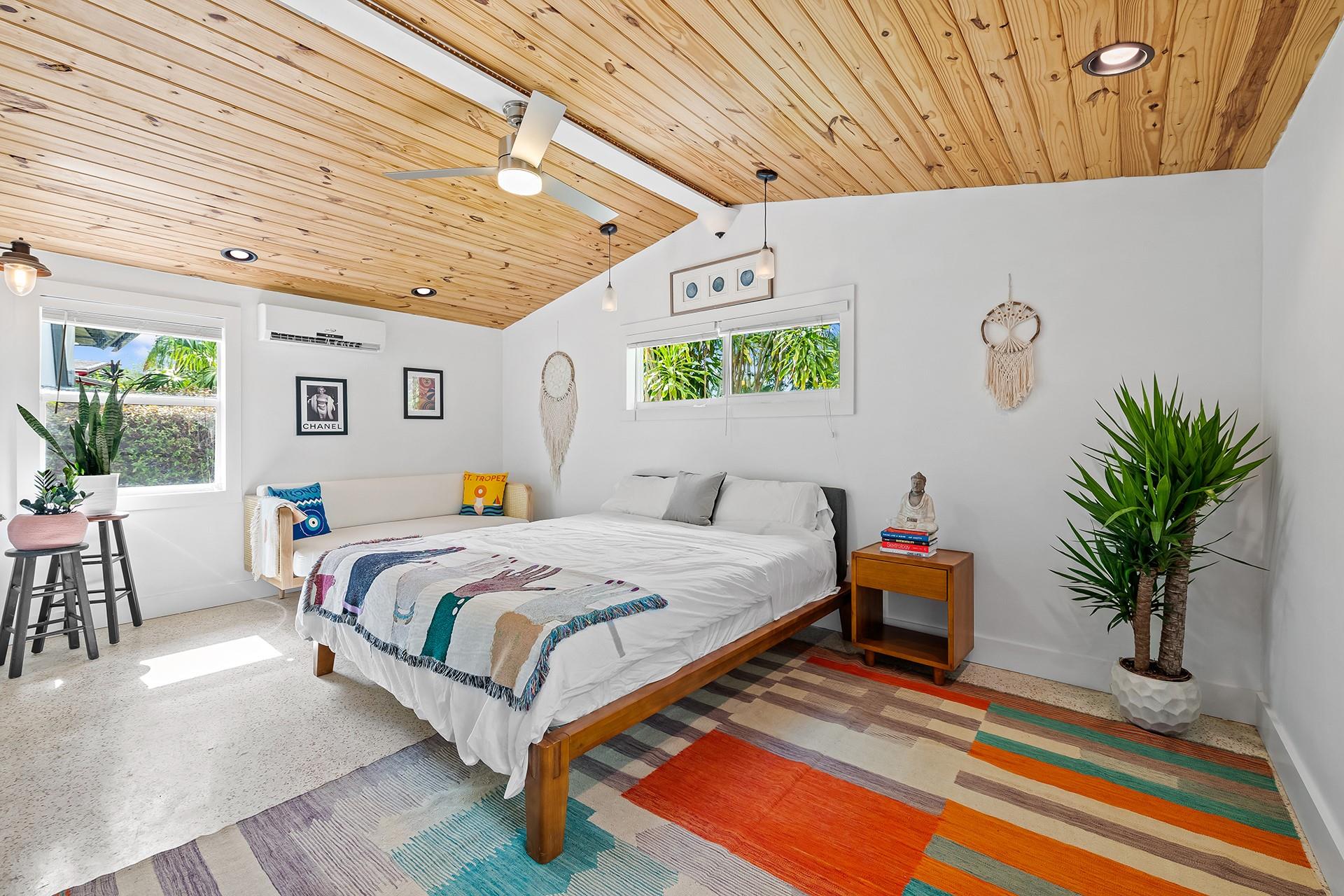 New price reduction for immediate sale! Mid-century modern home meets contemporary! Welcome to tranquil private retreat w/ interior designer finishes. This charming one story villa is an Oasis of nature with many mature palms and gorgeous oak tree! Great opportunity for investors as the house is licensed for short term rental w/ verifiable numbers. $150k spent on upgrades in 2023! Some of the features include: brand new baths, new PVC pipes, brand new AC units, impact doors and windows, salt water heated pool with underwater LED lights, polished original terrazzo floors, new landscaping, new metal roof, iPhone controlled smart home system, cameras & sound system and many more! - all minutes from downtown, Brightline and I-95 in park like setting of prestigious Gill Isles neighborhood.