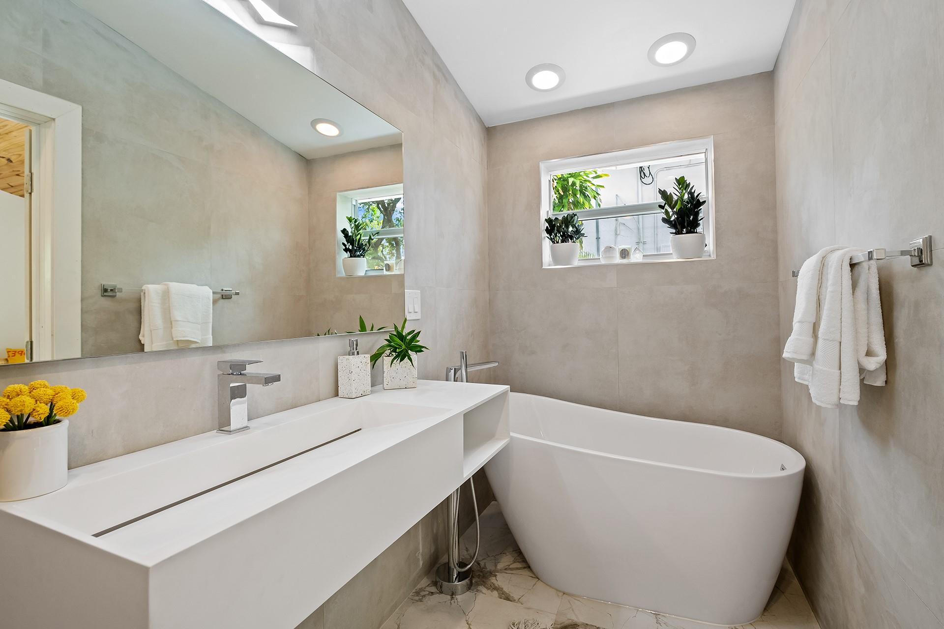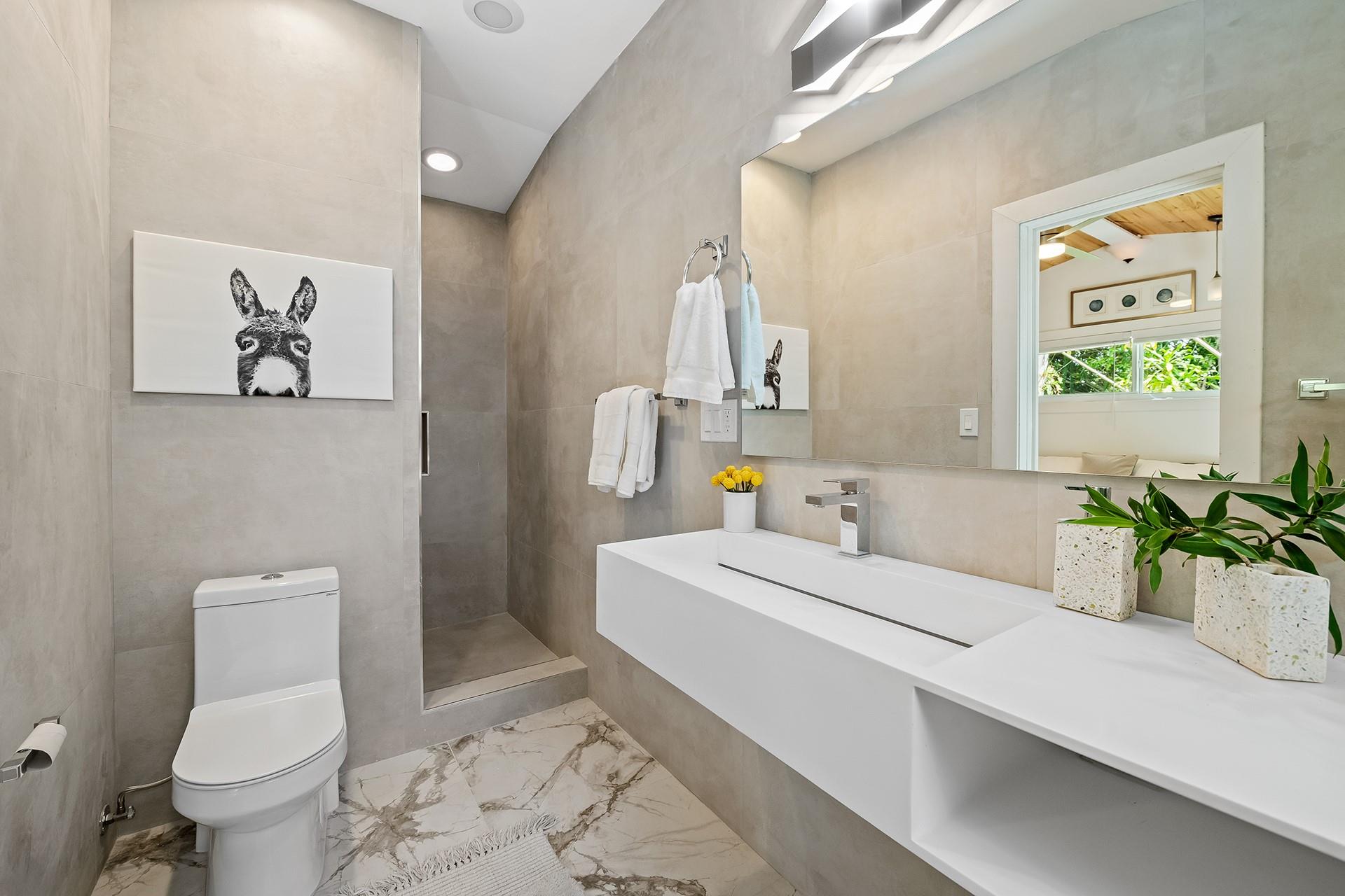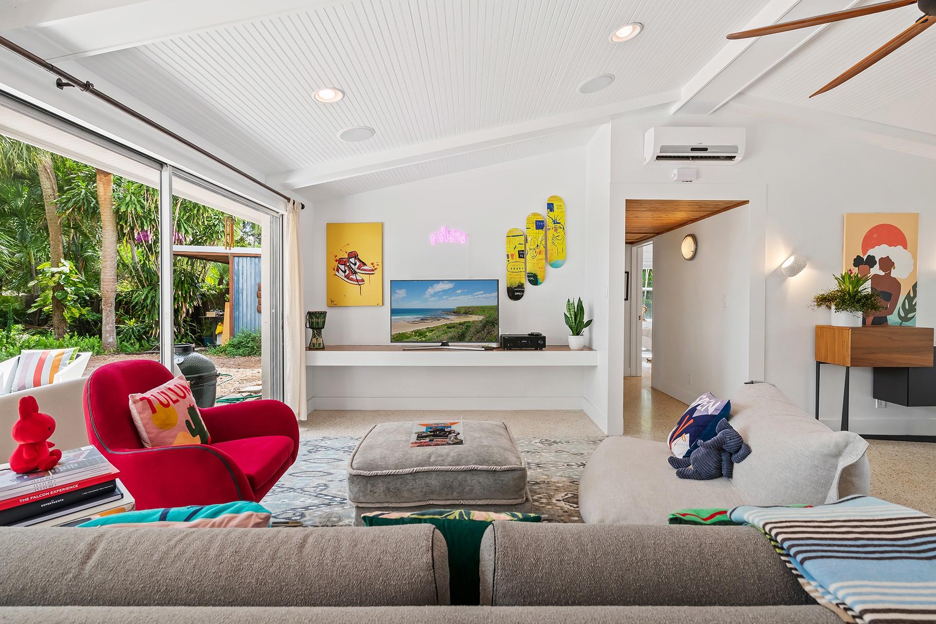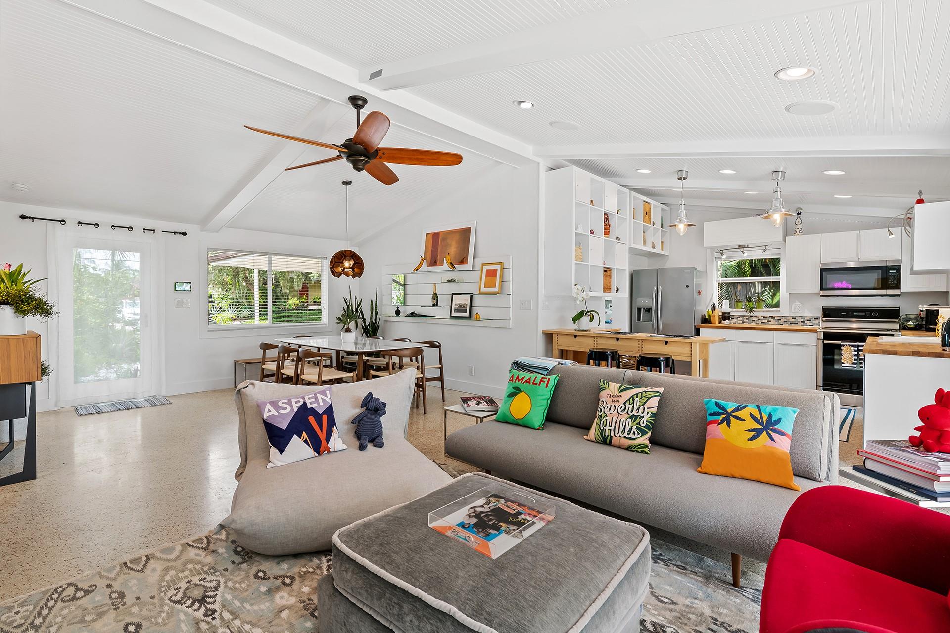 New price reduction for immediate sale! Mid-century modern home meets contemporary! Welcome to tranquil private retreat w/ interior designer finishes. This charming one story villa is an Oasis of nature with many mature palms and gorgeous oak tree! Great opportunity for investors as the house is licensed for short term rental w/ verifiable numbers. $150k spent on upgrades in 2023! Some of the features include: brand new baths, new PVC pipes, brand new AC units, impact doors and windows, salt water heated pool with underwater LED lights, polished original terrazzo floors, new landscaping, new metal roof, iPhone controlled smart home system, cameras & sound system and many more! - all minutes from downtown, Brightline and I-95 in park like setting of prestigious Gill Isles neighborhood.