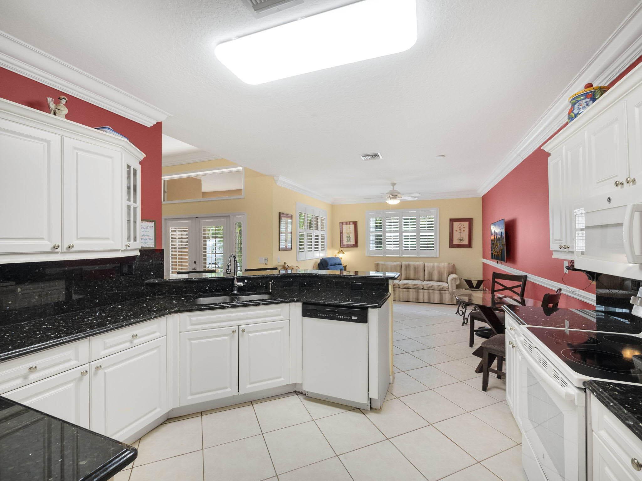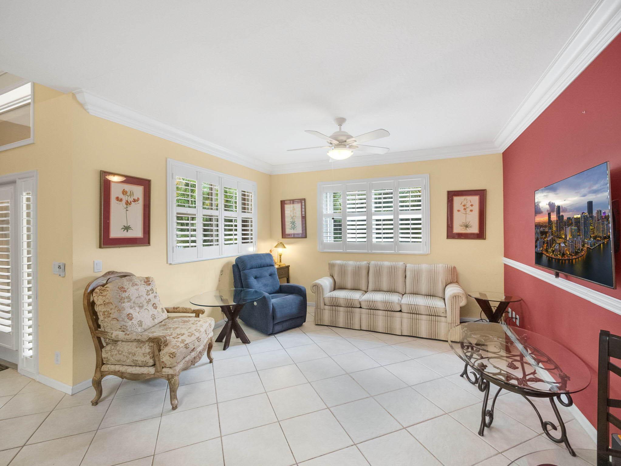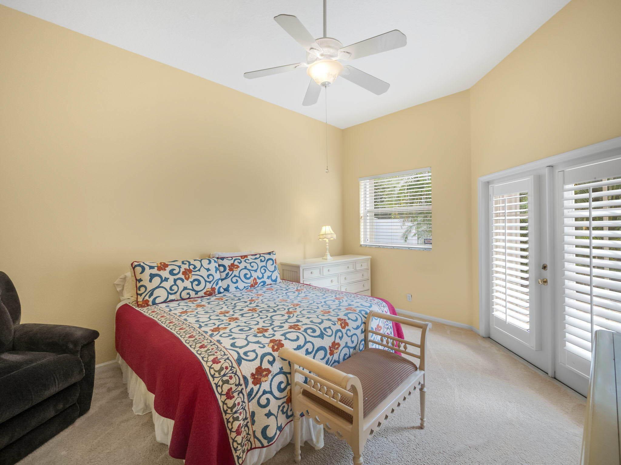Awesome sought-after single-story home in the exclusive Catalina section of Lakes of Laguna. Spacious open floorplan! Kitchen w/ granite counters, breakfast bar, large pantry. Large primary suite w/ two closets. Primary bath features dual vanities, separate tub, shower. French doors out to private backyard w/ expanded paver patio surrounded by privacy fence. Features vaulted ceilings, crown molding, wainscotting, plantation shutters, tankless water heater 2021, A/C 2018. LOW HOA FEES. 24-hr manned guard gated community w/ two pools, tennis courts & basketball court. Conveniently located off Military Trail near shopping, dining, beaches, golf, City Place, the Ballpark of the Palm Beaches, Clematis, Flagler Ave & more! Close to I-95, Florida's Turnpike & the Palm Beach Airport.