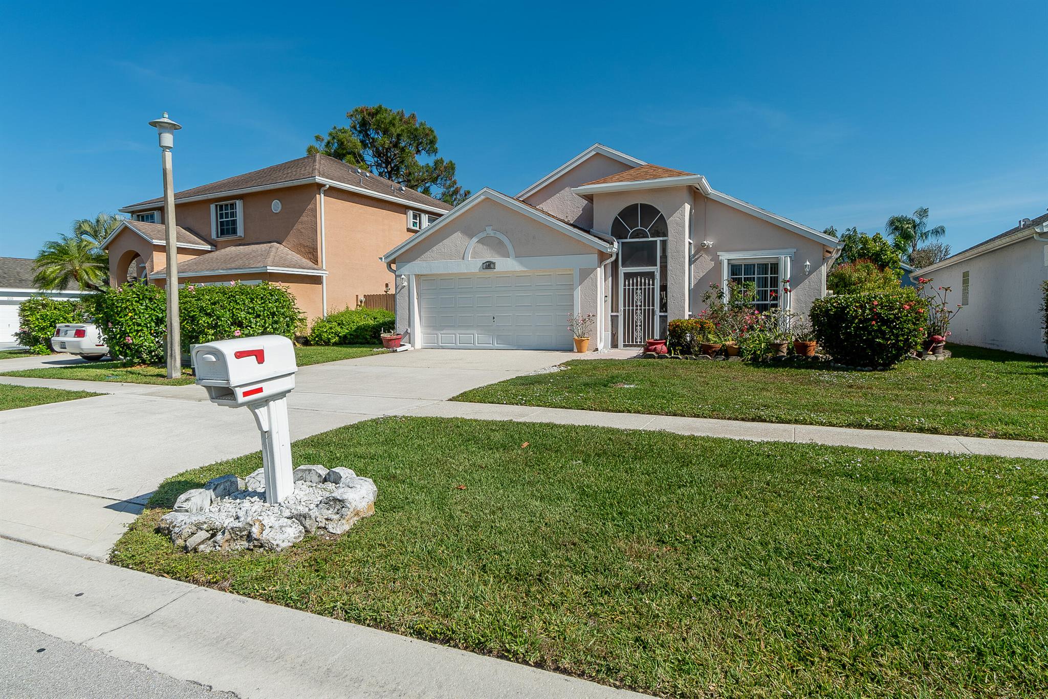 Beautiful Saratoga Lakes Home in Royal Palm Beach, Florida. Featuring 3 beds, 2 baths, and 1673 sq ft. Highlights include a covered lanai, screen enclosure, & a tiled outer screed patio. New Roof 2016 with leaf guard on the gutters, kitchen updated 2022. Hardwood Flooring and Tile throughout. Hot Water Heater 2017. A/C 2016. Enjoy the community amenities, pool and tennis courts just across the street. Plus the convenience of being next to the Madison Green Golf Course only a 2 minute drive. Only a 20-minute drive from West Palm Beach Airport and 34 minutes to the Brightline Train for easy access to Miami or Orlando. 15 minutes drive to the Florida Fairgrounds. Shopping and Dining options nearby. Don't miss out on this opportunity to live near everything you need!
