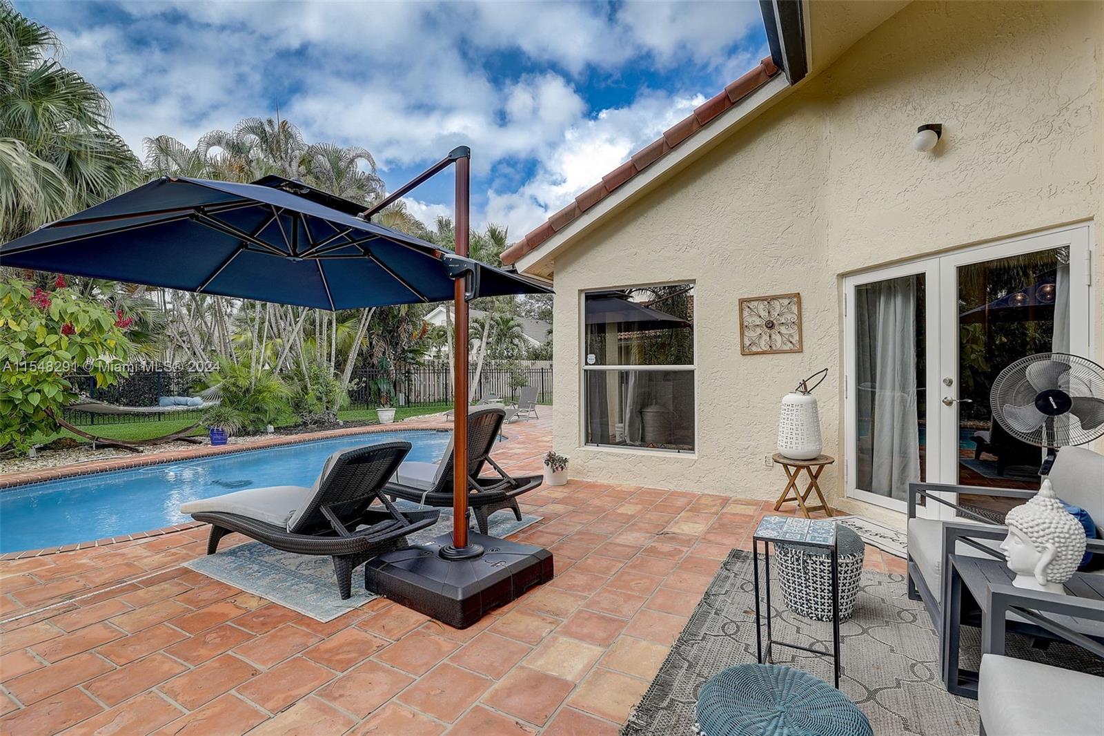 Welcome to your dream home, a one Story 4/2.5 plus flexible space Office or 5th Bedroom Pool home in Weston, FL. Enjoy the perfect layout with privacy, warmth and living space offering split bedrooms separated by glass panel pocket doors. The heart of the home, the renovated modern open kitchen, equipped with new refrigerator and air fryer oven for culinary adventures and perfect for prepping and entertaining. Flooring and bathrooms have been transformed as well, including an extra-large shower and spa tub for your relaxation. Step outside to your expanded fenced and private backyard with sparkling pool, overlooking large green space. Location is key, near Weston Town Center. Airport, and beach within a short drive. This opportunity won't last long. Don't miss this chance to make it yours!