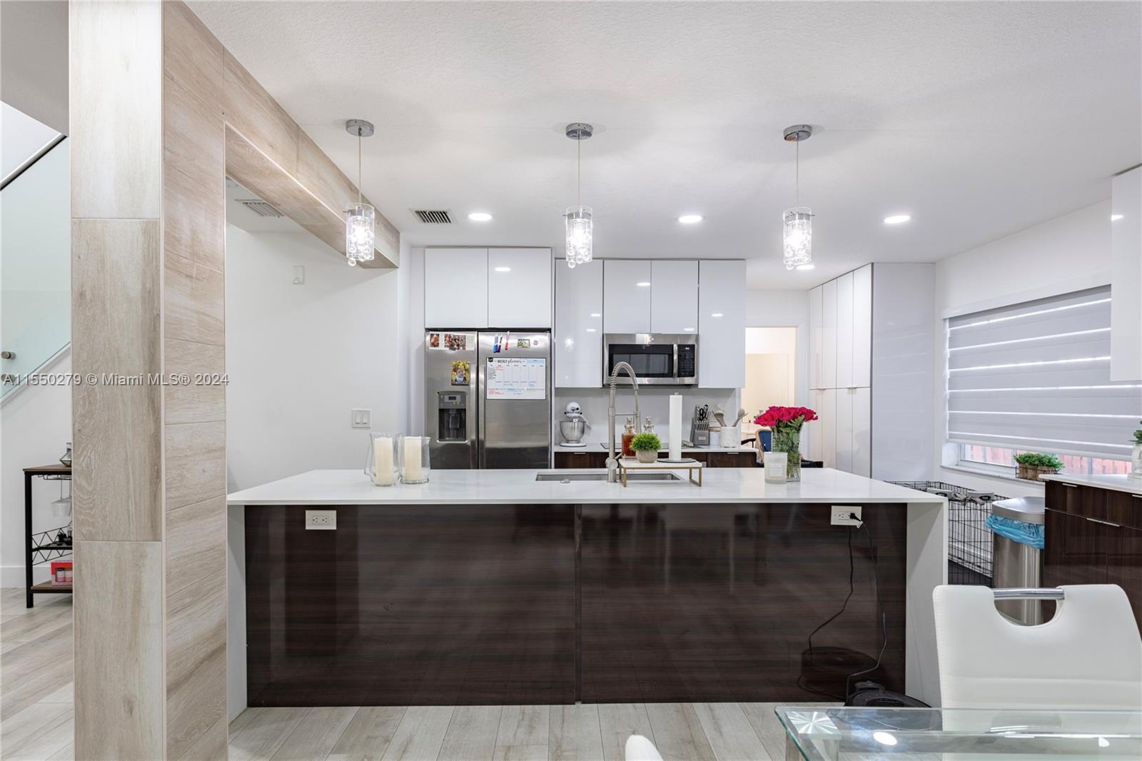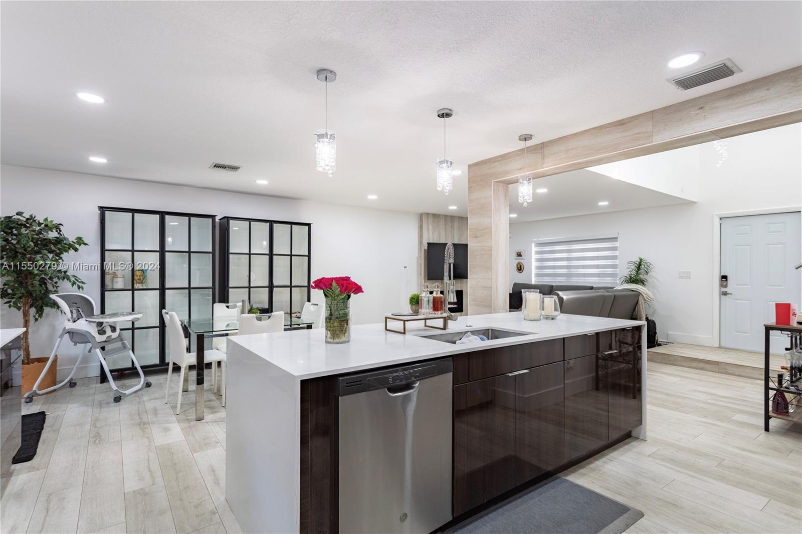 Welcome to this modern completely updated 3 bed, 2.5 bath home in the heart of Plantation! Downstairs open concept layout is just perfect! Glass stair railings, gourmet kitchen with all stainless steel appliances and quartz counter tops, built-in electric fireplace will make you fall in love with this home the minute you walk in. Upstairs has 3 bedrooms. Primary bedroom has 2 walk-in closets, both showers are beautifully updated, laminate flooring throughout.1 car garage. New Roof (2023), Surge protector (2023), AC & WH & Electrical panel (2022). Back yard is fully fenced, with new paver deck & tiki hut (2022), New garage door motor (2022), freshly painted (2024), every room is wired for flat screen mount/TV, zebra blinds.Close to shopping, A-rated schools. NO HOA Approval.