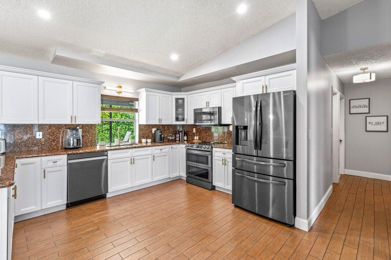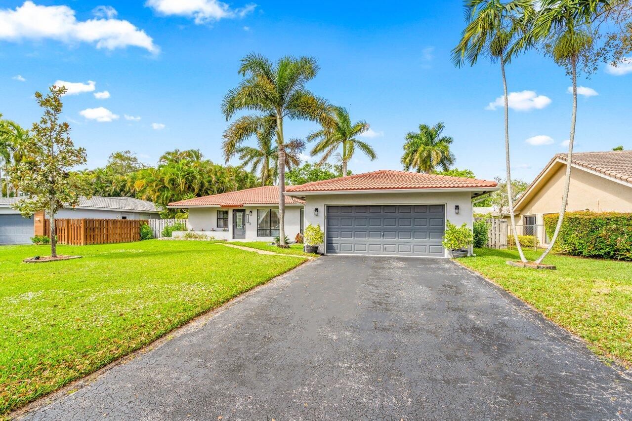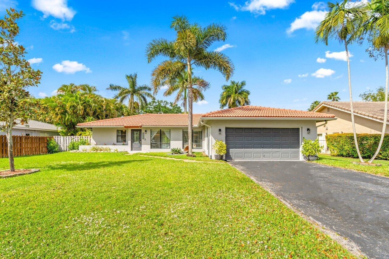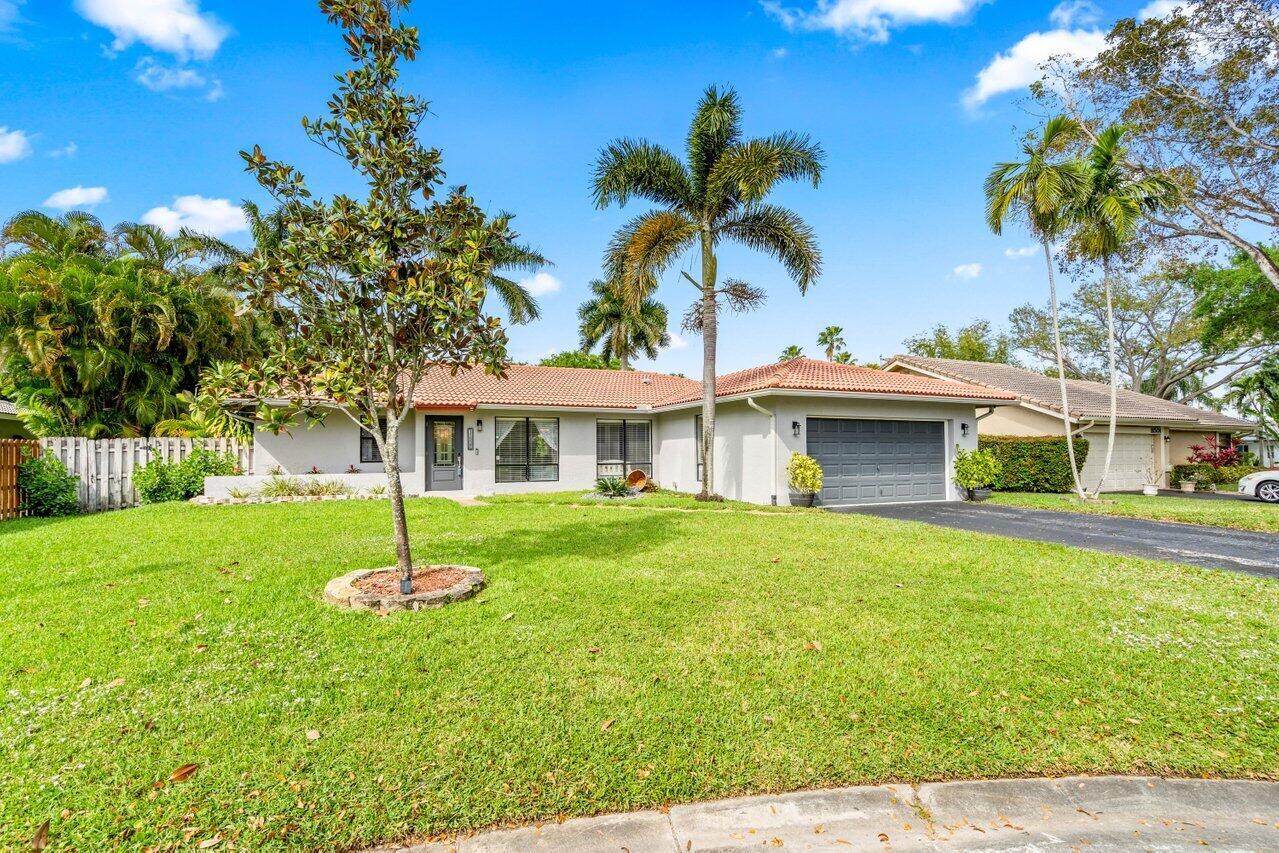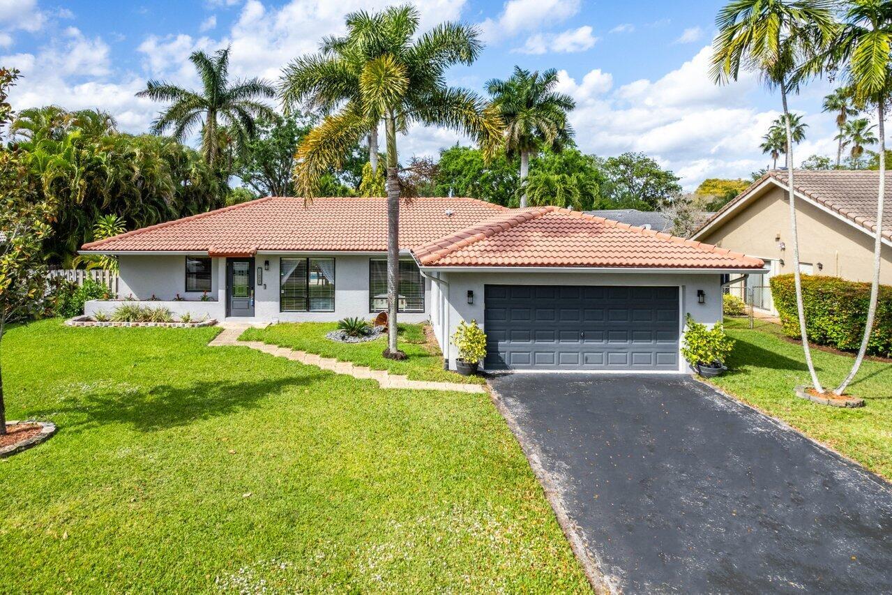 Gorgeous 4 Bedroom Home in Coral Springs. This Move In Ready Pool Home is in Mint Condition. No HOA. The Home Sits on a Quiet Culdesac Located near Excellent Schools. Entering the Home You Will Be Impressed by The Volume Ceilings in the Living Areas. There are Wood Look Tile Floors Throughout. The Remodeled Kitchen Includes White Wood Cabinets, Newer Black Stainless Steel Appliances and Granite Counters with Full Backsplash. Out Back is Paradise with Travertine Pavers Overlooking the Beautiful. Tons of Privacy Make this Backyard Feel Like Your Own Resort! The Large Primary Bedroom with Laminate Floors has a Huge Walk-In Closet & the Primary Bath has a New Vanity & Large Step In Shower. All 3 Guest Rooms are Big & the Guest Bath Includes a Cabana Door to Pool. Do Not Miss this One!
