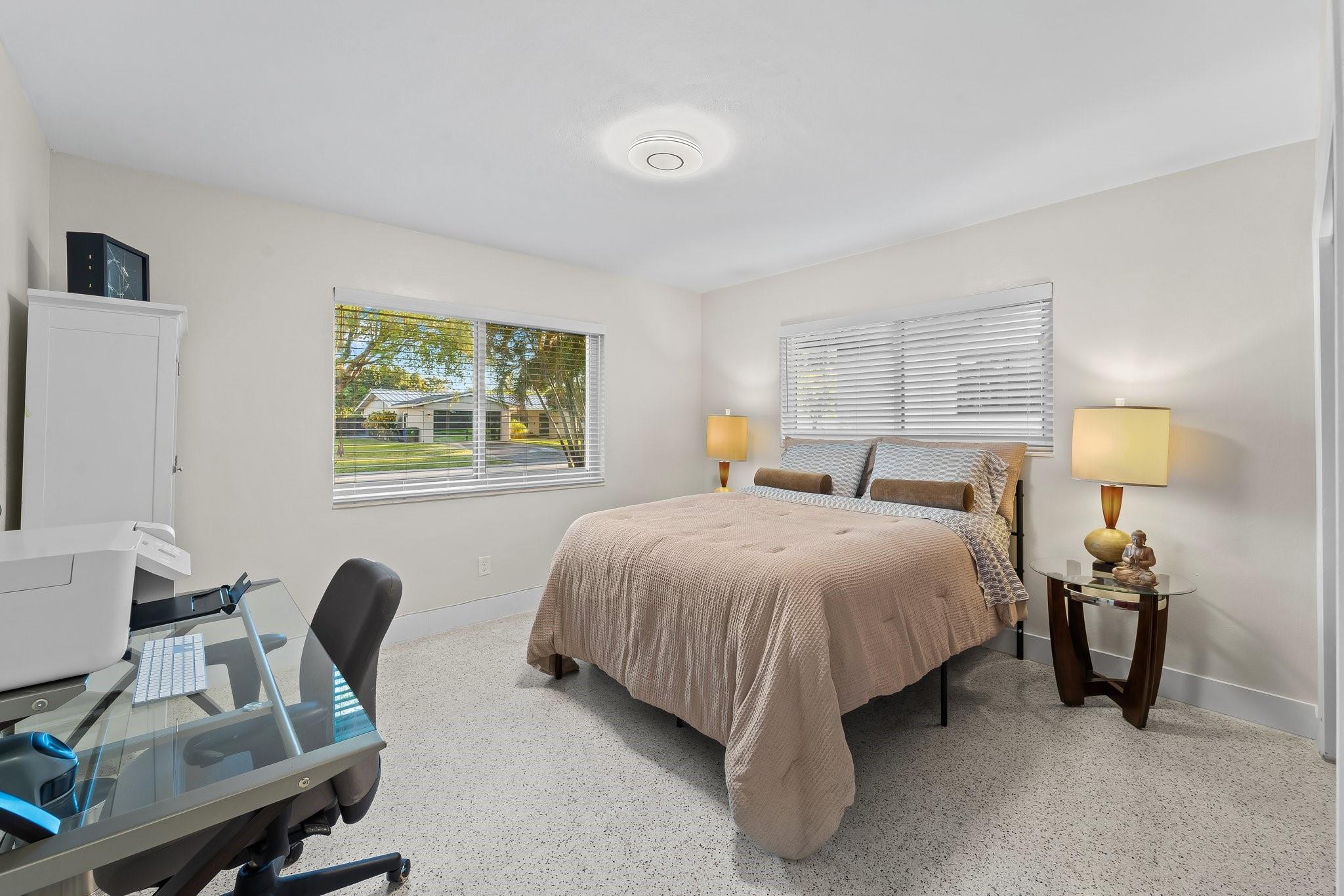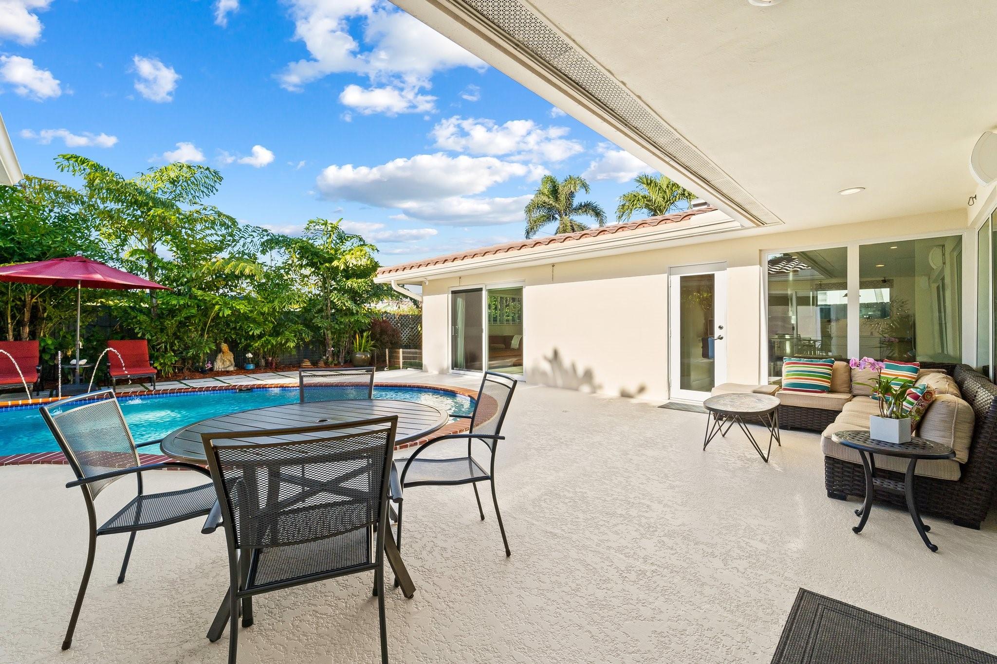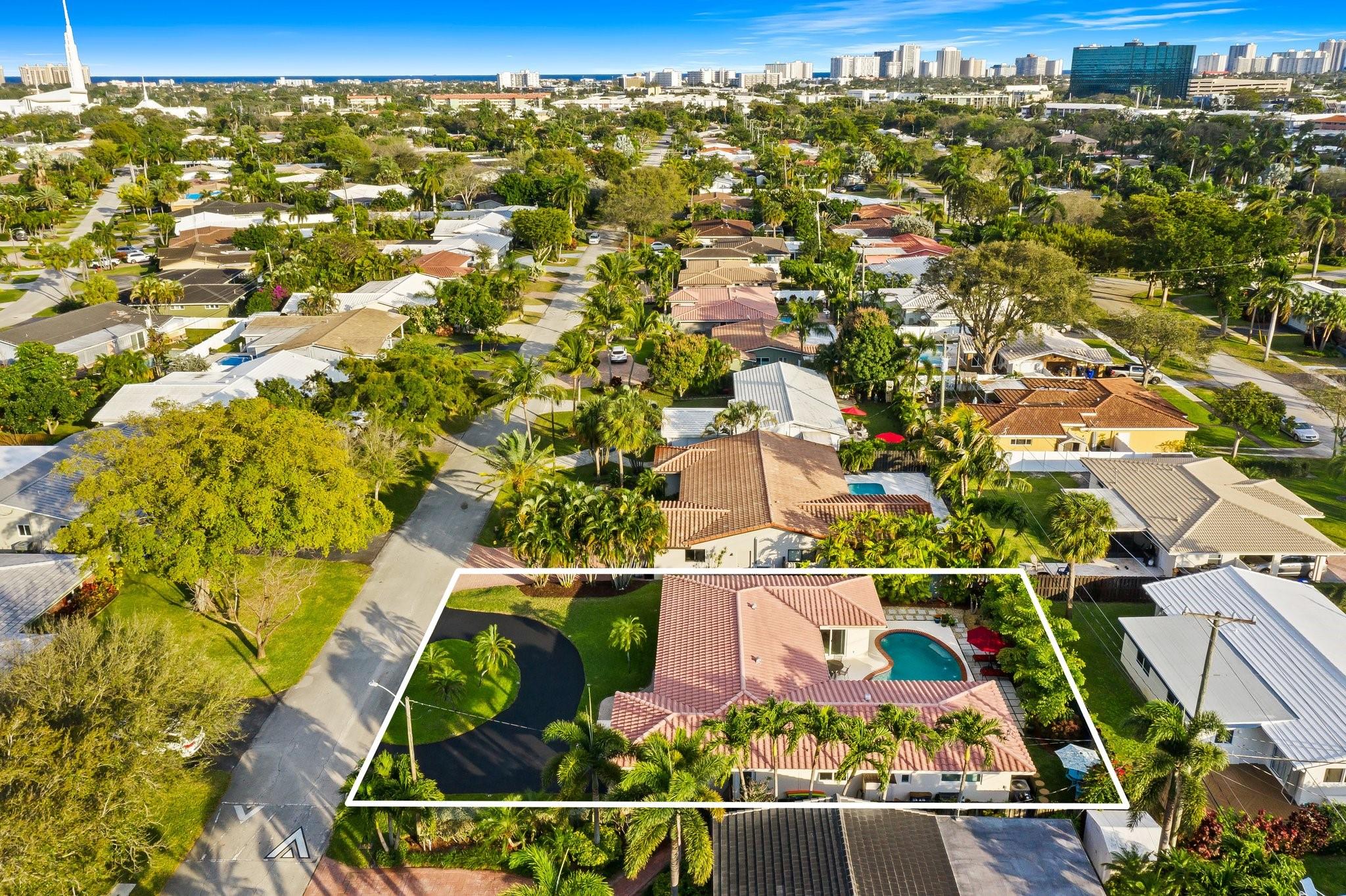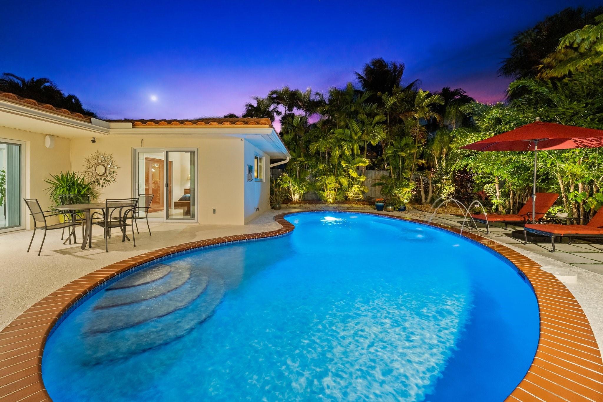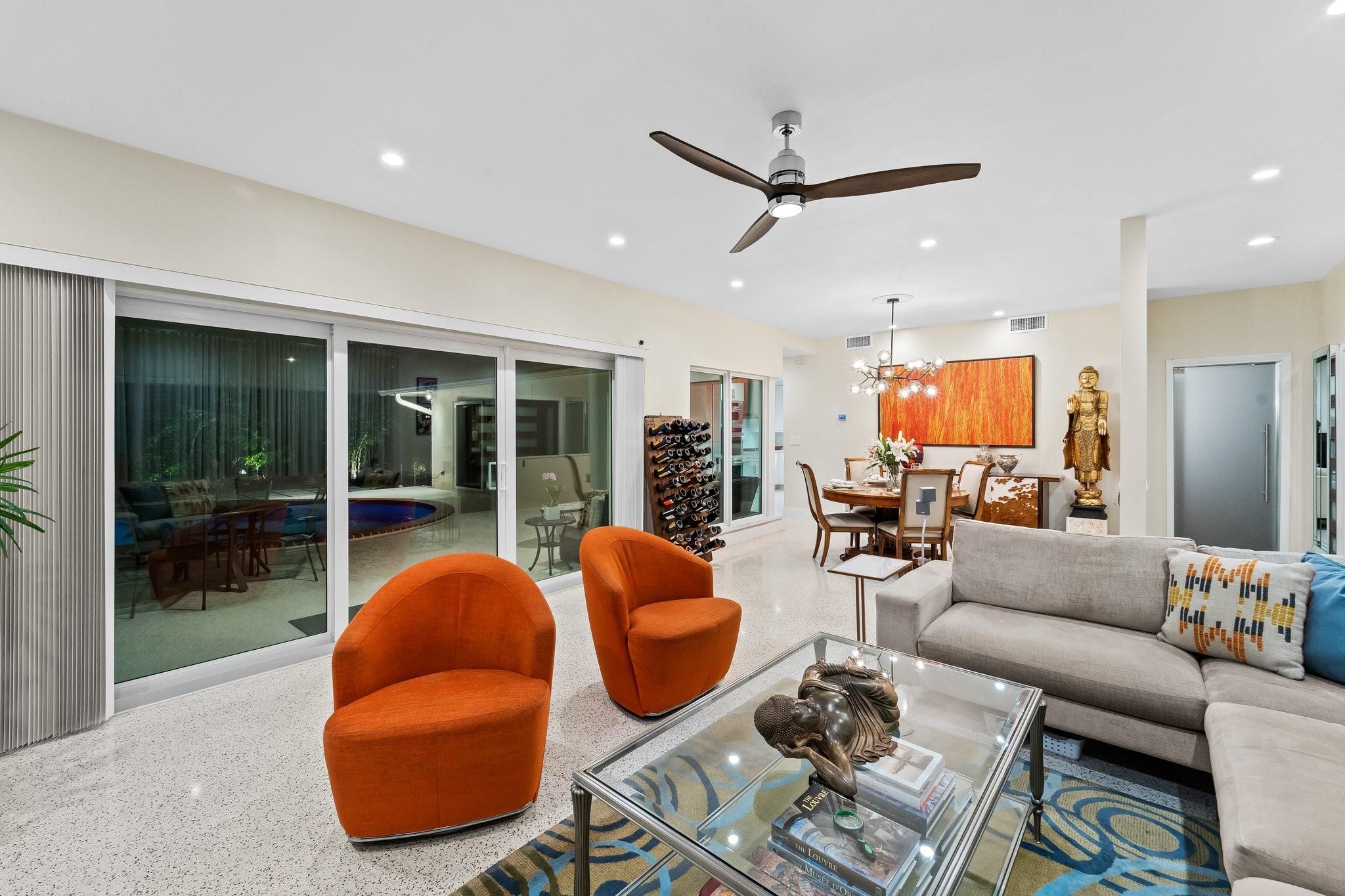 Experience the epitome of mid-century charm blended with modern luxury in the prestigious Coral Ridge neighborhood, just minutes from the pristine beaches and the vibrant heart of Fort Lauderdale. This exquisite fully renovated residence, nestled within a tranquil setting, offers an unparalleled lifestyle with proximity to the Coral Ridge Golf and Country Club, Wilton Manors, Las Olas's shopping and dining delights. The home's thoughtful split floor plan includes an adaptable office space, seamlessly doubling as a fourth bedroom. Interior spaces are bathed in natural light, thanks to expansive walls of glass that forge a harmonious connection between the indoors and a mesmerizing outdoor courtyard and saltwater pool.