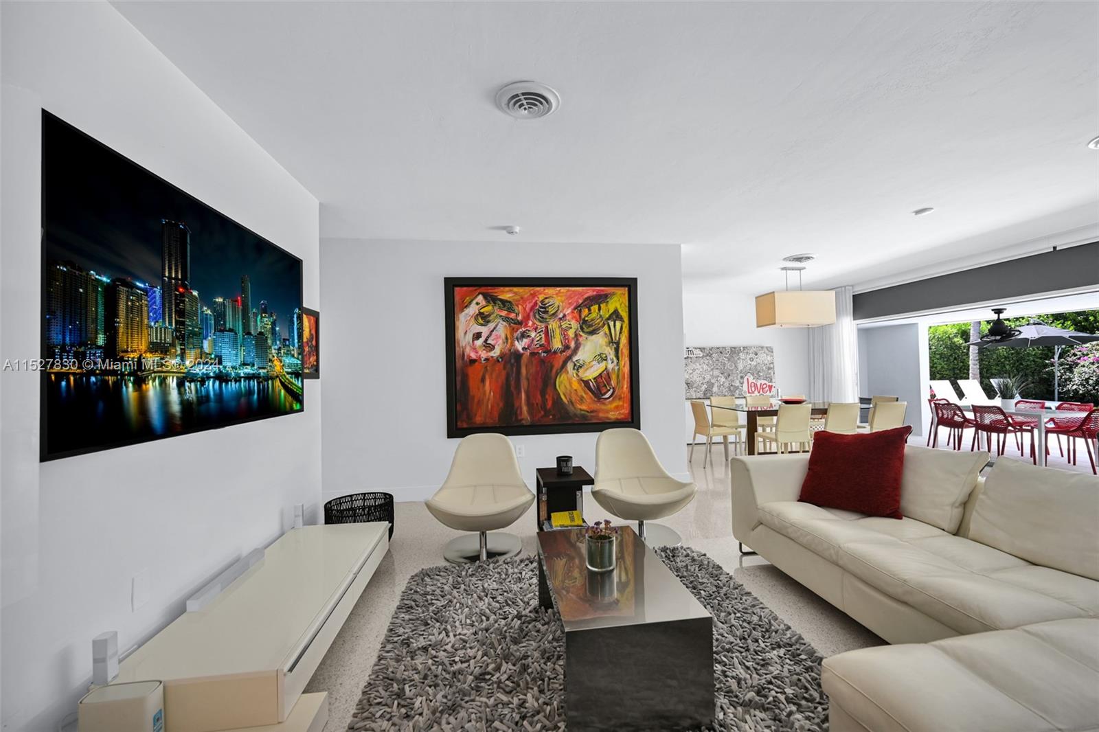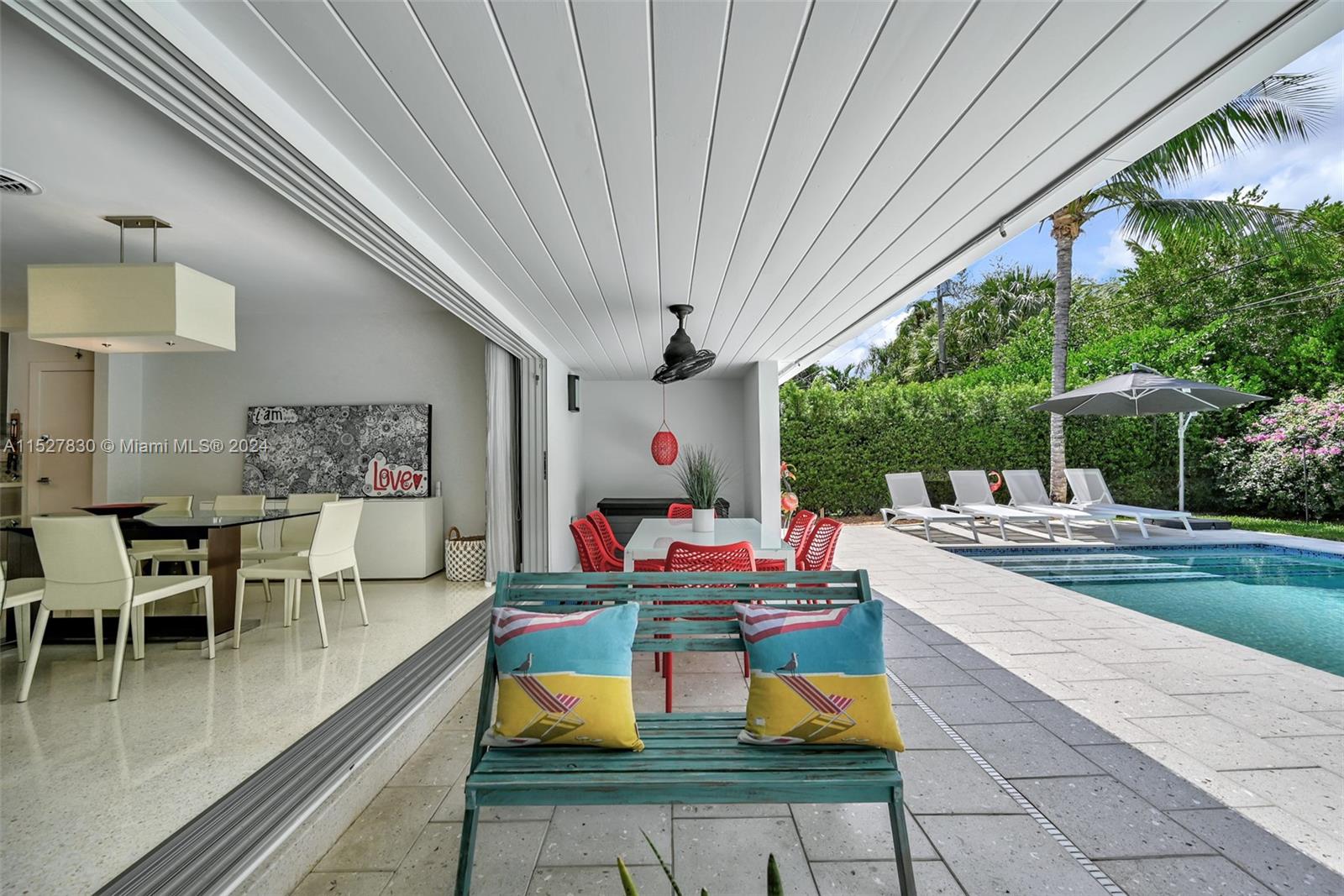 Excellent opportunity to own this modern home on prime location of coral gables golden triangle steps from Biltmore Hotel. Located in much desired tree lined street within walking distance to parks, recreation, markets and downtown coral gables. House has been updated with new bathrooms, high impact windows,italian kitchen with Miele and Sub zero appliances, bright spaces with separate dining, living and extra area to entertain. One car garage. Walk into a foyer which separates both entertaining spaces and your private 3 bedroom suites with many closet space. Walk out to private terrace/patio area from both dining living through wall to wall glass modern sliding doors combining the inside with the outside of home. Salt water pool and patio is privately fenced with surrounding landscaping.