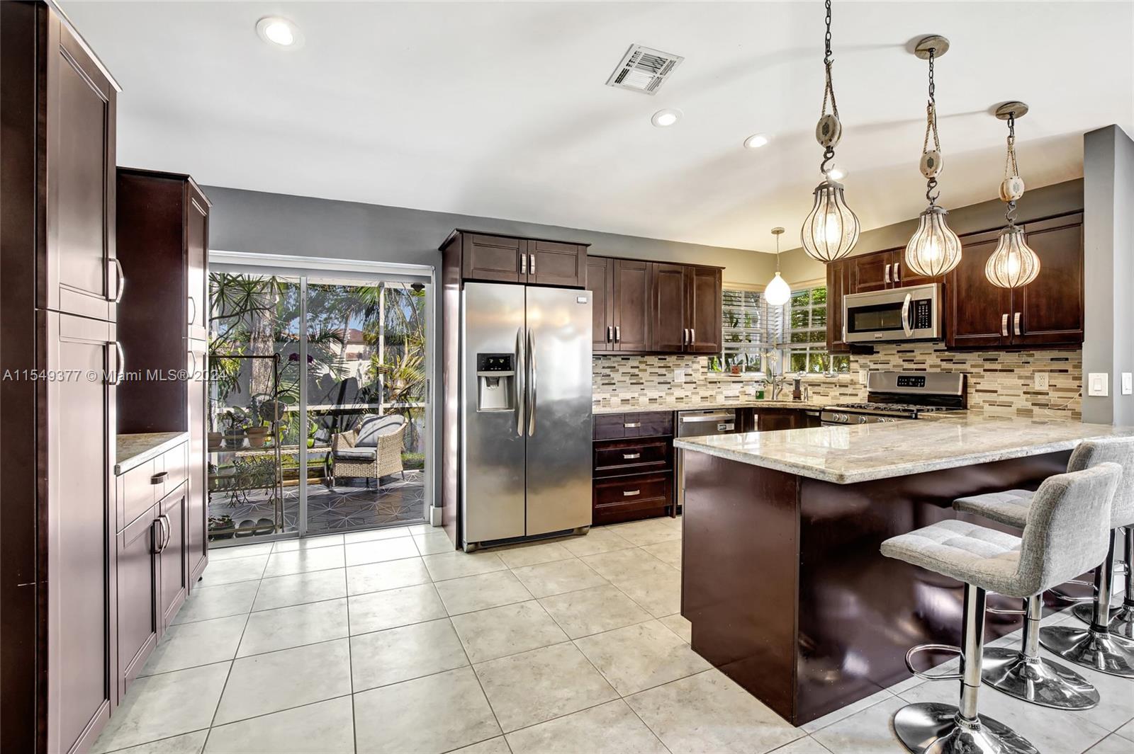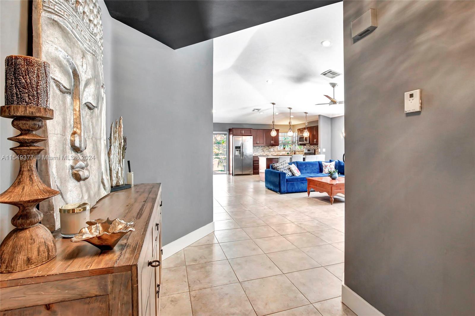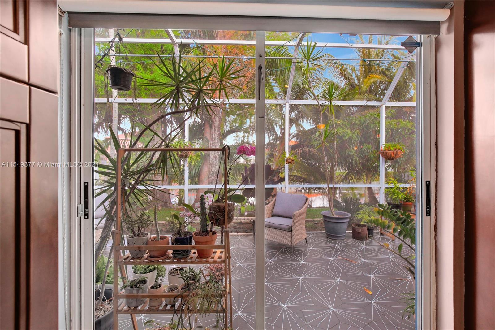 Exquisite Waterfront Residence boasting a tranquil vista from screened-in porch. Renovated kitchen and baths feature premium wood cabinets/granite/stainless appliances. Kitchen thoughtfully redesigned to include a convenient breakfast bar. Natural gas available for stove, water heater, and dryer. Upgrades include new roof 2023, gas water heater 2023, air conditioner 2021, dishwasher 2022, energy-efficient attic insulation 2022, and tile flooring throughout. With high-volume ceilings, split bdrm plan, and Roman tub, this home exudes luxury. Hurricane protection ensures peace of mind. Embrace a sustainable lifestyle with fruit trees- banana, dragon fruit, passion fruit, mango, coconut, and Barbados cherry, along with assorted herbs and vegetables. Easy access to I595, I75, Malls and airport.