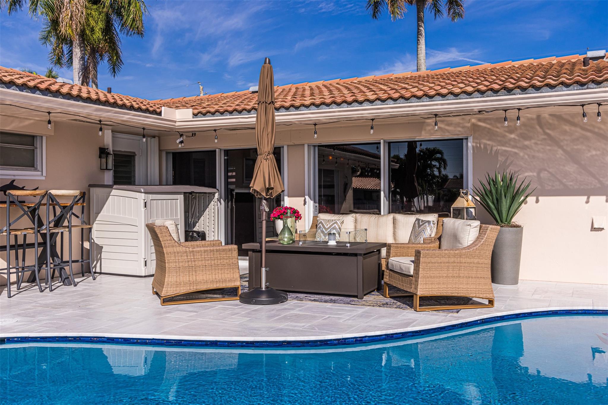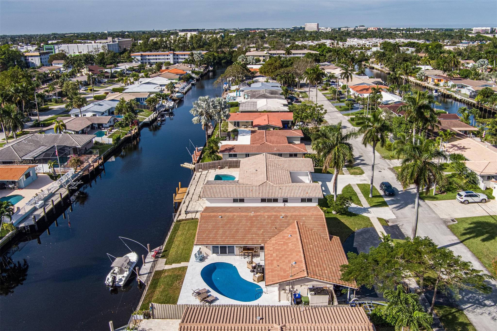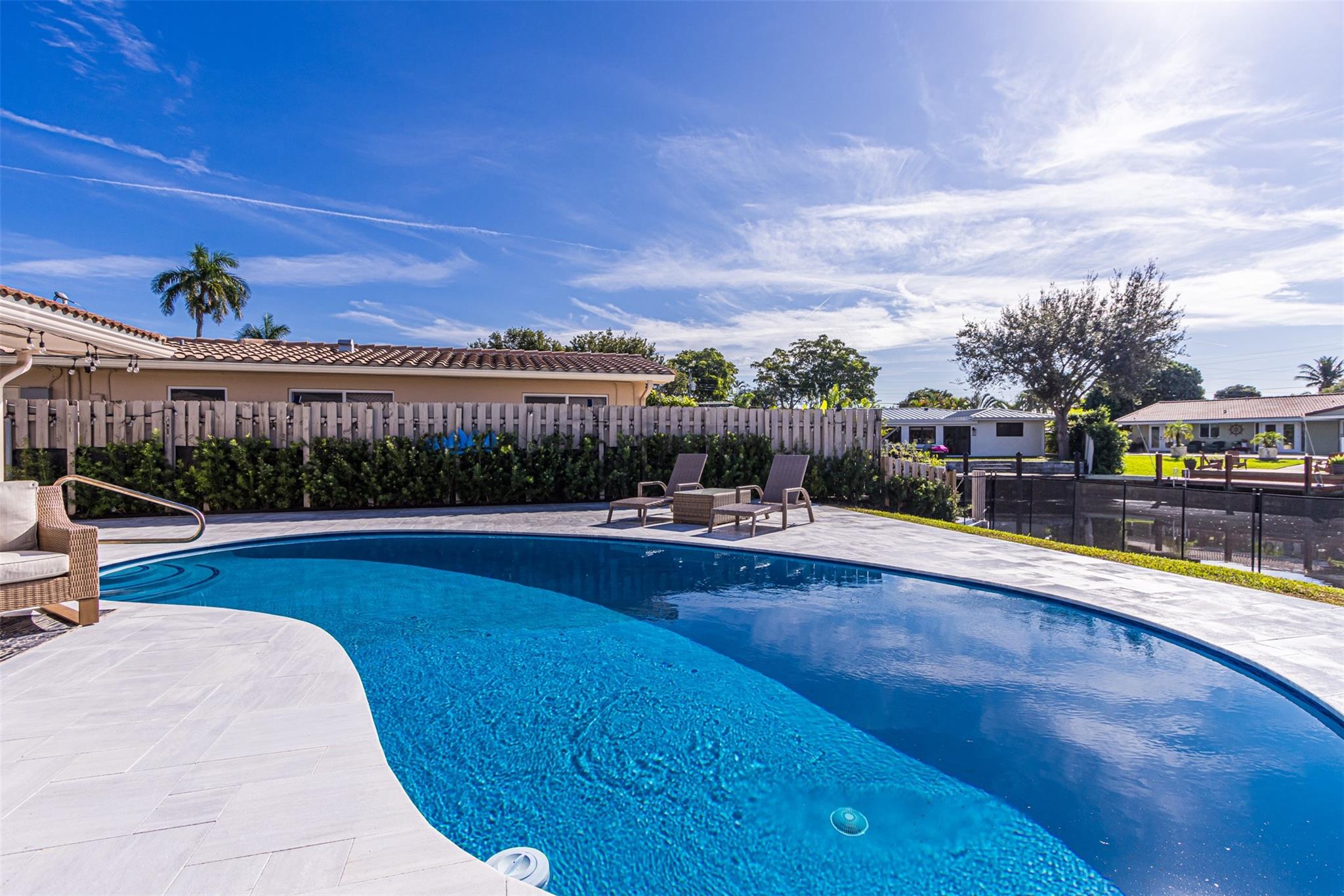 Highly desirable CORAL RIDGE ISLES neighborhood minutes from Pine Crest School. This home sits on a beautiful waterfront and just mins to the intercoastal. From floor to ceiling nothing has been left out. This home has been upgraded starting with the outside being painted, new gutters, tiled porch and the carport. New fence on both sides of home, solar lighting on fence & dock. Inside you have NEW 4ton A/C with blue light, electrical box, 40 gal hot water heater, washer/dryer, with impact sliding doors & window, 2nd bath completely remodeled with impact window, Primary bamboo, in other 2 bedrms laminated floor. Impact front door. Plumbing lines cleaned with new lining. Out back NEW marble tile around pool & patio pool was re-marcited , 100 ft seawall, 24ft dock. Boat negotiable. MUCH MORE.