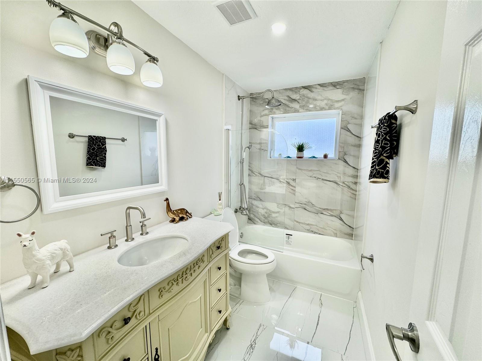 This unique GEM is in a league of its own in this area. Luminous elegant one story 3 bedroom and 2 bathroom with a large back yard. Newly Roof 2019.New garage Door with permit.New interior electrical panel,New Elec. wiring.New A/C and New duct entire the house.New smoke detectors.New flooring Tile on entire living room and Florida room. Wood laminate in Bedrooms .New bathrooms full remodeled w/new vanity, glass doors. New luxury kitchen w/Quartz counter top on Italian design hard wood Cabinets with New SS Appliances.New Plumbing & Electrical fixtures.New full size washer&dryer.Gas water heater big saving on your elect. bills.New interior doors and New impact exterior doors and windows in Florida room.New landscaping with New Irrigation piping and equipment.New blinds.New driveway asphalt.