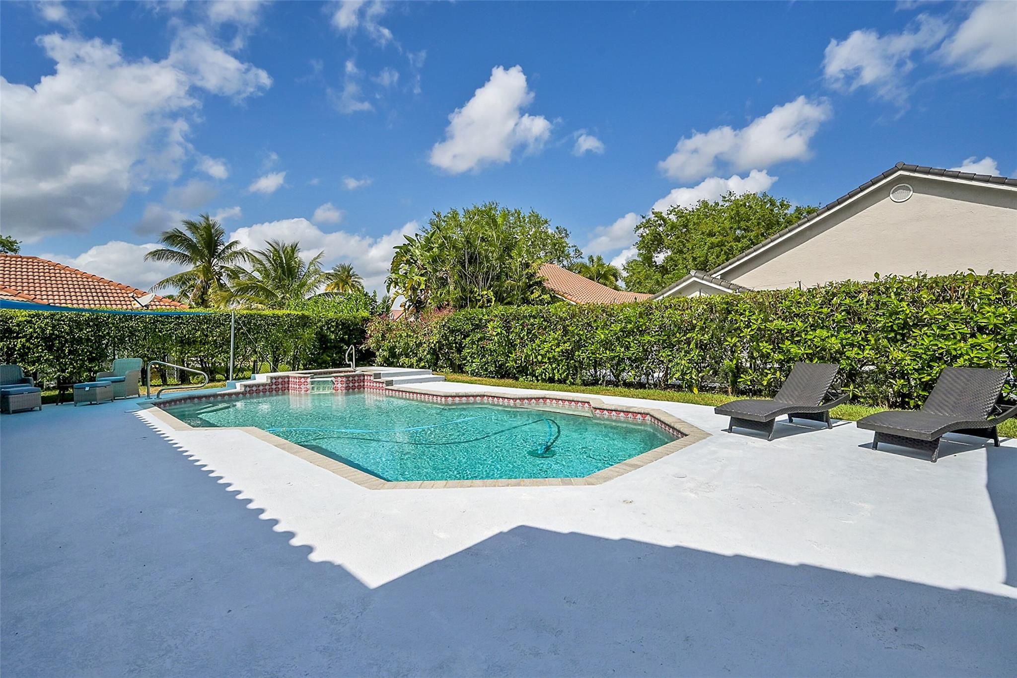 Magnificent 4/2 home in highly sought after Forest Ridge. Featuring: LOW HOA, a cul-de-sac, DIRECT access to The Ridge with amenities such as pickleball, tennis, community pools and basketball courts. WALK to TREE TOPS PARK. FULL IMPACT WINDOWS AND GARAGE, 2-car garage, LUXURY vinyl flooring throughout the OPEN CONCEPT family & dining room w/built-ins & wood shiplap. The kitchen features SS appliances, double ovens, granite countertops, wood cabinetry & breakfast bar. The primary ensuite boasts a walk-in closet, double sink vanities, large shower and a tub with private patio access. Secondary bathroom is upgraded with a frameless shower enclosure and shower niche. Outside, there's an EXTRA LONG pool 15X35 AND SPA flowing into the pool. NEWER ROOF (2018) A/C (2019) WASHER & DRYER (2017)!