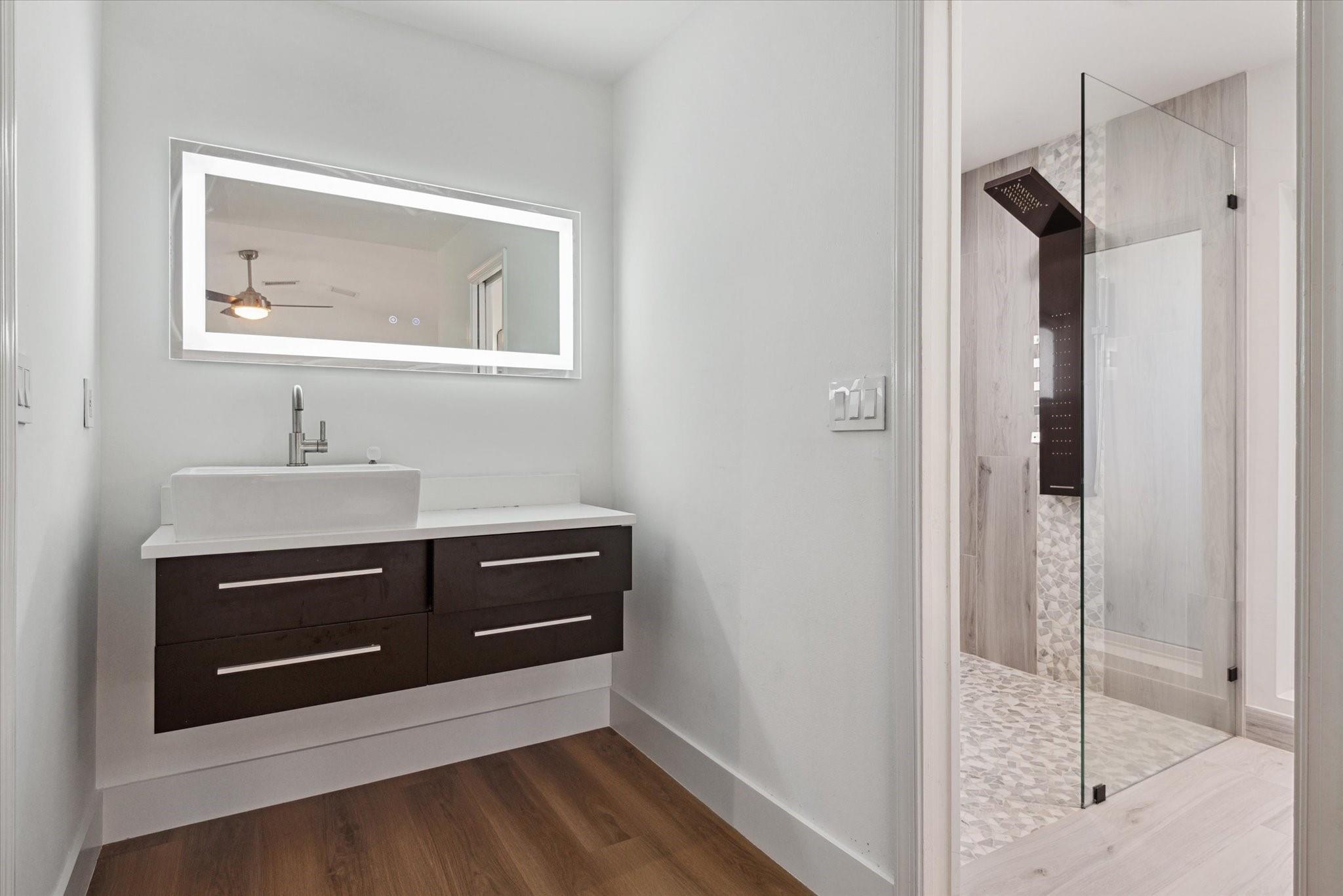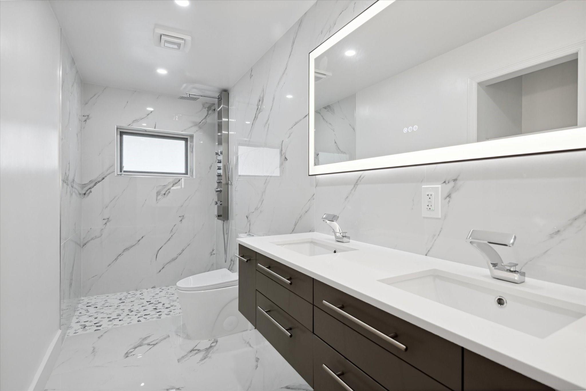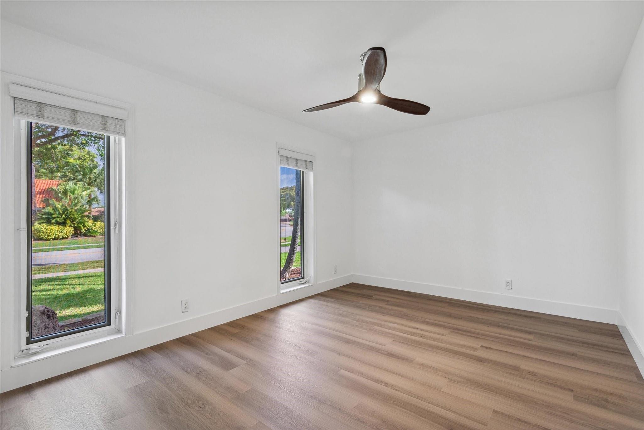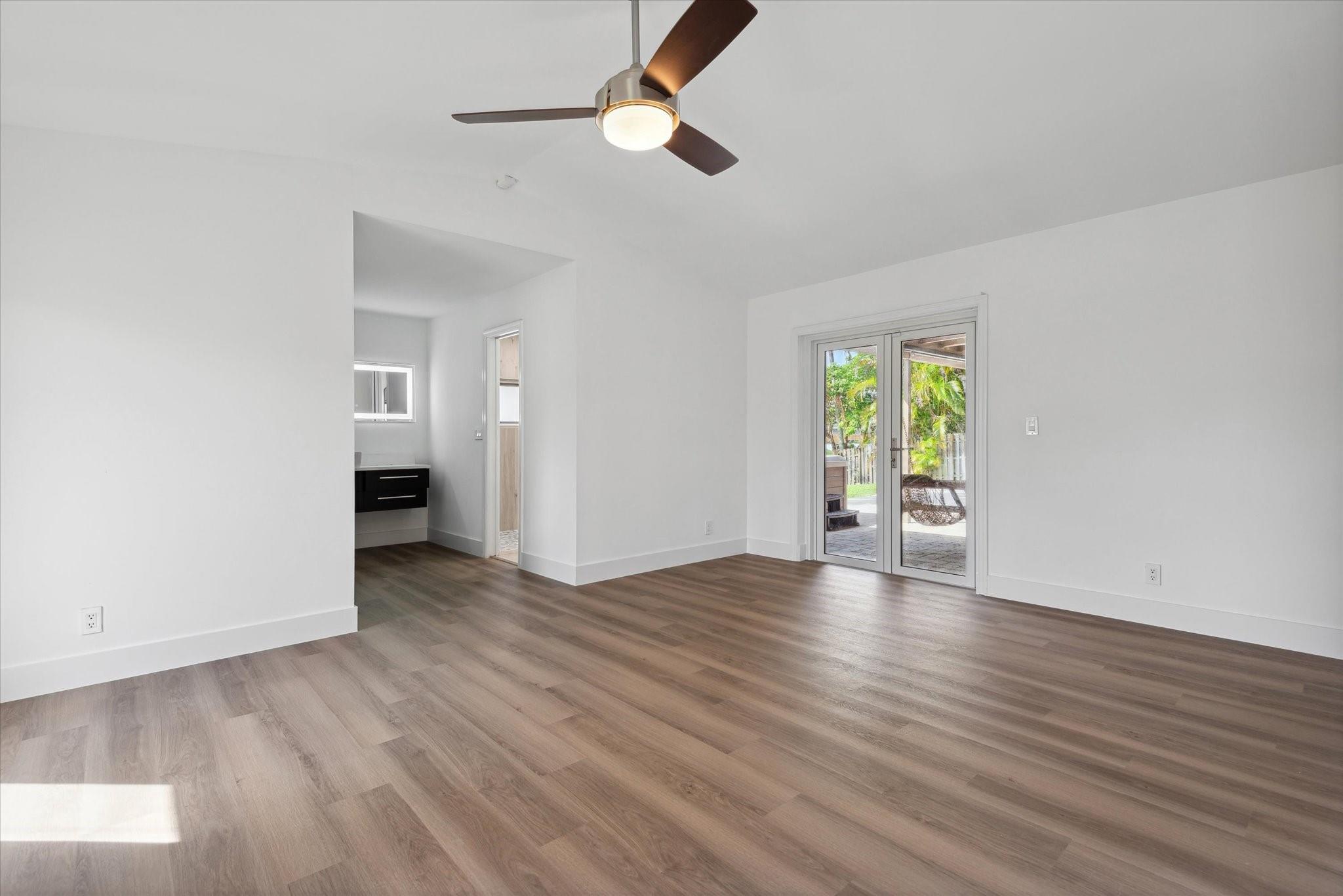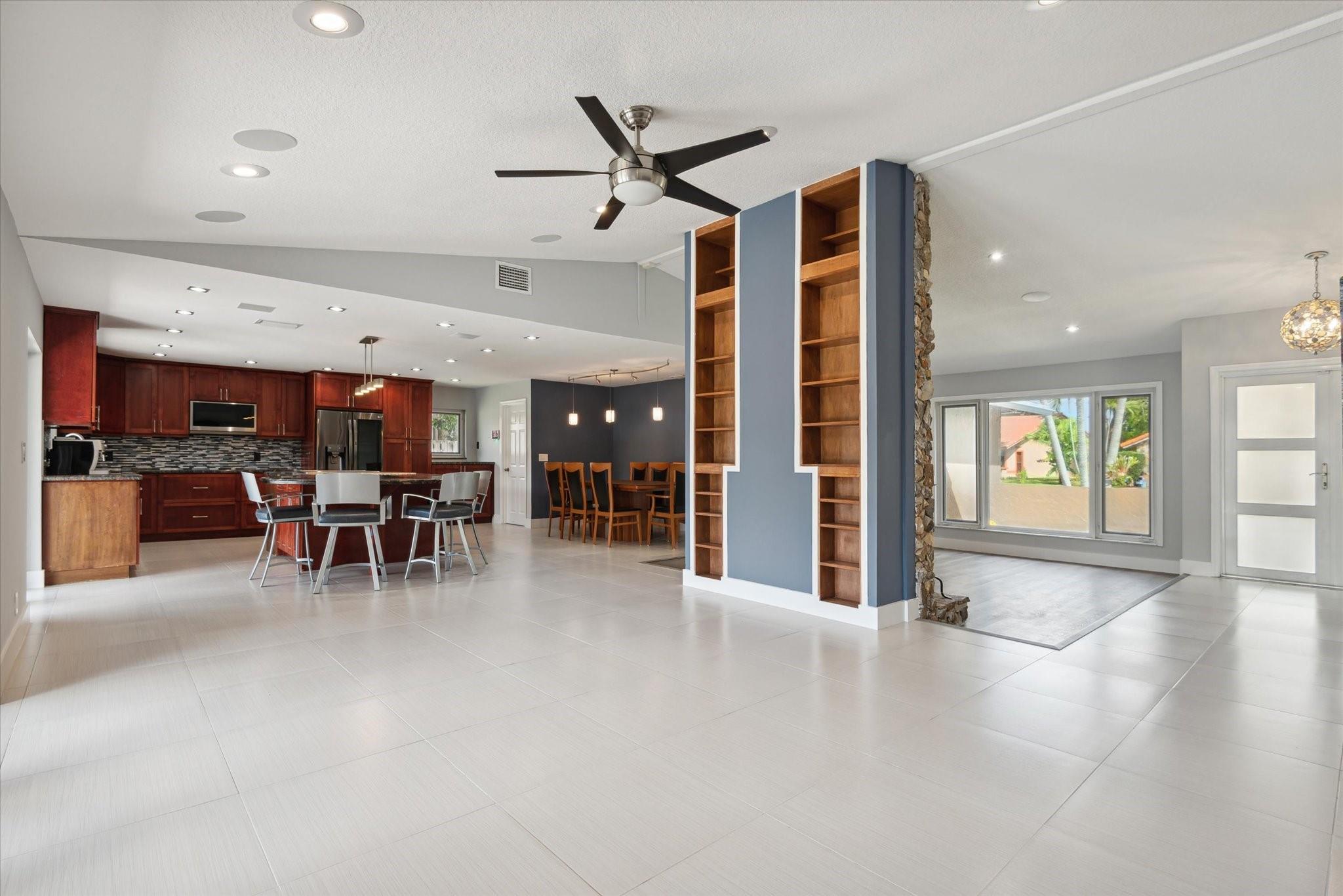 Just listed in Jacaranda Lakes is this updated and move in condition 4BR, 2 Bath home on a lg. interior waterfront lot with a hot tub! Beautiful open floor plan upon entry is great for entertaining. Vaulted ceilings and wood burning fireplace in formal living room open to dining room. New vinyl wood floors in bedroom foyer, all bedrooms & living room. The remainder of the home is tiled! Extra-large granite island in kitchen easily seats four people with induction range & double ovens (drawer under oven is second oven), microwave, and water filtration system at kitchen sink! Top of the line stainless steel appliances including an LG refrigerator. Both bathrooms updated to today's standards! Split A/C in gar. Beautiful yard can easily fit a pool & swing set. Hookup for generator.