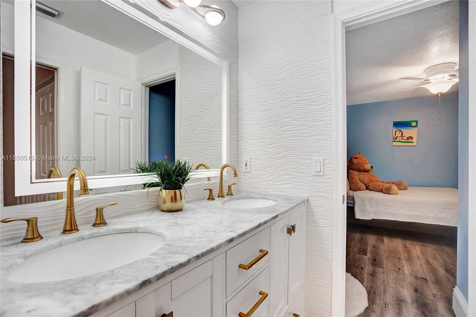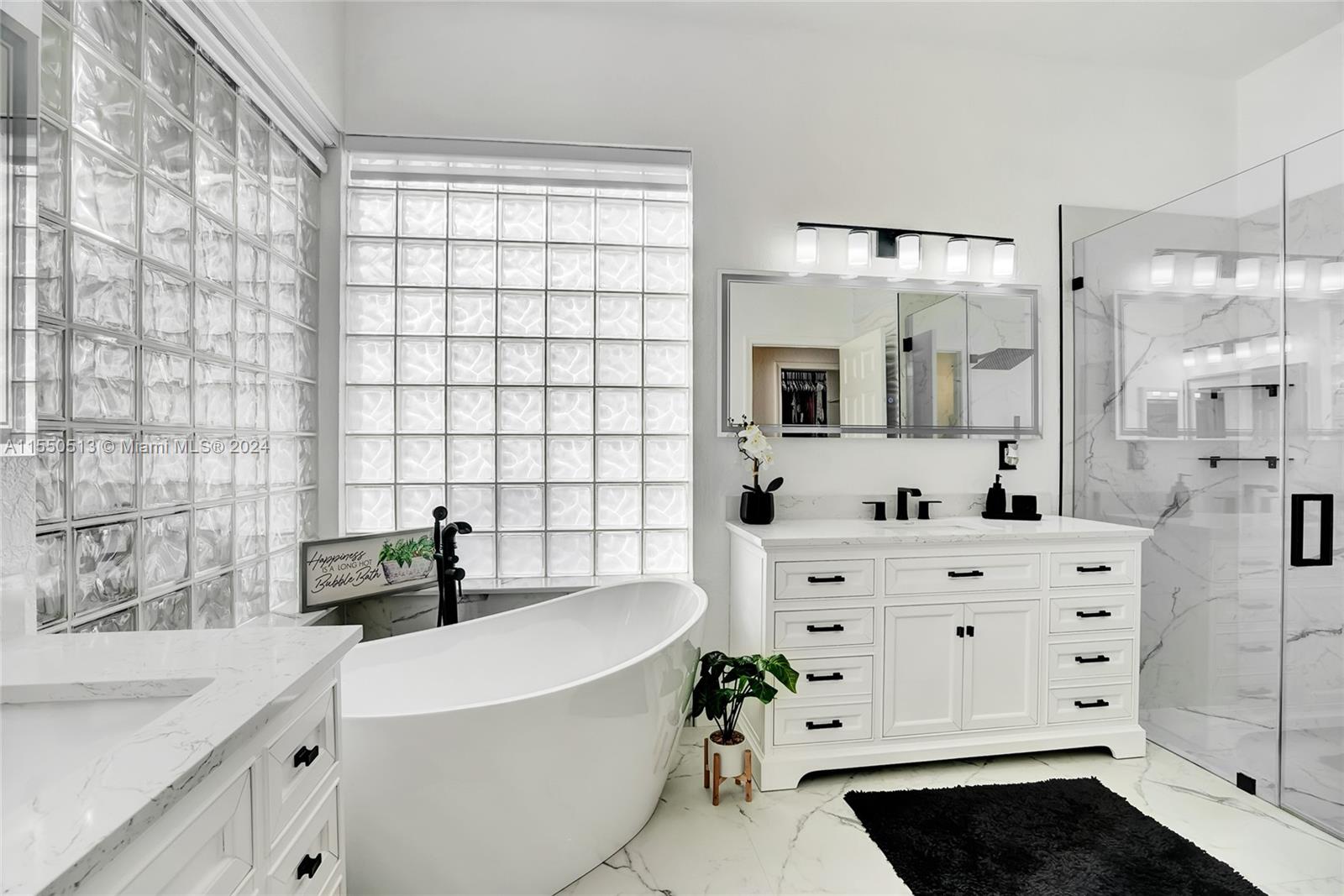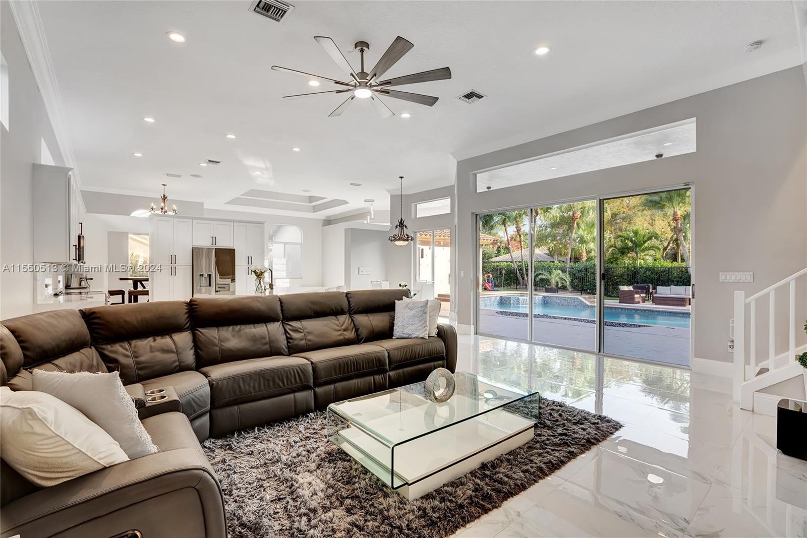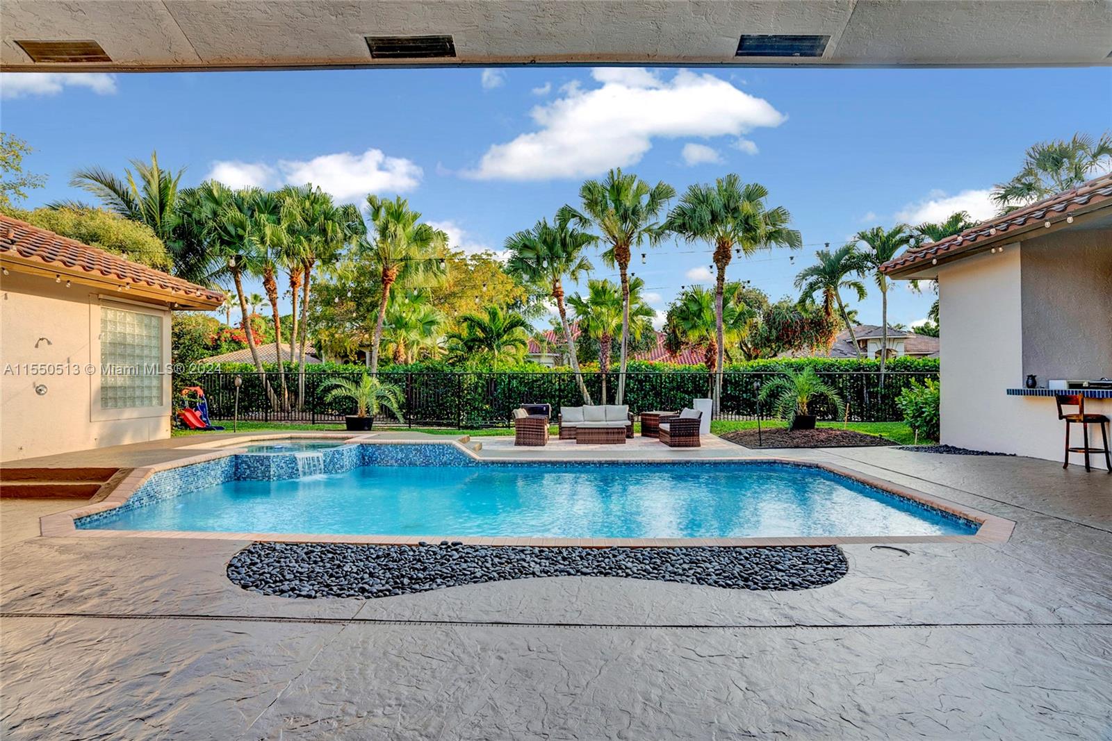 Stunning & upgraded 4/3.5 corner lot courtyard home located in the highly desired gated community of Meadow Run w/ 3 car garage. Enter through your 1st set of double doors & your immediately greeted by the expansive courtyard, pool, outdoor built-in bbq area. Guest quarters w/ full bathroom is separated towards the front of the home. Indoor/Outdoor living w/ sliders lining all living areas of the home. Upgraded porcelain floors throughout + vinyl wood in all bedrooms. Gorgeous kitchen w/ waterfall quartz island. Primary located downstairs w/ built out closet & remodeled bathroom w/ soaking tub, dual sinks & glass enclosed shower. Downstairs Laundry & 1/2 bath. Upstairs features large loft, two bedrooms and 3rd bathroom. Gated community. Community Park, tot-lot & Tennis Courts & much more!
