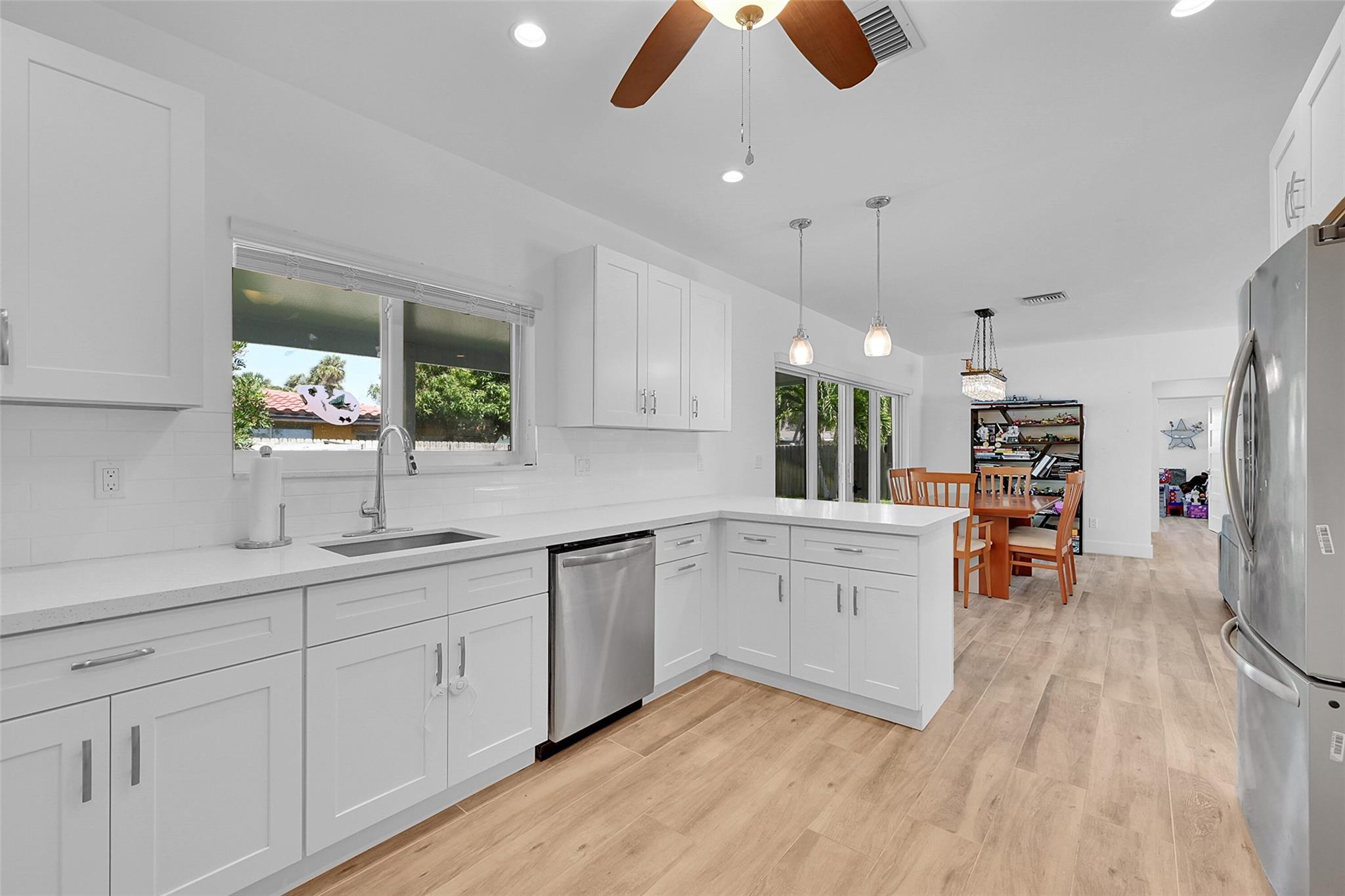 BEAUTIFULLY REMODELED 2 BED / 2 BATH HOME IN MUCH SOUGHT AFTER POMPANO BEACH ESTATE NEIGHBORHOOD, WITHIN WALKING DISTANCE TO THE BEACH AND ALL THAT POMPANO'S REDEVELOPED BEACHFRONT HAS TO OFFER. IMPACT DOORS AND WINDOWS THROUGHOUT, OVERSIZED 1 CAR GARAGE W/ LAUNDRY, OPEN FLOOR PLAN KITCHEN, DINING AND LIVING, NATURAL LIGHTING THROUGHOUT, LARGE BACKYARD W/ ROOM FOR A POOL. COVERED PATIO AREA PERFECT FOR AN OUTDOOR KITCHEN. ALL UPGRADES AND APPLIANCES DONE WITHIN THE PAST FOUR YEARS. THIS HOME IS PRACTICALLY BRAND NEW.