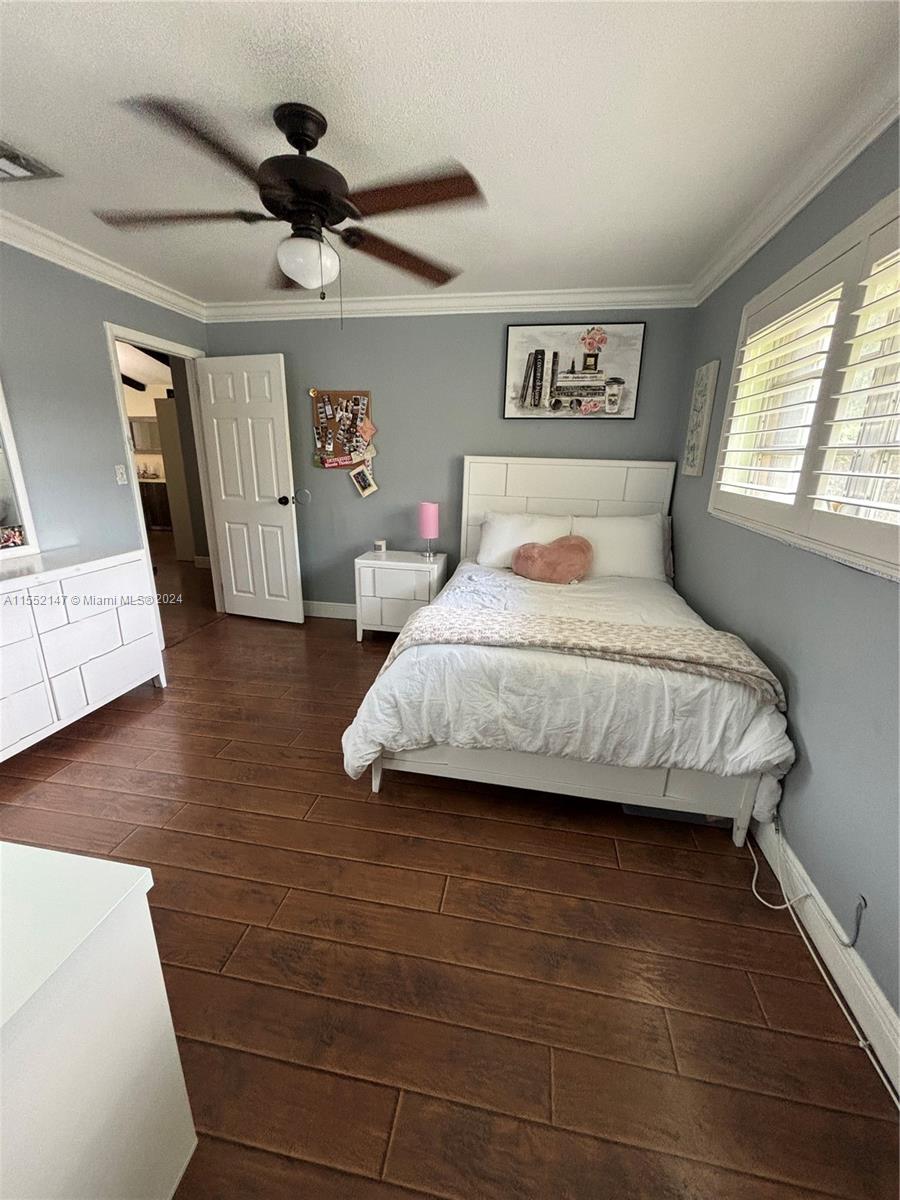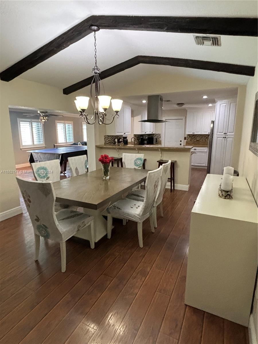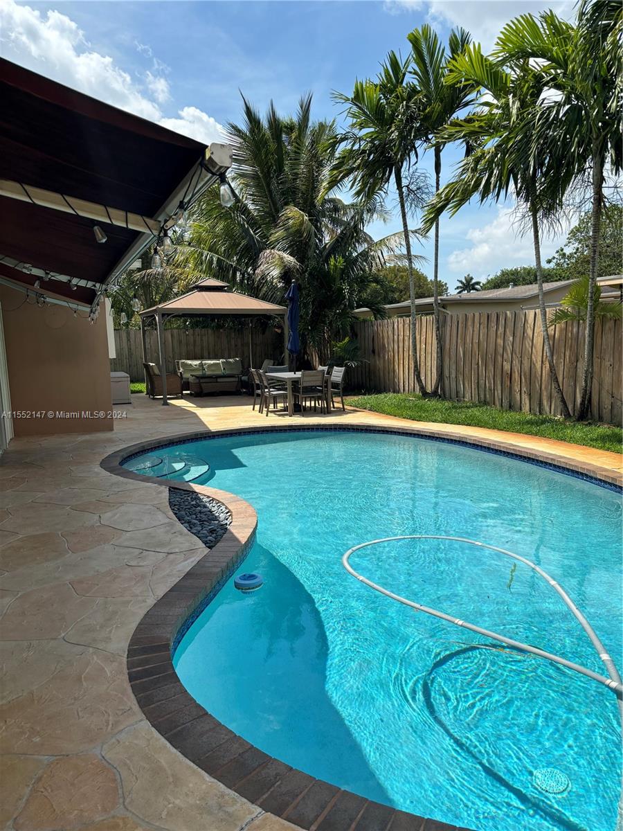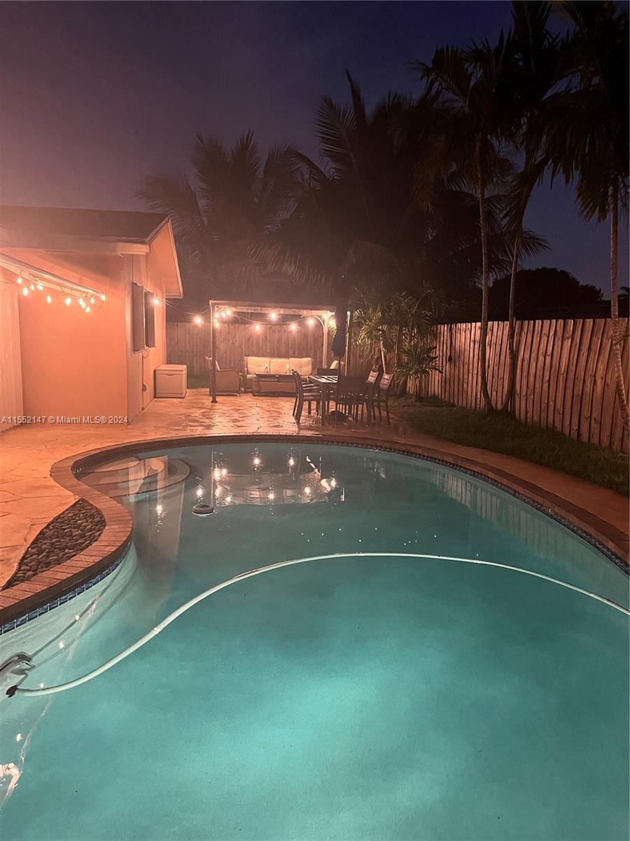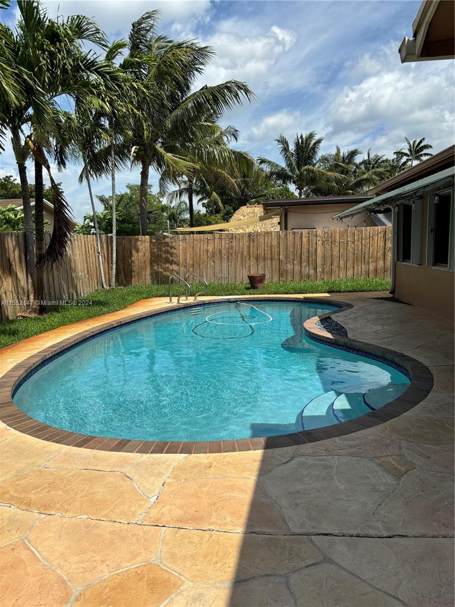 Beautiful 4/2 pool home with 1 car garage with oversized family room that looks out to pool area. Amazing kitchen with white wood cabinets, granite counters, and stainless appliances. All laminate wood floors except for bathrooms with tile. All bedrooms with walk in closets and updated bathrooms with glass shower doors. House has natural gas with gas water heater and dryer. Brick paver circular drive and plantation shutters on all interior windows. Hurricane proof front and garage door. Hurricane windows on front windows of house and accordion shutters to all other exterior windows. New pool pump and vacuum 2023, new wall unit a/c in oversized family room 2020. Fenced yard with maintained sprinkler system. Located close to schools, shopping, parks and major highways.