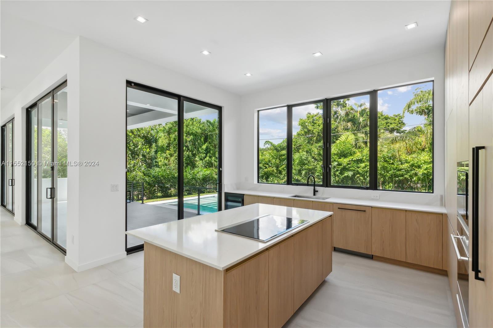 Modern 3 Story Pool Home with Roof Top Terrace. 5 beds & 6 baths plus upstairs sitting area/den/office/6th bedroom. 2 car garage with high ceilingst. Located across the street from bay front homes! 1st and 2nd floors are solid concrete. Open floor plan with soaring high ceilings, impact/hurricane rated 10ft floor to ceiling glass. Top of the line appliances. Primary bedroom features huge balcony overlooking the pool. All new pool with LED lighting. Located in 24 hr guard gated Islands of Keystone Point, Miami, Florida.