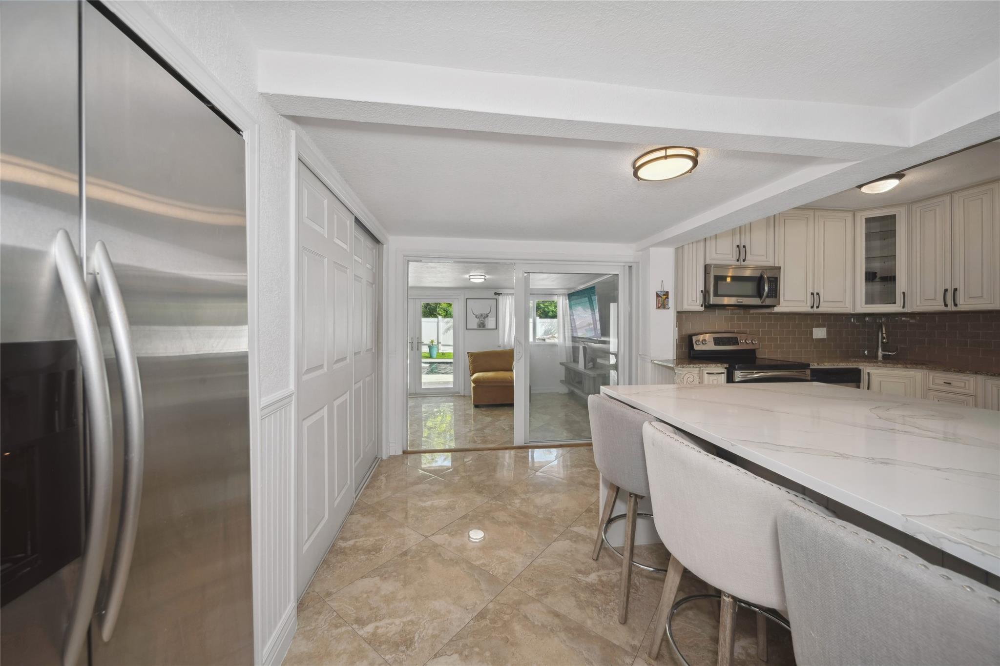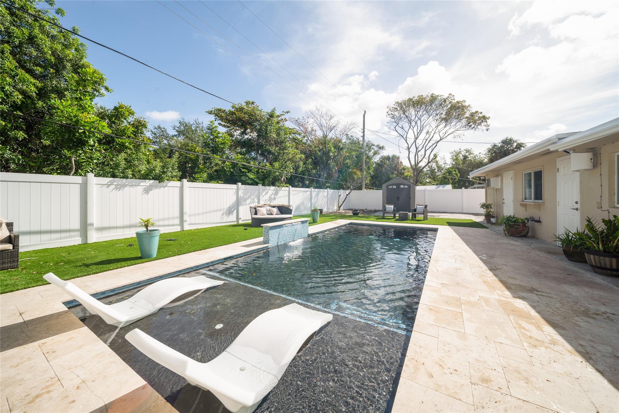 Great 1st Time Buyer or Investor Property. Income Generating. New impact windows & doors. New 23 panel solar system. New remodeled master bath. Remodeled Kitchen w/ waterfall feature/storage. New hurricane resistant privacy fence. New 12x30 lagoon style charcoal salt water pool w/ 6' Sun Deck & 3' waterfall feature. New Variable Speed pool pump. New Air Jet Blower for pool bar seating. New Pool Cleaner. New 700sf Travertine Pool Deck. New 1,100sf premium turf back yard. Gated side yard for extra vehicles, personal watercraft/boat, RV, Jetski or motorcycles. Attached income generating 1 bed/1 bath (studio style) w/ nice appliances, refrigerator w/ induction burner (no stove). Studio currently leased 01/01/24-12/31/24 @ $1,250.00 monthly. Studio unit could be re-listed at $1,500.00 monthly.
