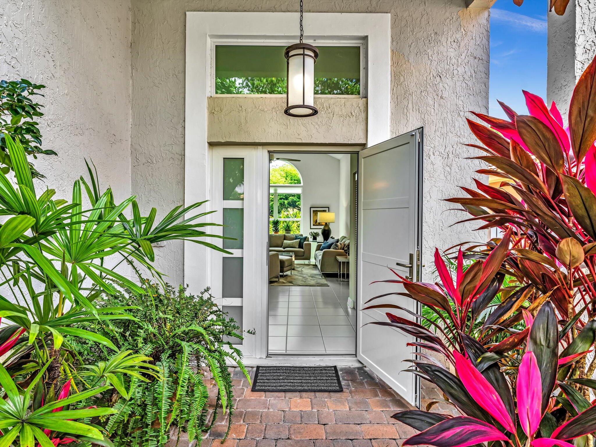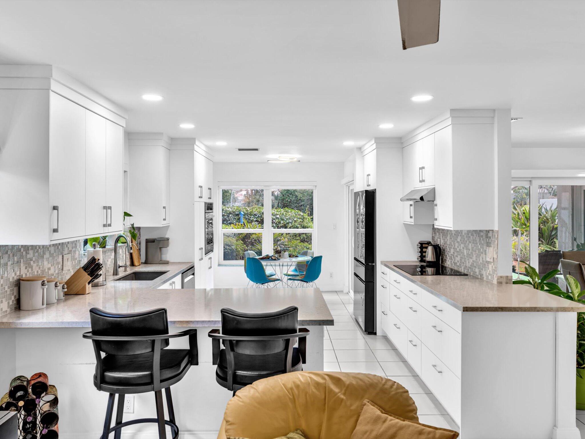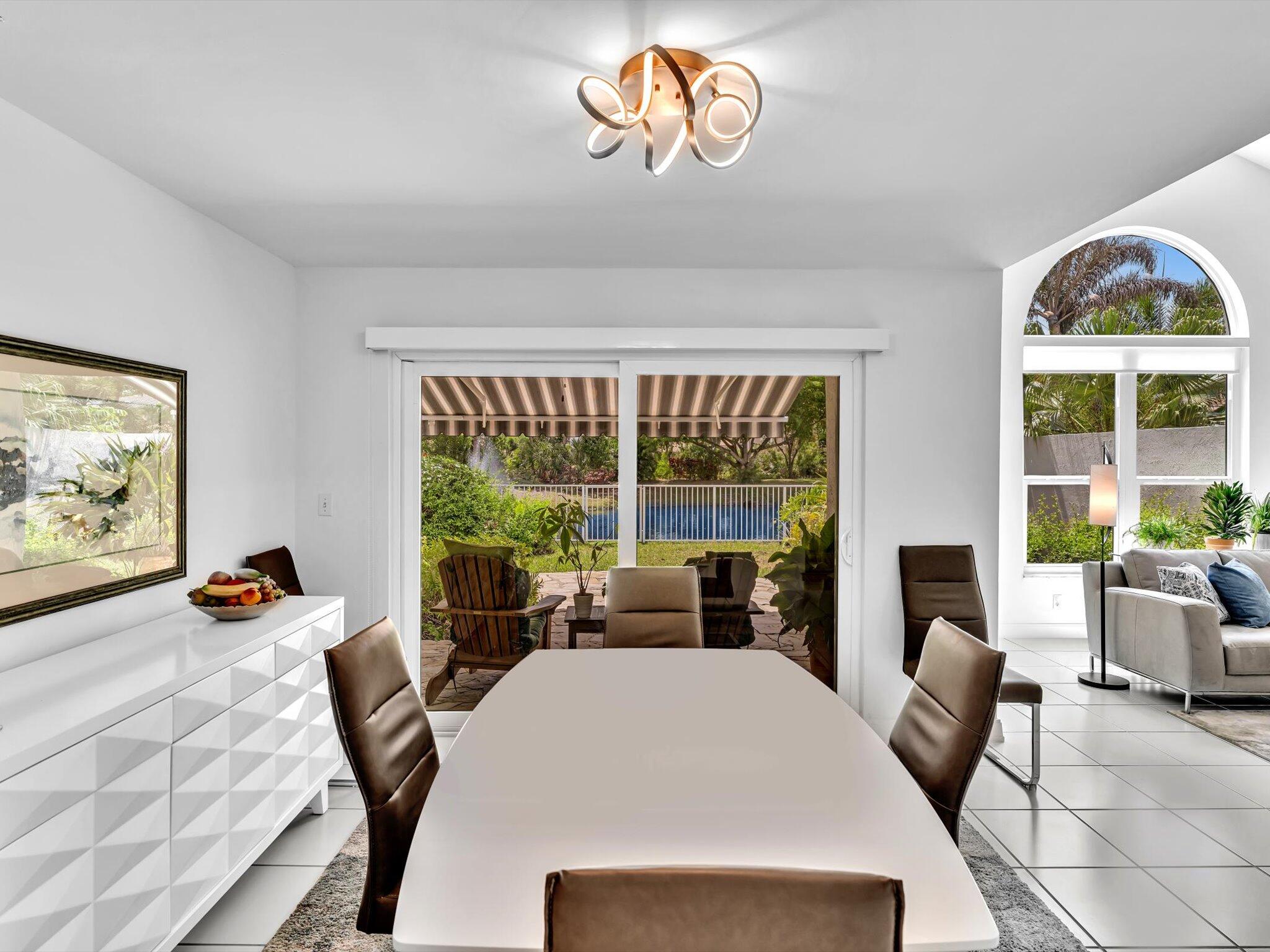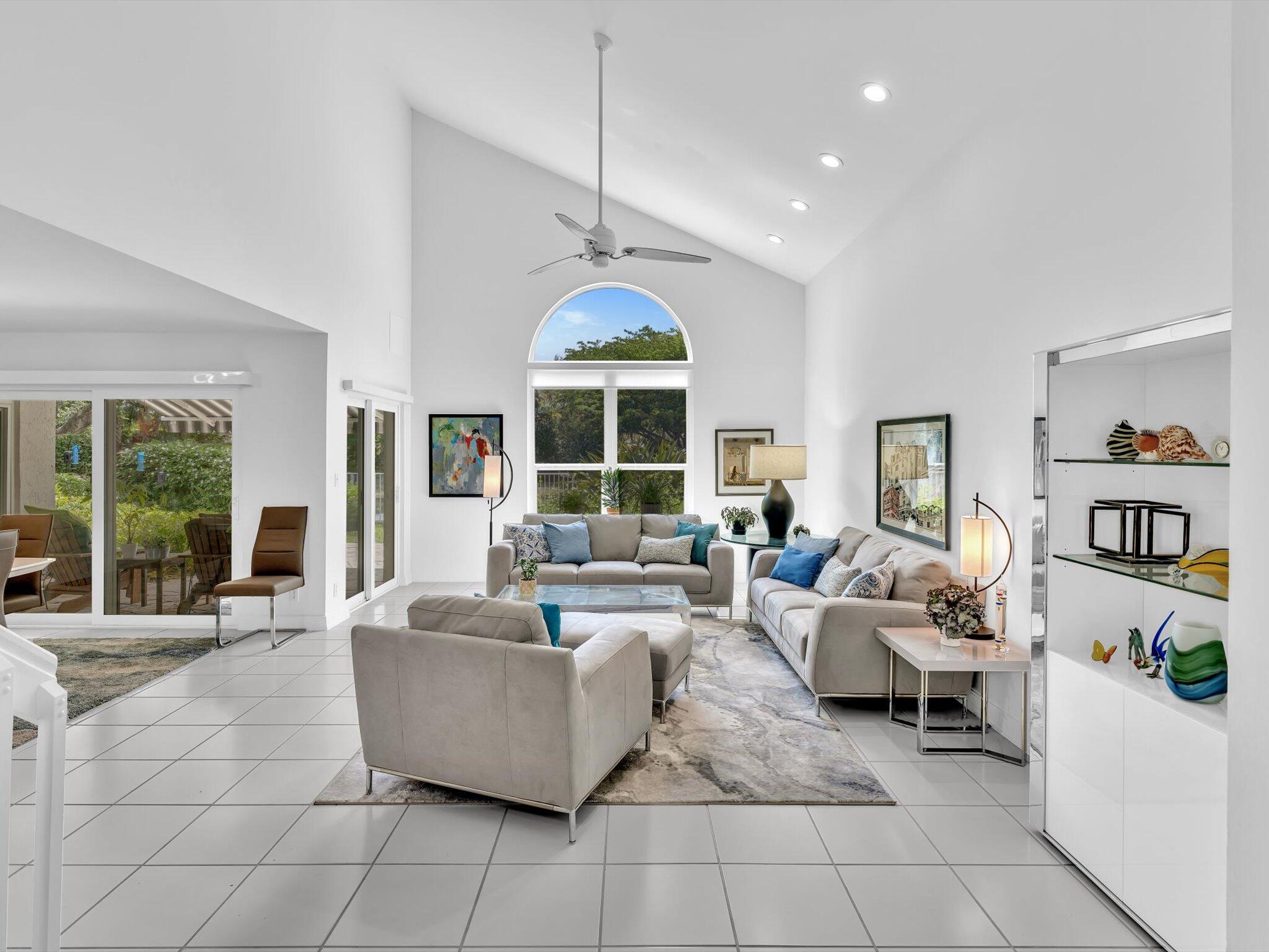 Step into luxury as you stroll along the curved paver walkway leading to the modern front door of this exceptional estate nestled in Boca Raton. Boasting 4 bedrooms, 2 and 1/2 baths, and over 3,100 total square feet, this rare find is designed for modern living.The heart of the home, the kitchen, underwent a stunning remodel in 2023 featuring 42'' white cabinetry, marble countertops, and top-of-the-line appliances. Enjoy meals in the charming breakfast area overlooking the serene lake or in the spacious dining area adjoining the 2-story living room.Throughout the home, white ceramic tiles and laminate flooring offer elegance and easy maintenance. Sunshades and Plantation Shutters adorn the Impact Windows, enhancing energy efficiency and aesthetic appeal.