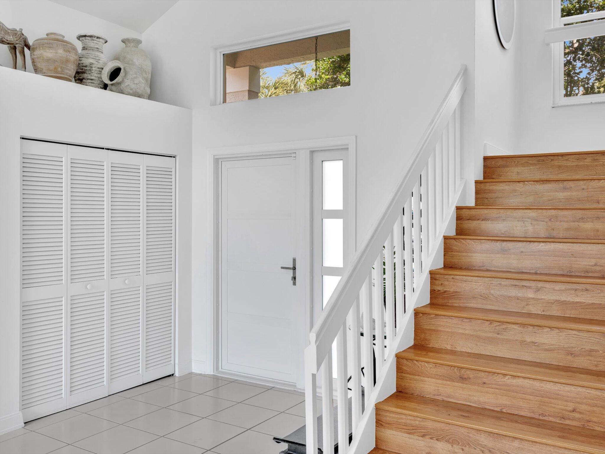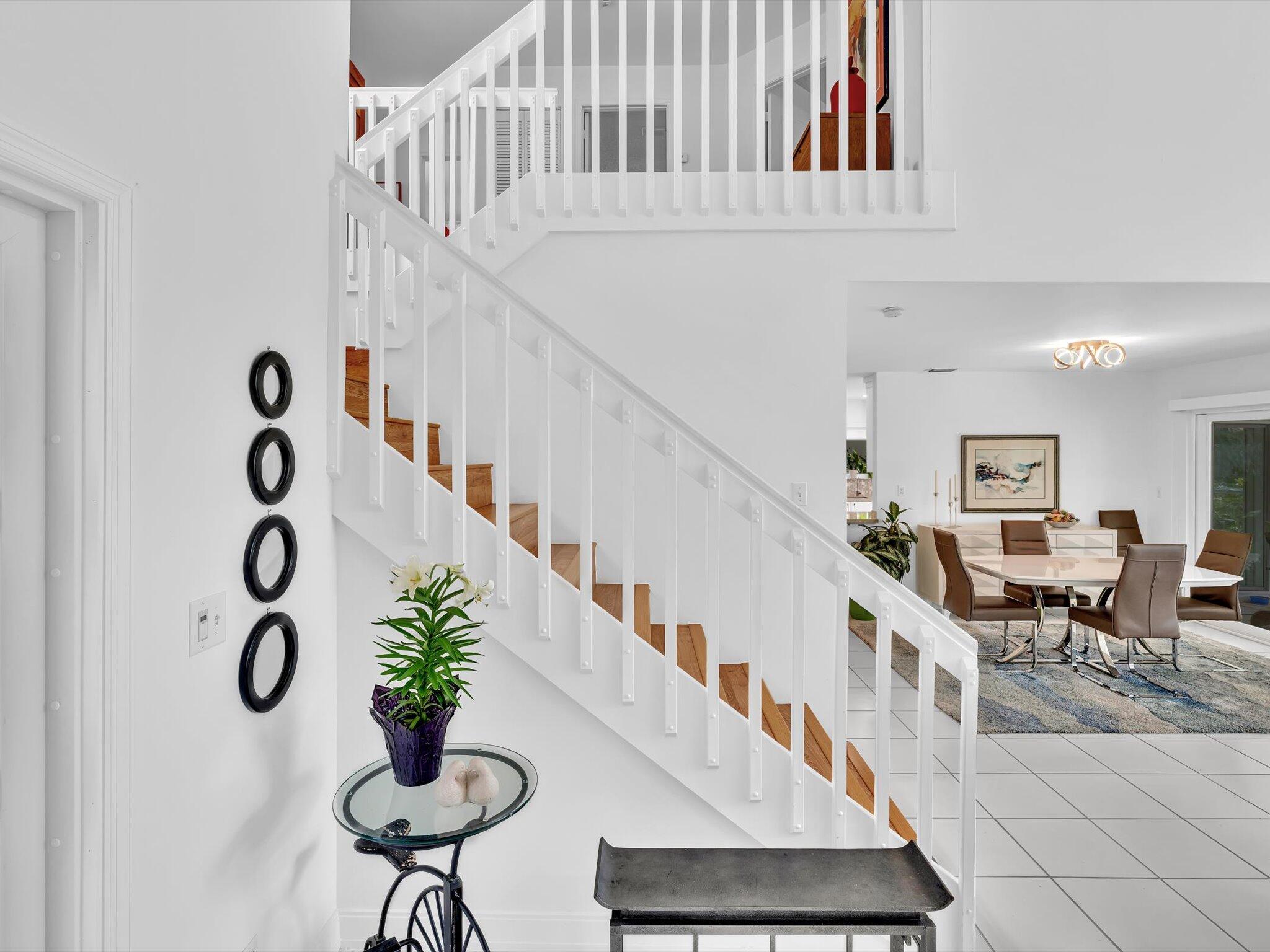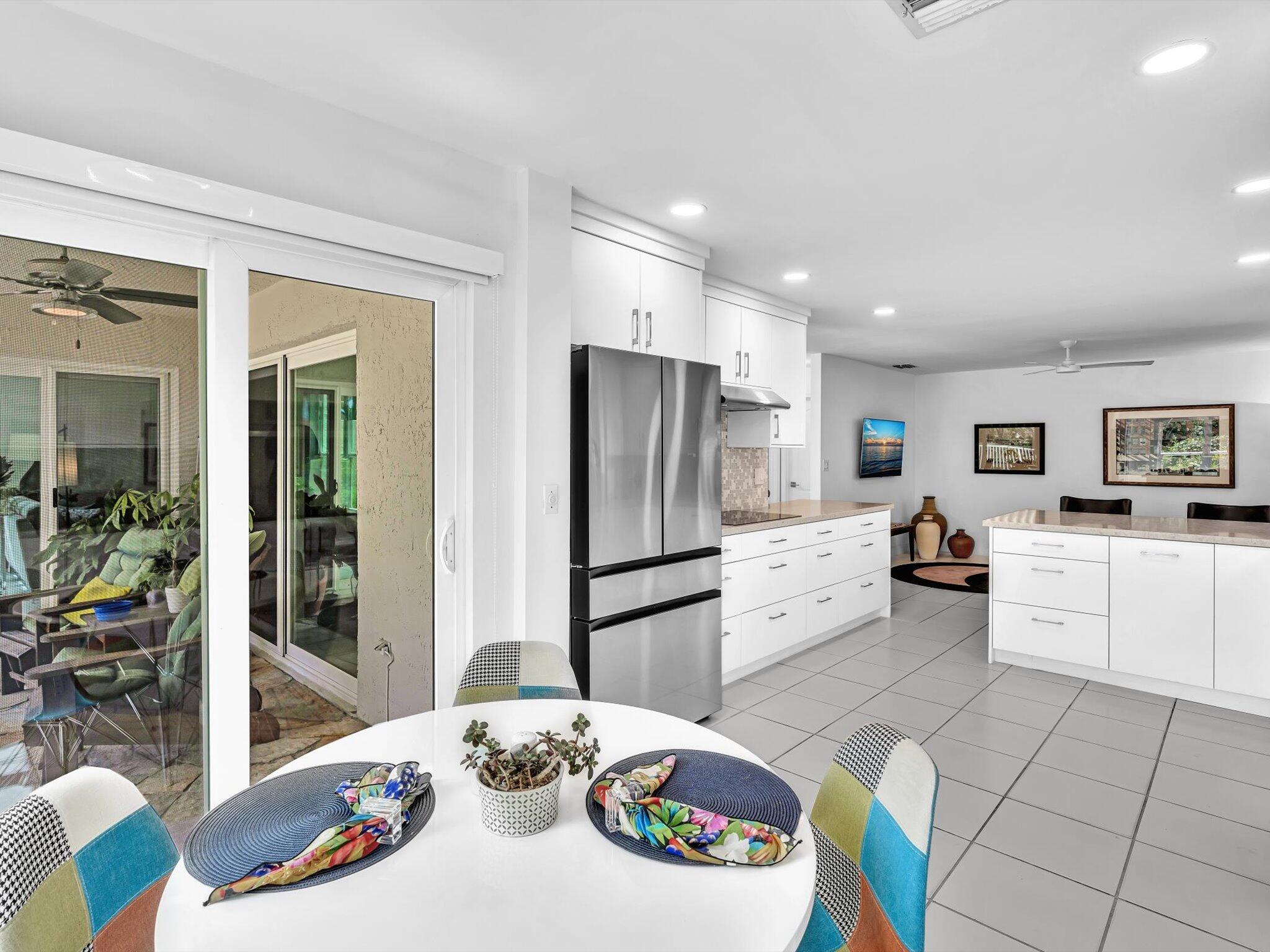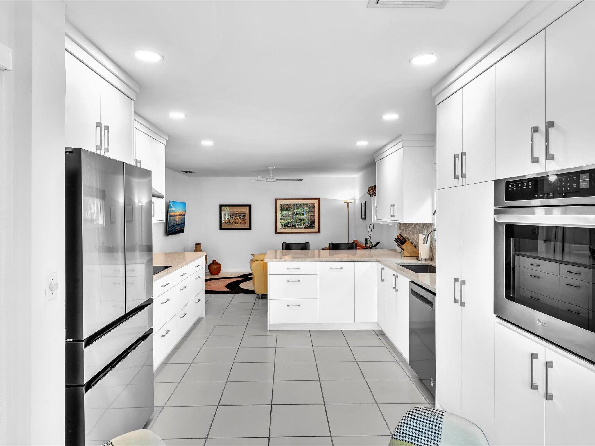 Step into luxury as you stroll along the curved paver walkway leading to the modern front door of this exceptional estate nestled in Boca Raton. Boasting 4 bedrooms, 2 and 1/2 baths, and over 3,100 total square feet, this rare find is designed for modern living.The heart of the home, the kitchen, underwent a stunning remodel in 2023 featuring 42'' white cabinetry, marble countertops, and top-of-the-line appliances. Enjoy meals in the charming breakfast area overlooking the serene lake or in the spacious dining area adjoining the 2-story living room.Throughout the home, white ceramic tiles and laminate flooring offer elegance and easy maintenance. Sunshades and Plantation Shutters adorn the Impact Windows, enhancing energy efficiency and aesthetic appeal.