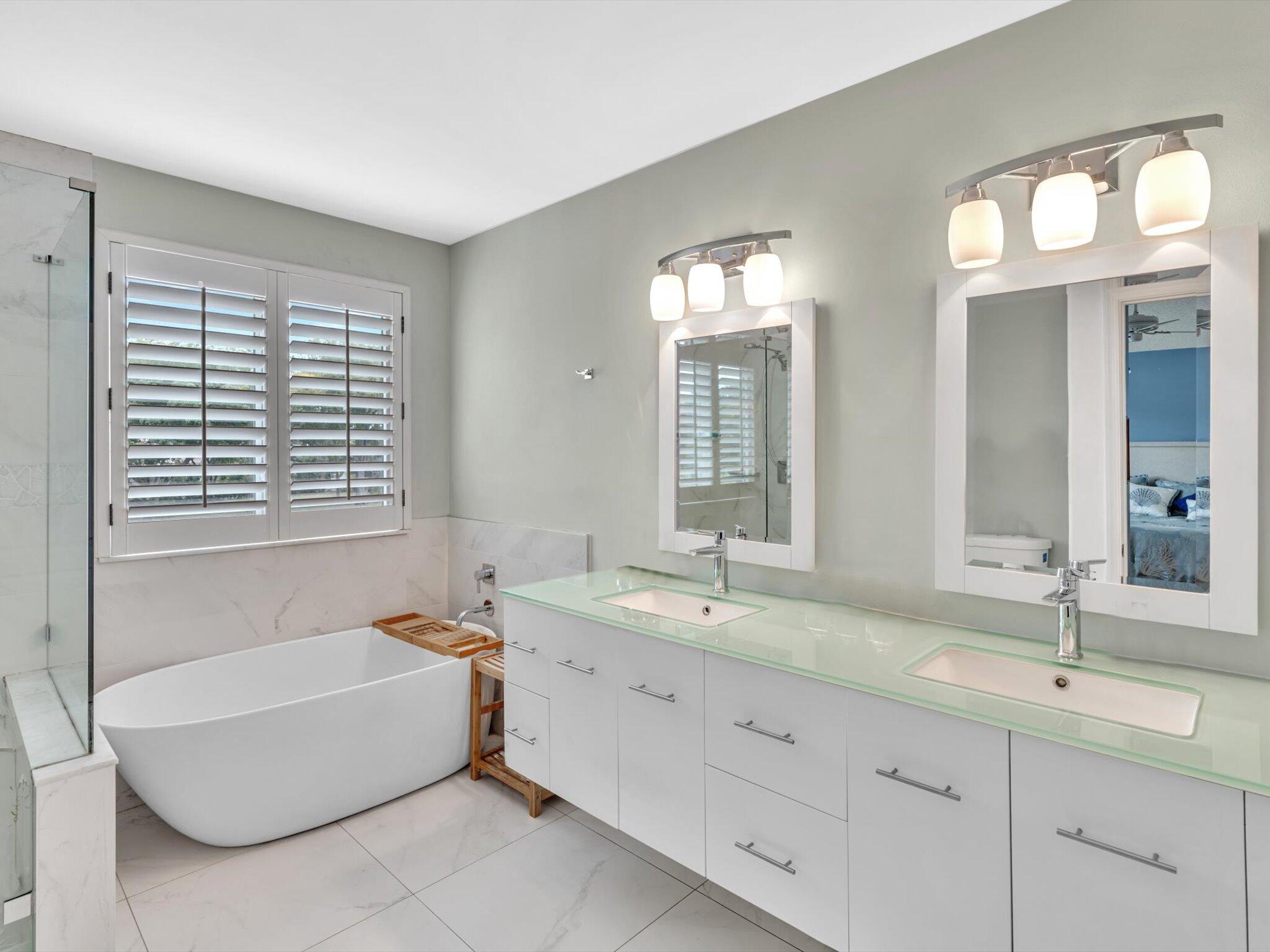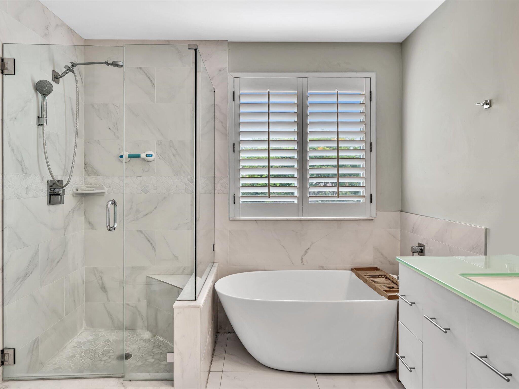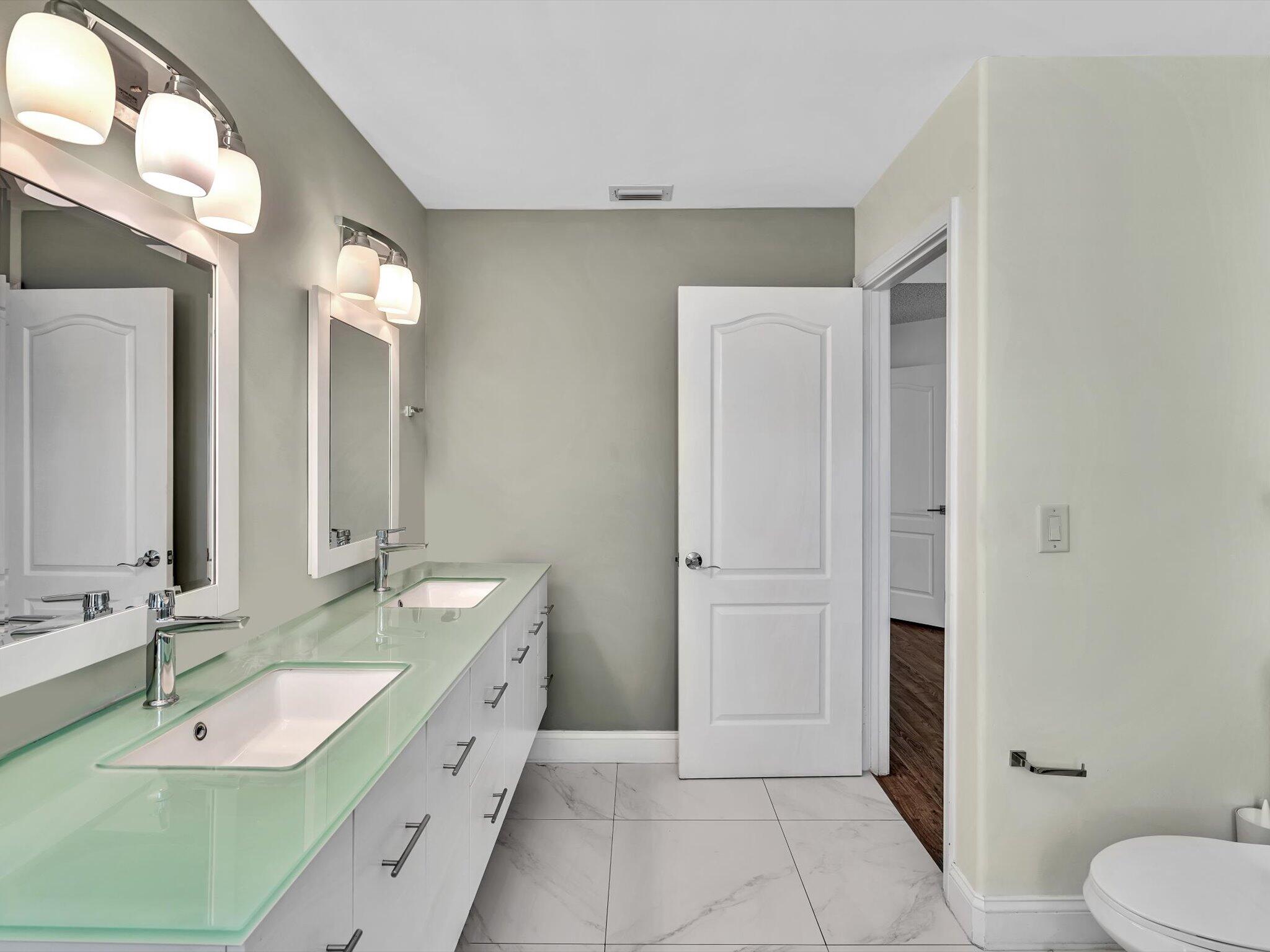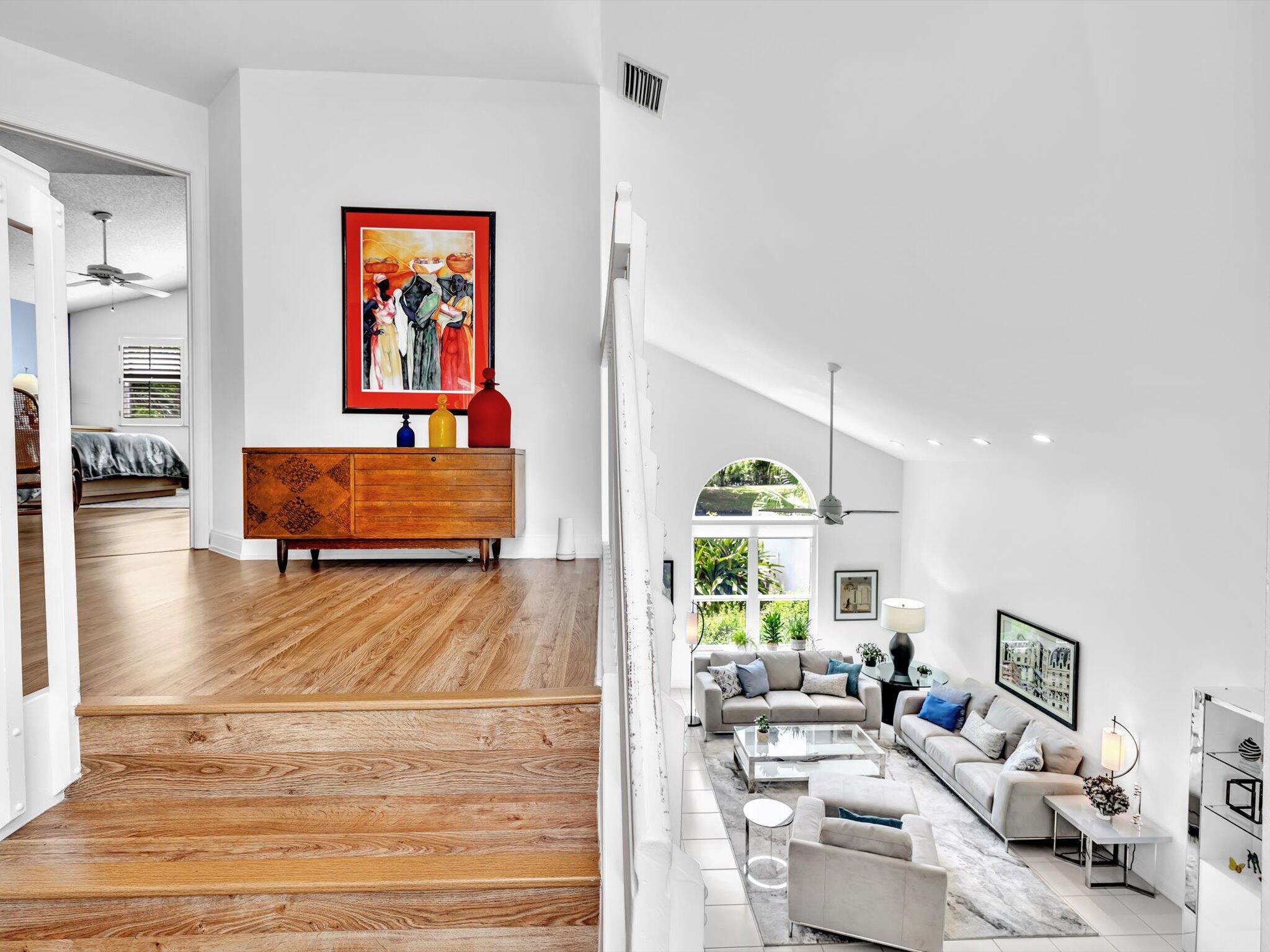 Step into luxury as you stroll along the curved paver walkway leading to the modern front door of this exceptional estate nestled in Boca Raton. Boasting 4 bedrooms, 2 and 1/2 baths, and over 3,100 total square feet, this rare find is designed for modern living.The heart of the home, the kitchen, underwent a stunning remodel in 2023 featuring 42'' white cabinetry, marble countertops, and top-of-the-line appliances. Enjoy meals in the charming breakfast area overlooking the serene lake or in the spacious dining area adjoining the 2-story living room.Throughout the home, white ceramic tiles and laminate flooring offer elegance and easy maintenance. Sunshades and Plantation Shutters adorn the Impact Windows, enhancing energy efficiency and aesthetic appeal.