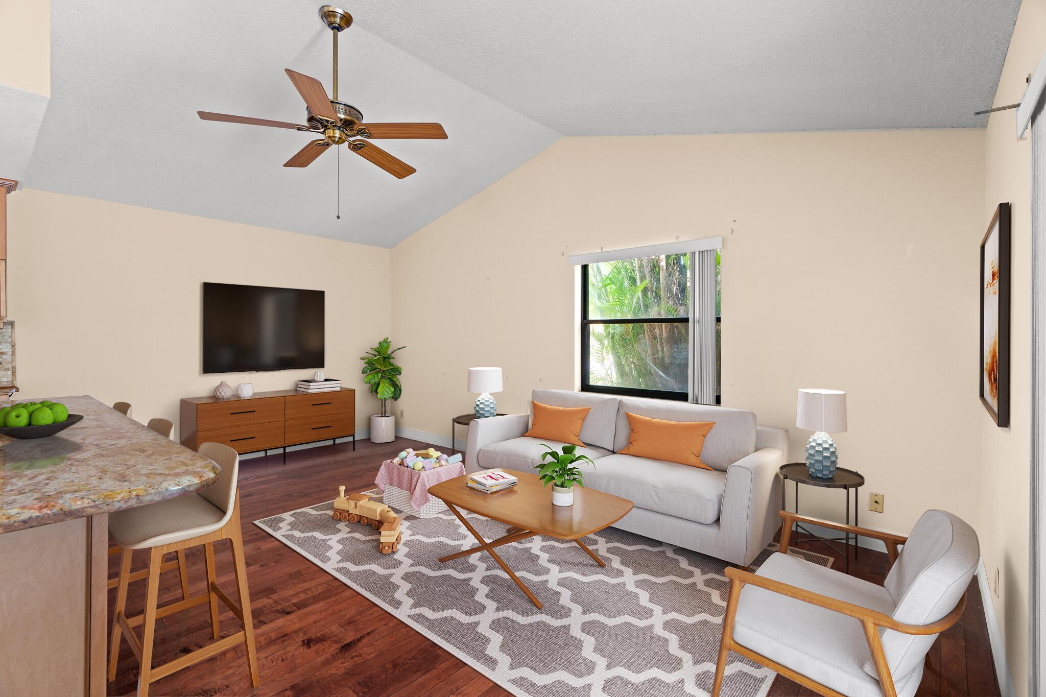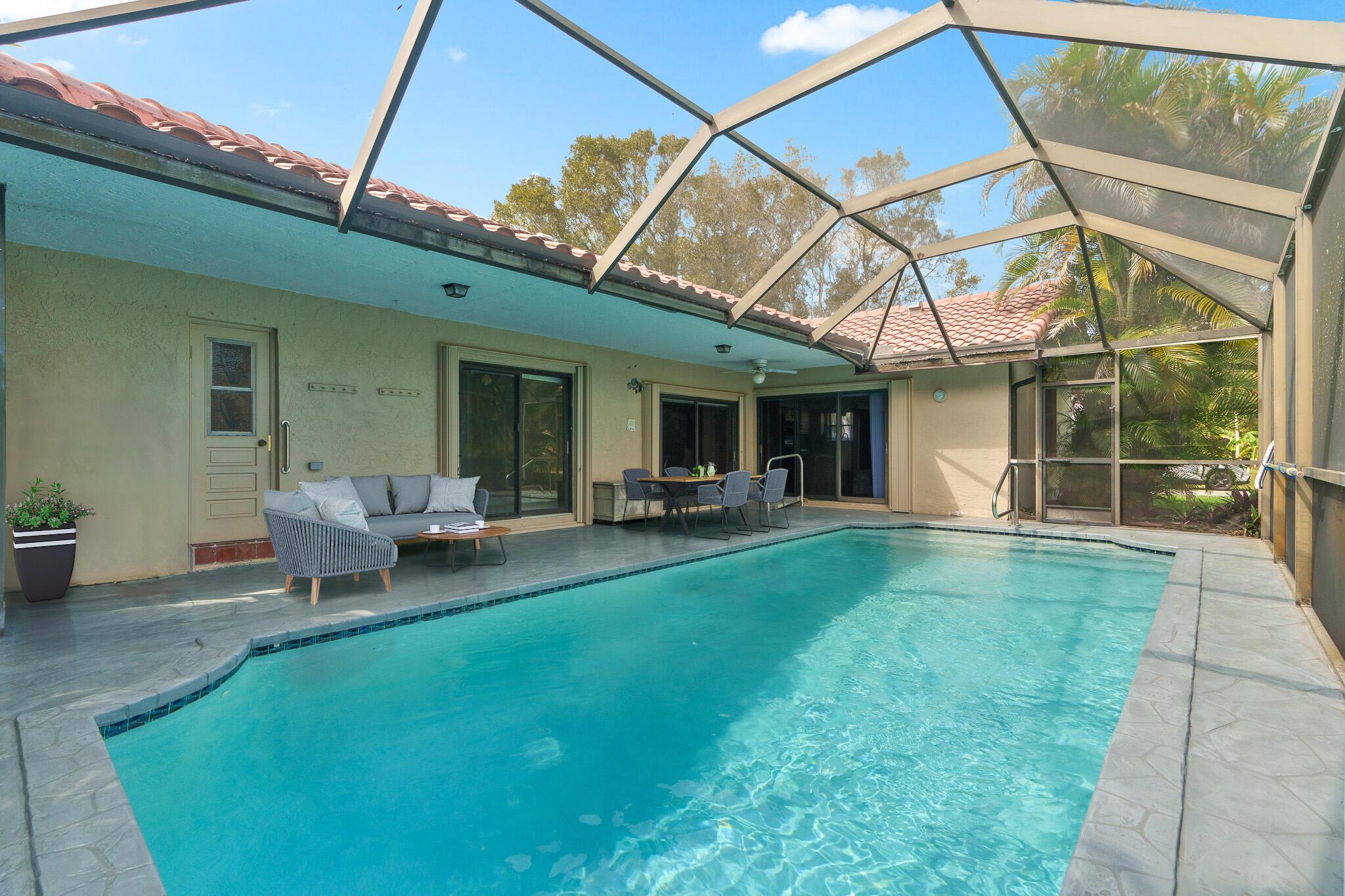 Charming Coral Springs Single-Family pool-home nestled on a corner lot in The Crossings. Boasting 3 bedrooms and 2 bathrooms (+a possible 4th room conversion). Enter the spacious open foyer leading to a formal living area and dining room, perfect for entertaining guests. Airy vaulted ceilings. The kitchen space is a chef's delight, showcasing granite counters, marble backsplash, 42in wood cabinets & a convenient cooking island connecting to the family room. Hardwood floors in the home's main areas. Renovated master bathroom. The backyard offers a screened-in pool and a 35-foot covered lanai, ideal for outdoor gatherings as well as lots of grass area for kids or dogs to enjoy. Other updates; 2021 AC unit, 2017 water heater, Hurricane accordion shutters, and 2008 roof. LOW HOA only $378/yr.