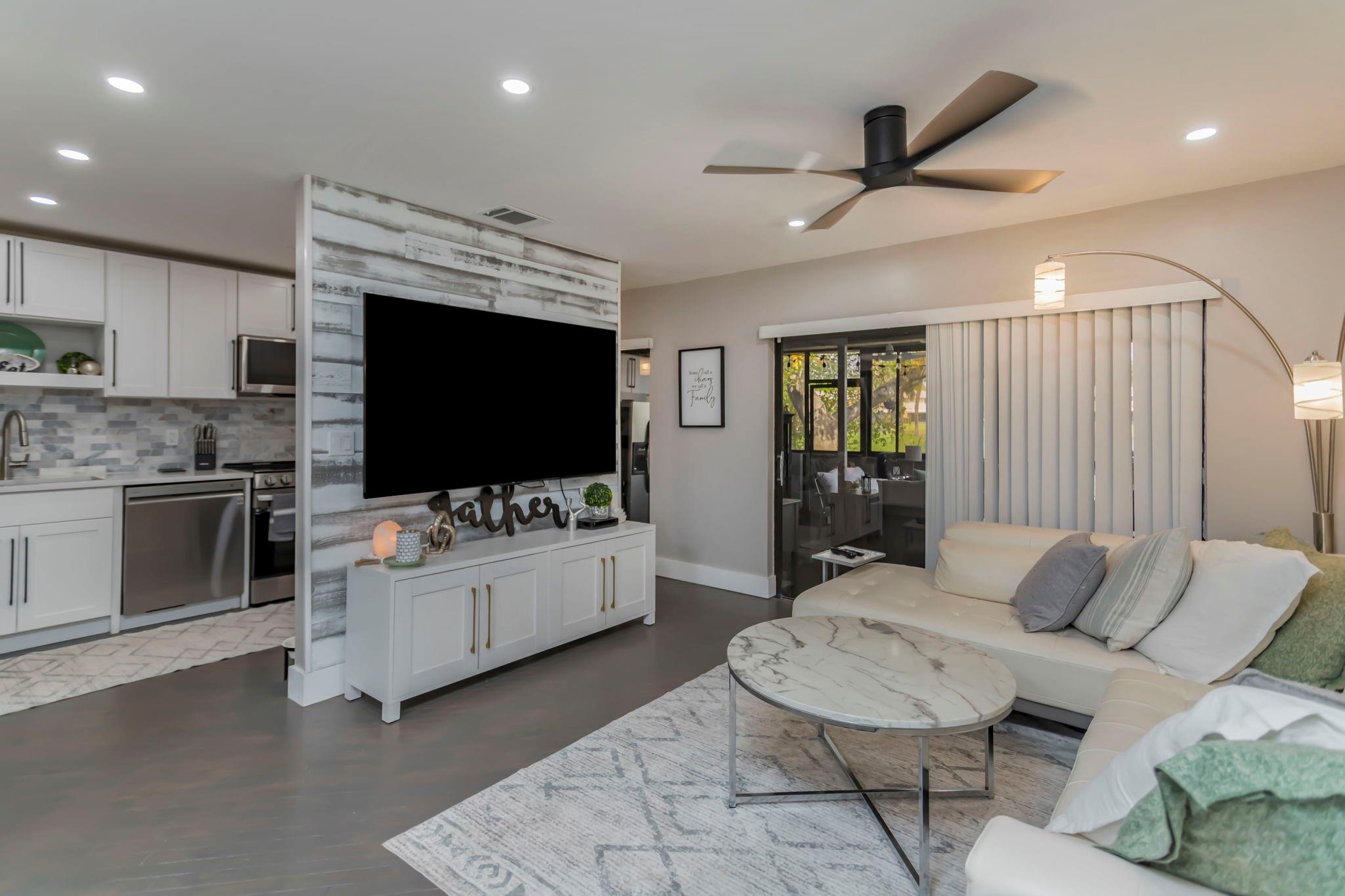 This beautiful townhome has a great location close to everything! As you walk through the door, you’ll find wood floors, modern fixtures, and big windows with water views. The stunning kitchen features stainless appliances, tons of cabinet space, quartz countertops, and a breakfast bar. You’ll spend lots of time on the spacious lanai off the living room, and the back patio nearly touches the water’s edge! Upstairs, the primary has a beautiful ensuite & walk-in closet, while the 2 other bedrooms and bathroom are down the hallway. SouthBridge is a sought-after community with a clubhouse, tennis courts, pool, and playground.
