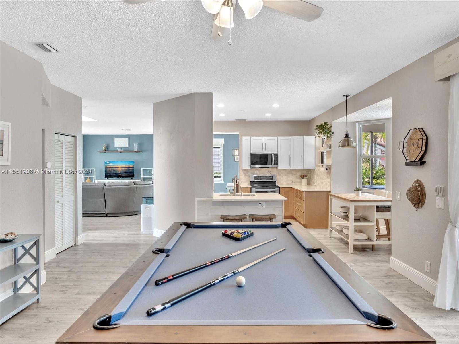 Create memories in this newly updated, coastal chic 4 bed/2.5 bath home nestled on private waterfront lot w/no neighbors behind. Entertain or relax on expansive screened patio accompanied by inviting salt pool surrounded by sprawling fenced yard. Step inside where comfort meets casual sophistication. Kitchen boasts wood cabinets, ss appliances, quartz countertops, snack bar and breakfast nook overlooking generous family rm. Upstairs, retreat to the spacious master bed featuring sitting area and spa-like bathroom complete w/artistic flair. All bathrooms are uniquely updated. Other major improvements include luxury vinyl flooring downstairs, roof 2021, pool resurfaced 2022, impact windows/doors 2021-2023. Guard gated neighborhood w/community pool, play area, soccer field etc. A Must See!