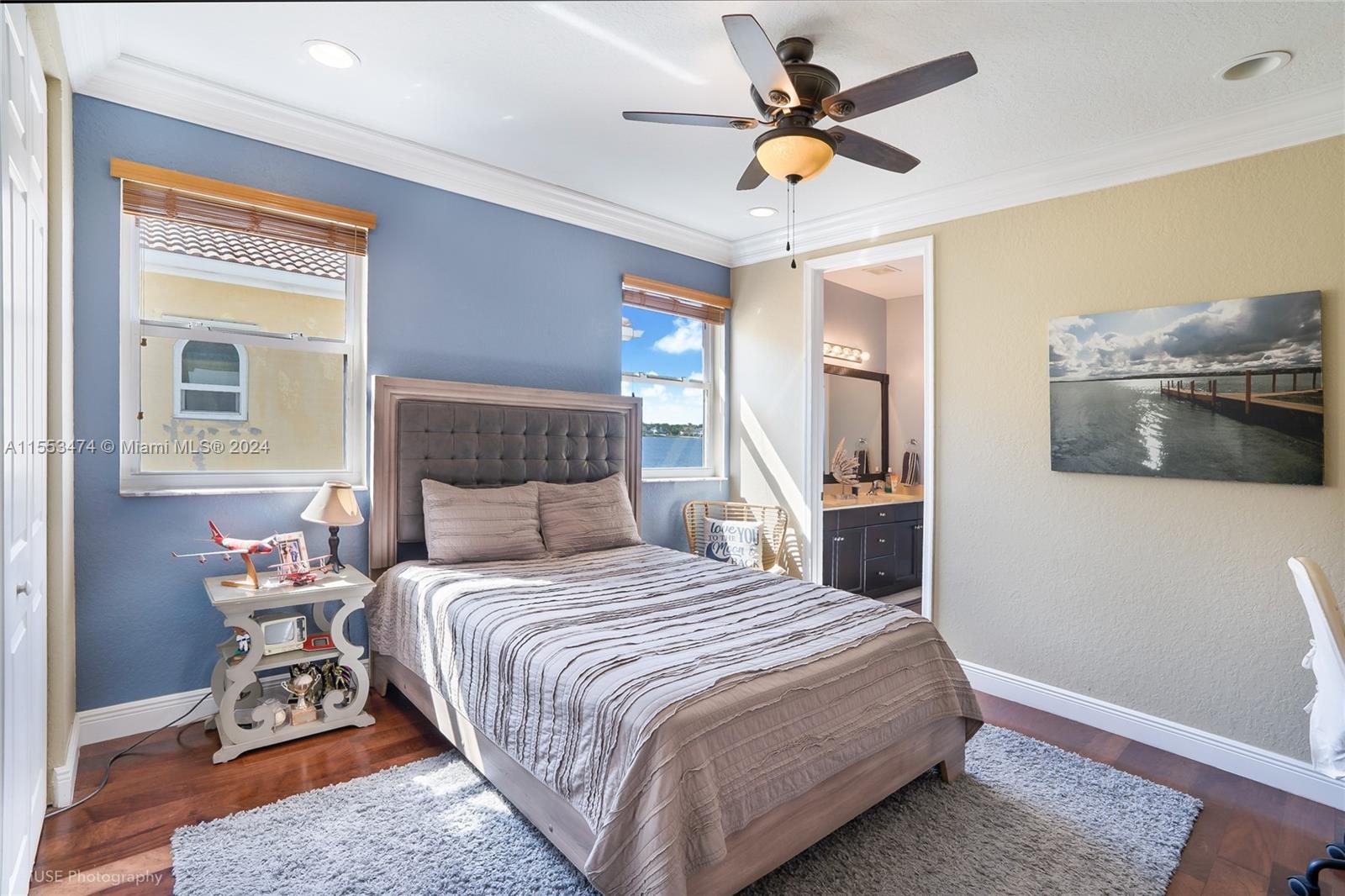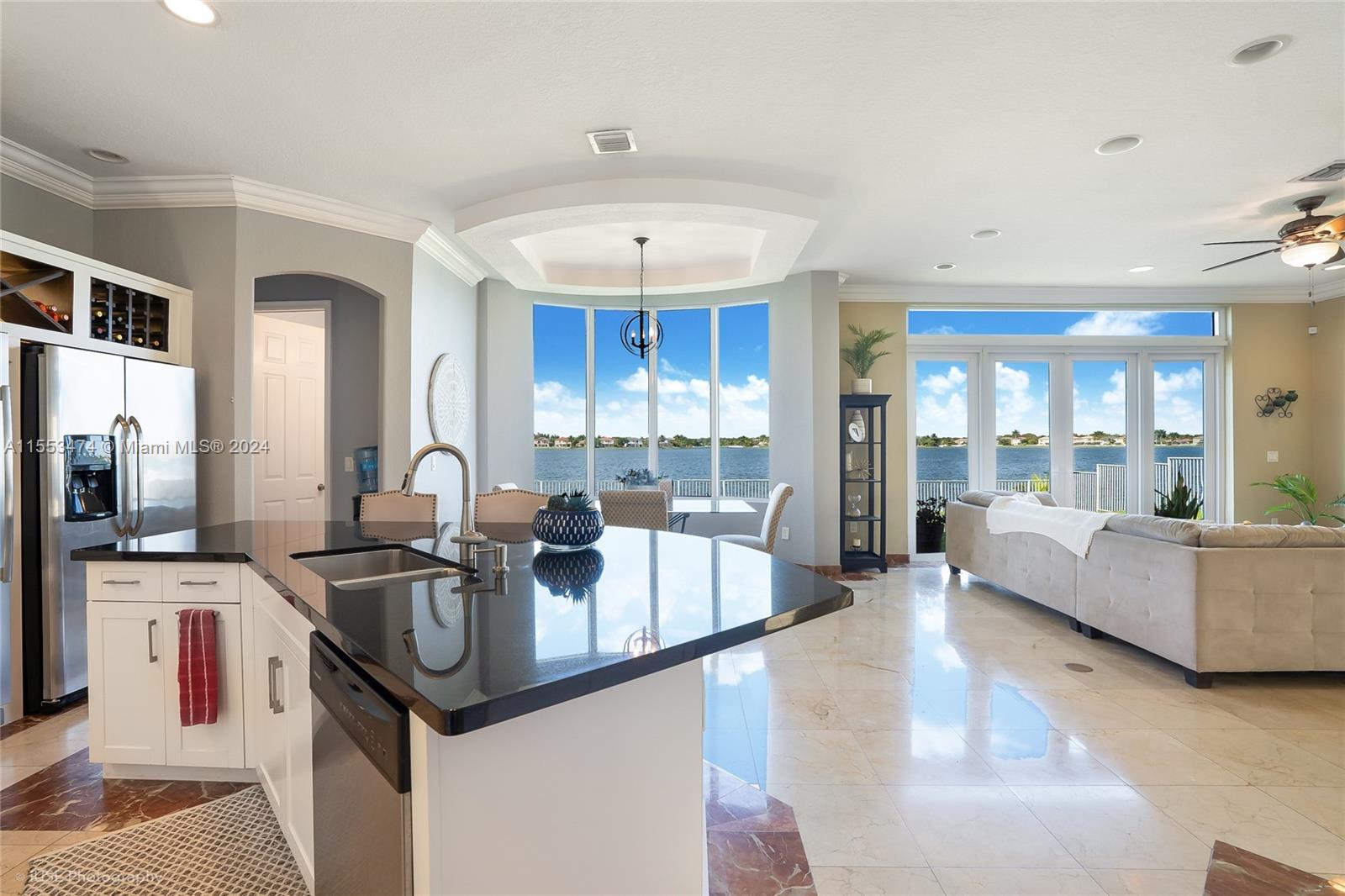 Exclusive waterfront opportunity in the resort, guard gated community of Riviera Isles! This stunning Verona model, 5-bedroom, 5.5-bathroom home with a 3-CAR garage boasts breathtaking wide lake views. New Roof replaced in 2022 with transferable warranty and 2024 New Impact Windows and Doors. This home features an open concept with high double-volume ceilings, providing an airy and spacious feel. The Primary Bedroom has a sitting area, open balcony and huge walk in closet. The gourmet granite kitchen includes plenty of counter space, built-in appliances, and an eat-in kitchen. 1 bedroom and 1 bath on the first floor with 2nd cabana bath. Parking for 6+ cars in driveway. Gym, Tennis, Resort Pool, Clubhouse, 24/7 manned gates!