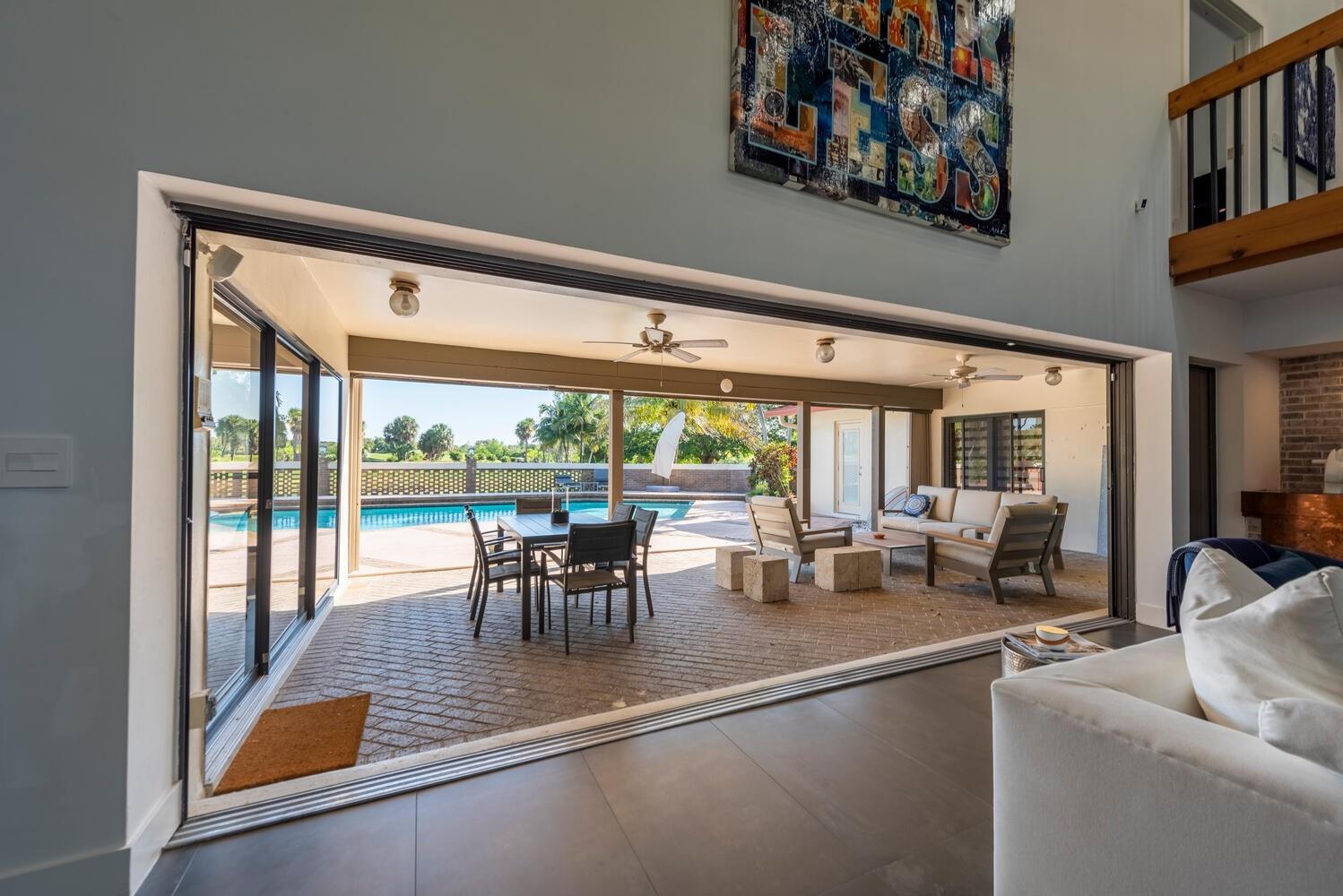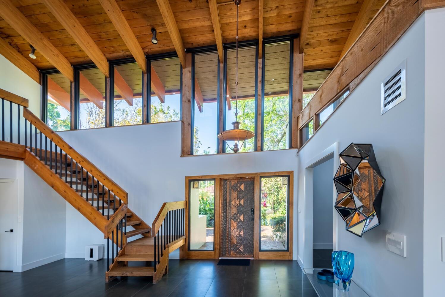 Spectacular home remodeled to perfection with designer style & panache! Walk in and fall in love with the soaring wood beamed ceilings, clerestory glass windows & a grand open living space featuring a wood burning fireplace, a wet bar plus a wall of sliding doors connecting the outdoor resort-like enclosed pool and patios! Stunning new gourmet kitchen boasts brand new Sub Zero Refrigerator & Freezer, two TopZero sinks, & Quartzite counters. Private second floor master retreat features loft with built-in library/office, new remote zebra shades, spa like bath with open shower and soaking tub. 3 large bedrooms w/3 remodeled baths in first floor wing. Large family room for family enjoyment could be used for gym,in-law quarters,etc. Solar panels, and hurricane protection.