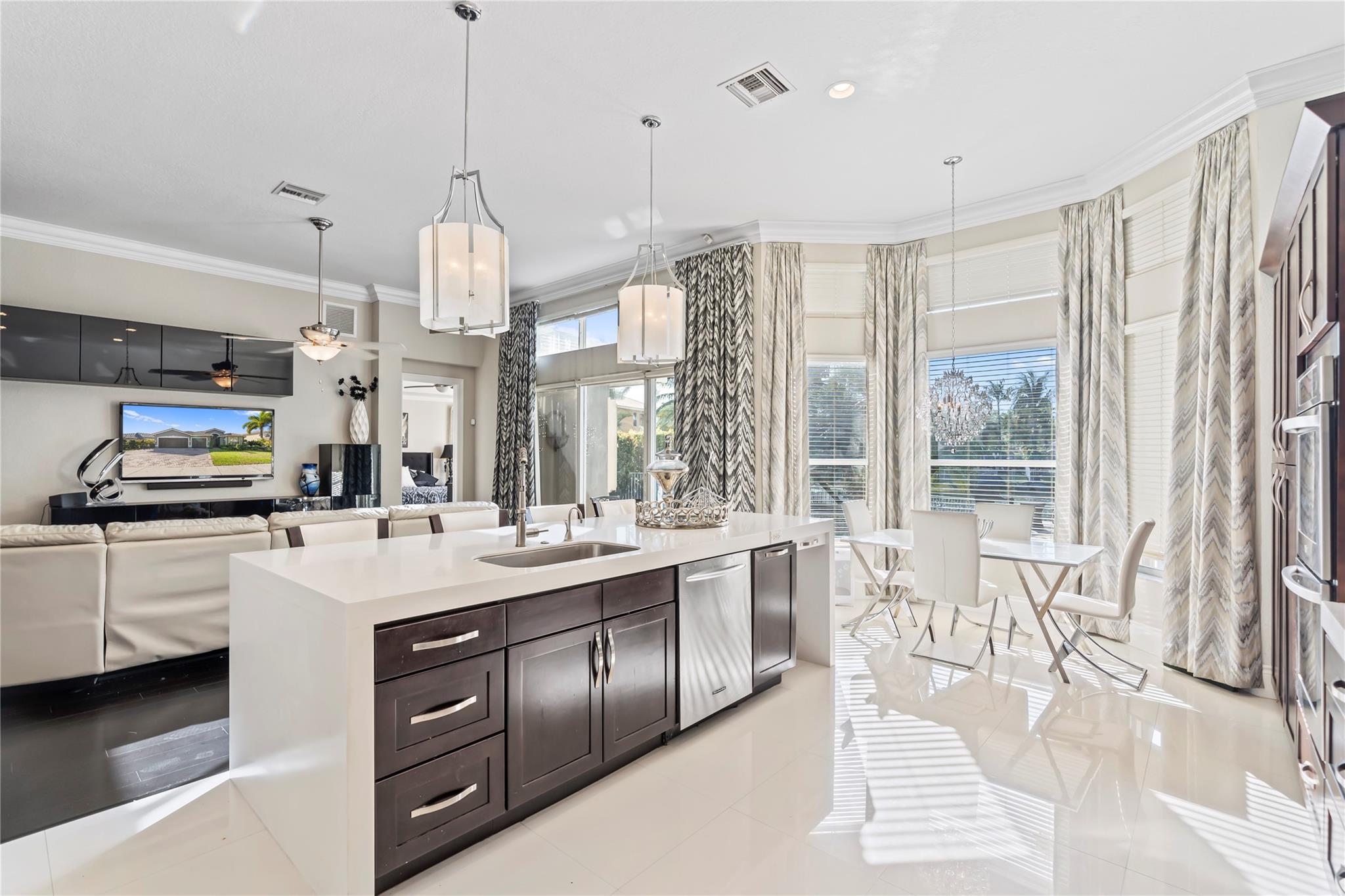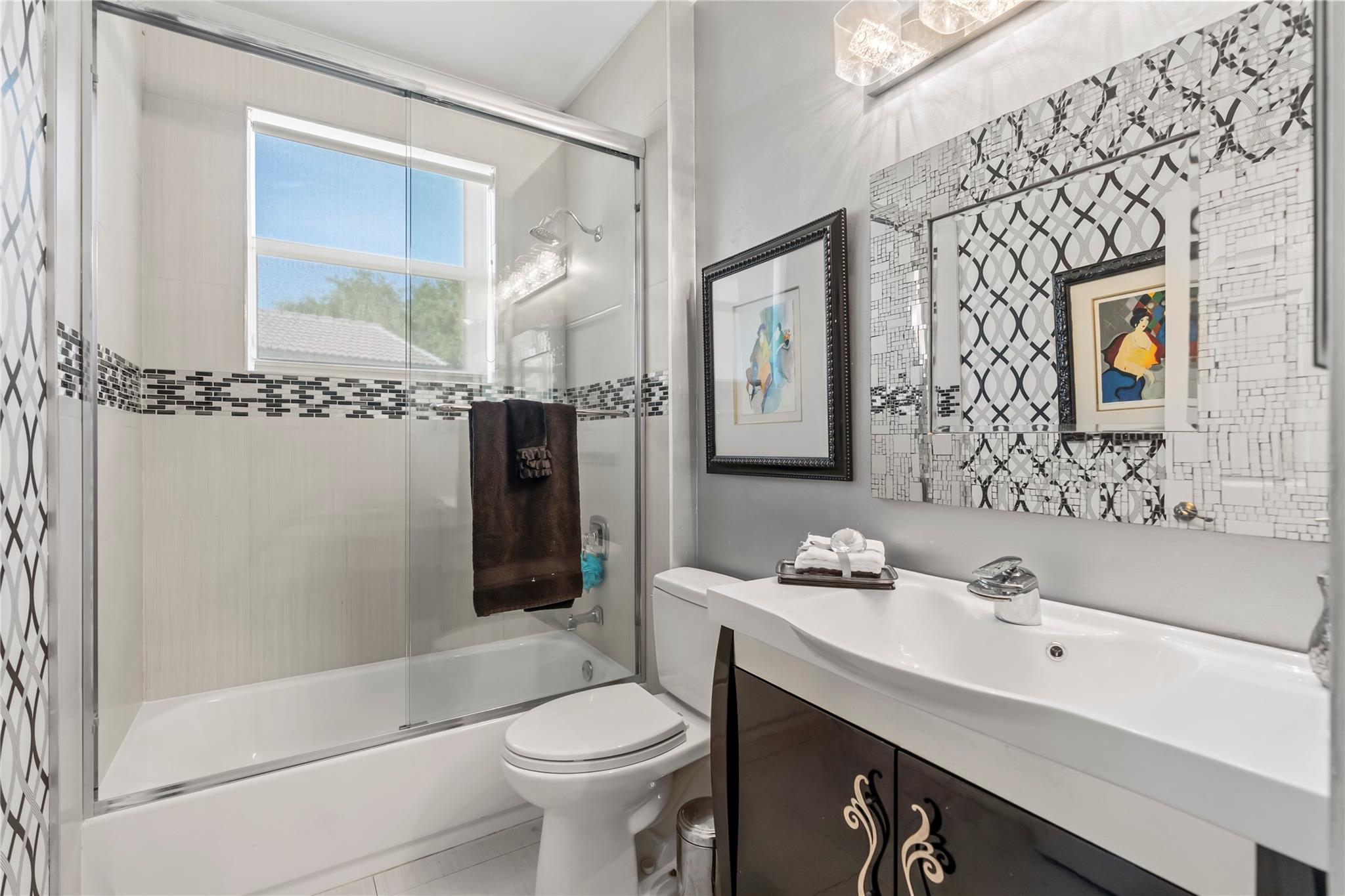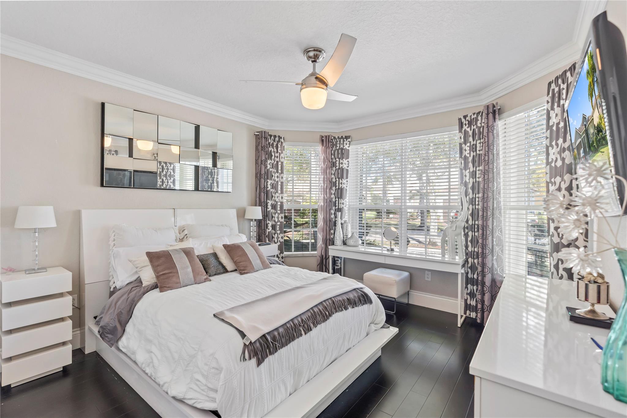 Spacious one-story home in the desirable Isles at Sunset Lakes neighborhood. The property has a great floor plan with 4 bedrooms ( 2bed has been converted into another master bedroom), 3 full bathrooms plus a den or 5th bedroom. Gourmet kitchen with, quartz countertops, SS appliances, double oven and tons of wooden cabinet space that flows right into the big family room. Porcelain floors in the kitchen and laminate floors in the rest of the home. New A/C units and new water heater. Enjoy and relax in the cozy backyard with a pool and lake. Spectacular clubhouse with fitness center, tennis & basketball courts, pool, kids area playground and amazing sunset lake views