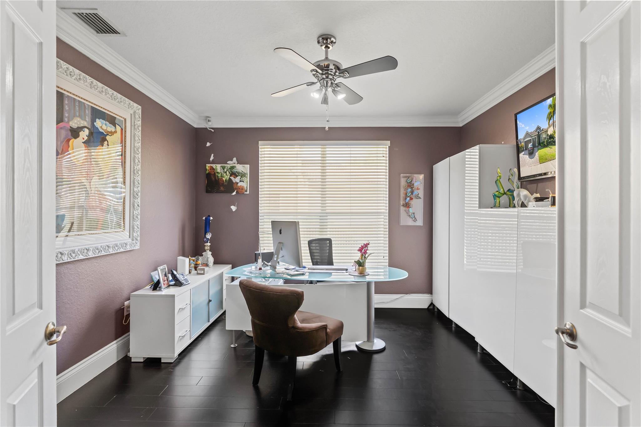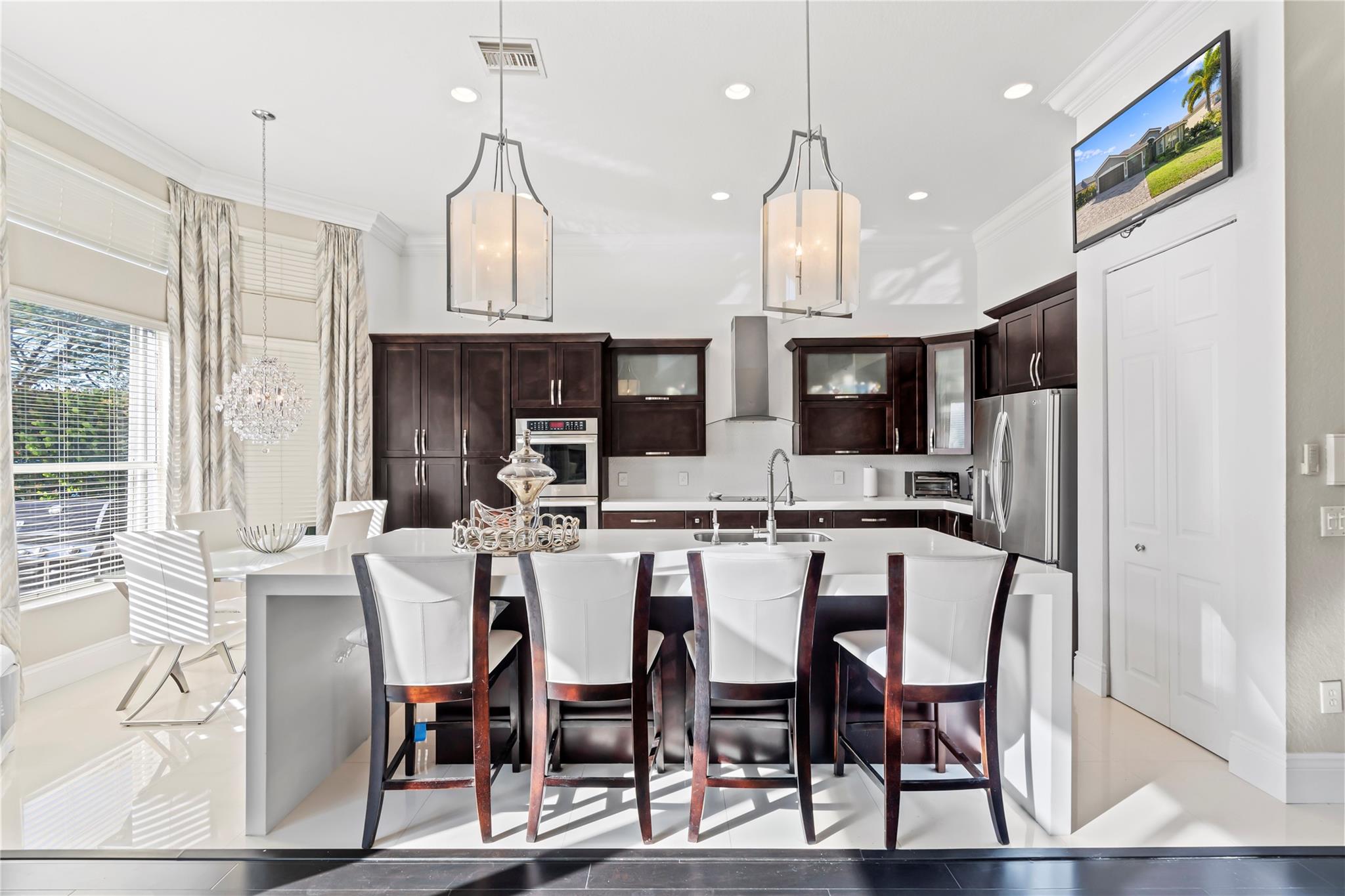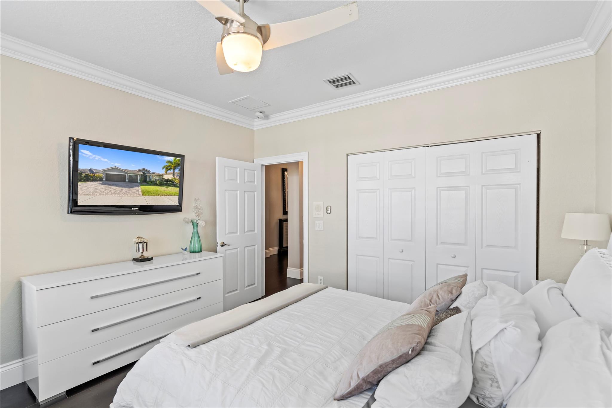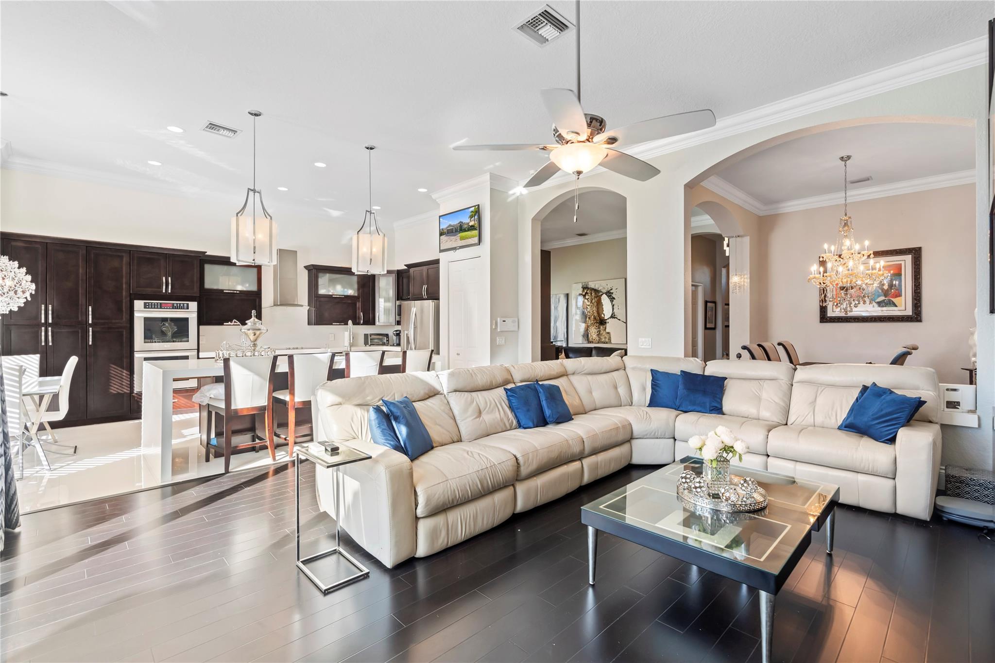 Spacious one-story home in the desirable Isles at Sunset Lakes neighborhood. The property has a great floor plan with 4 bedrooms ( 2bed has been converted into another master bedroom), 3 full bathrooms plus a den or 5th bedroom. Gourmet kitchen with, quartz countertops, SS appliances, double oven and tons of wooden cabinet space that flows right into the big family room. Porcelain floors in the kitchen and laminate floors in the rest of the home. New A/C units and new water heater. Enjoy and relax in the cozy backyard with a pool and lake. Spectacular clubhouse with fitness center, tennis & basketball courts, pool, kids area playground and amazing sunset lake views