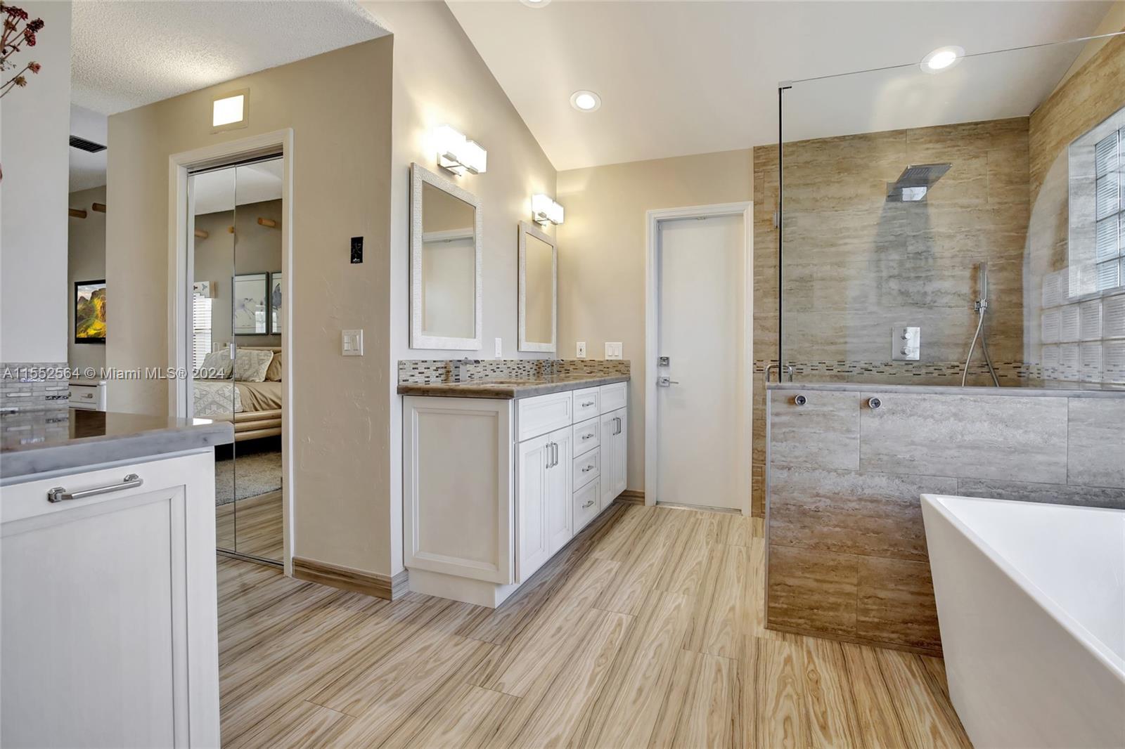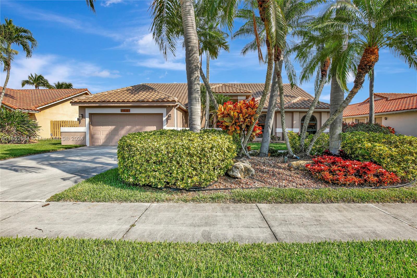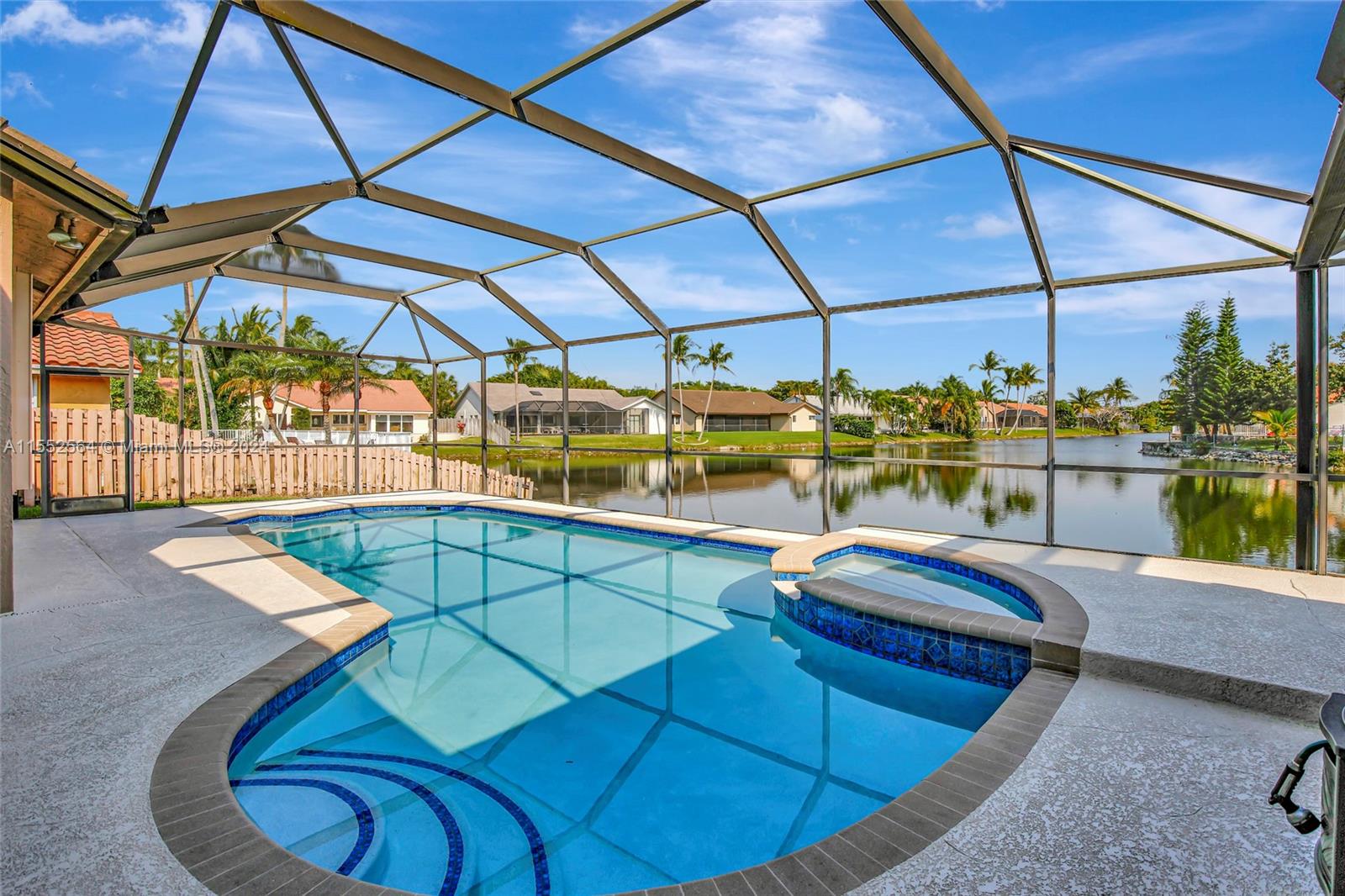 Stunning pool home located on premiere lakefront lot in coveted newer section of Jacaranda Lakes!! 2884' (under air). Spectacular lake views from all main living areas! BRAND NEW 5 ton Rheem AC installed (May 2024). Remodeled kitchen w/ wood cabinetry, granite tops, SS appliances, large pantry w/ pullouts, lazy Susan, & double oven! Impact glass windows, impact doors & garage door & accordion shutters. Large master bedroom w/ sitting area overlooking pool/lake, 2 walk in closets. Renovated master bath with double vanity, quartz countertops, stand alone tub, shower w/ frameless enclosure. Vaulted ceilings, open floorplan, 8' doors. Updated flooring in secondary bedrooms. Pool tile, coping diamondbrite, pump/filter, sprinkler pump all new. Circular driveway. Zoned for Central Park Elem!