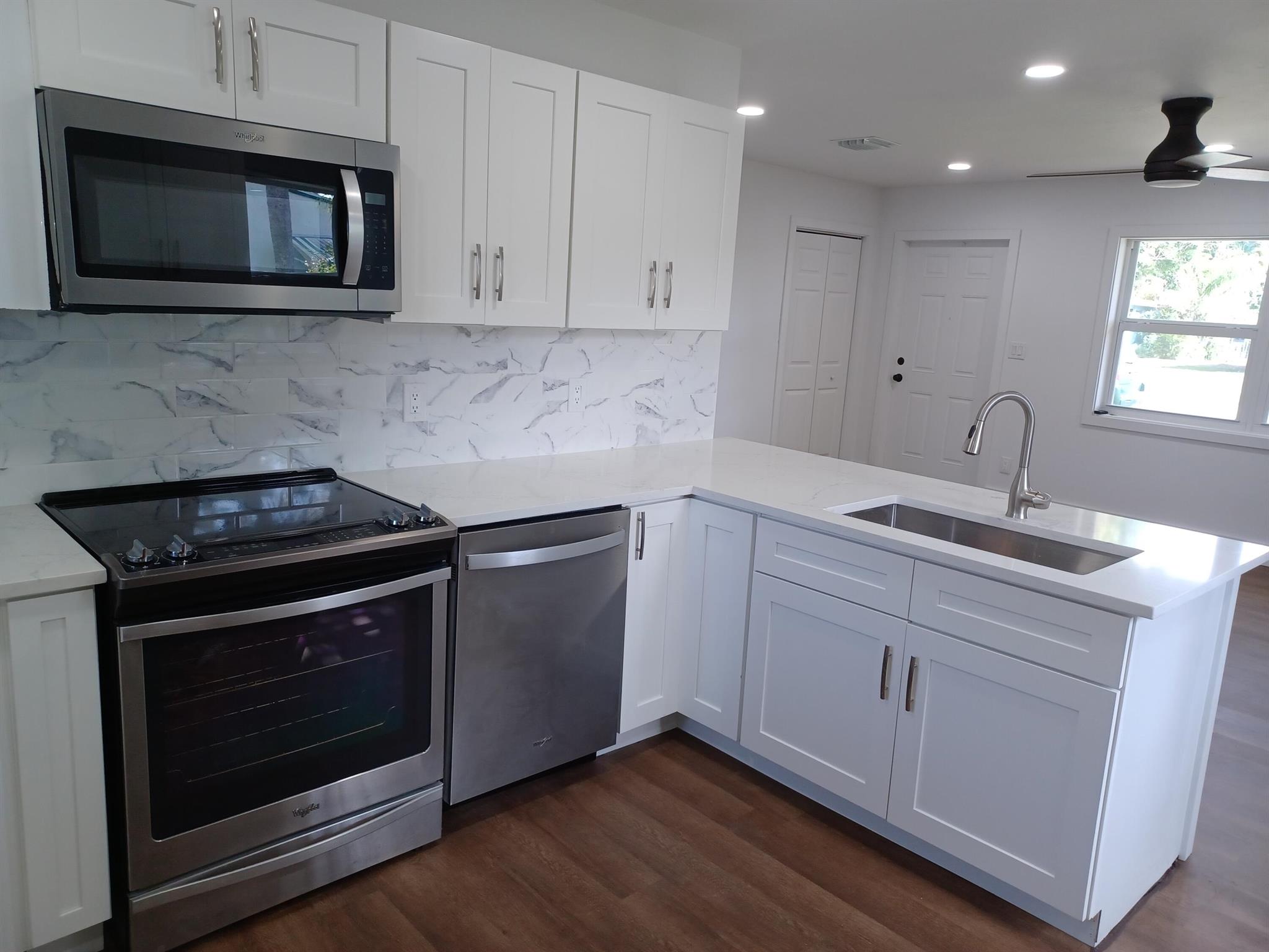Beautifully Remodeled CBS home with New kitchen with Quartz contertops and stainless steel apliances, Hurricane impact windows, new tankless hot water heater, new central ac and duct work, new bathroom, new closet doors. Freshly painted inside and out. All windows and doors cased out with hardwood, new flooring and baseboards and Decora outlets and light switches plus so much more. Great backyard with shed. Make this your new home.