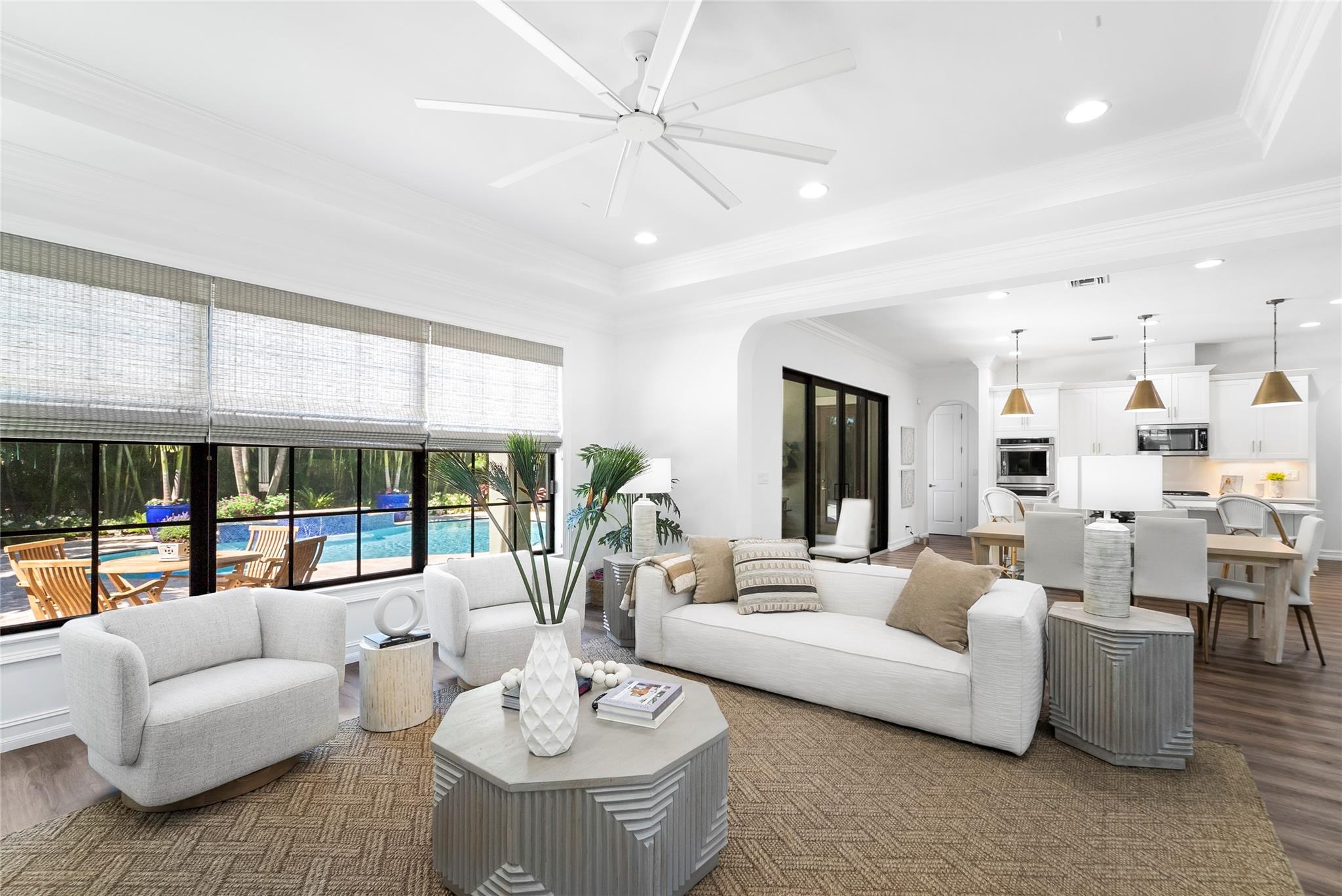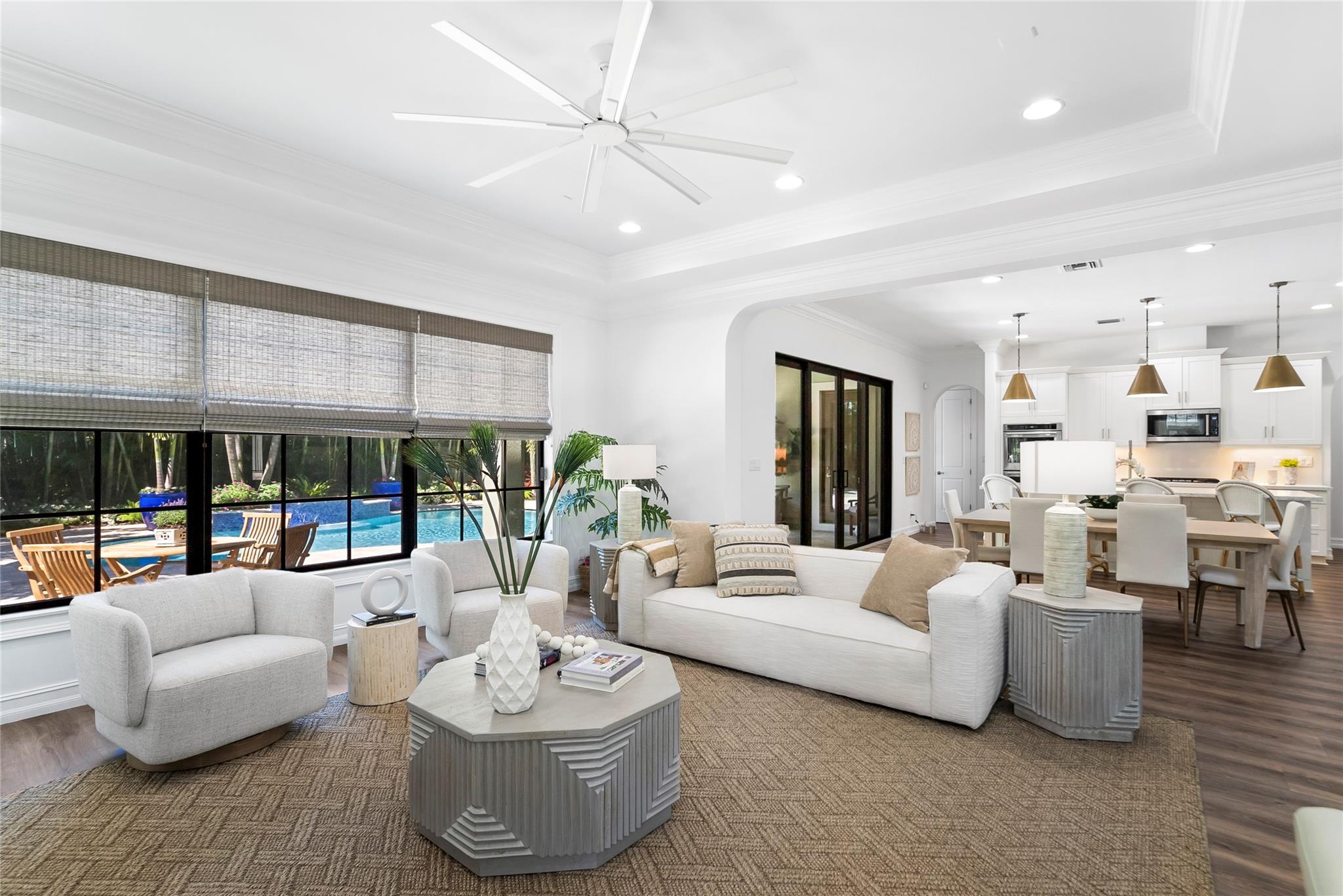 STUNNING LAUREL MODEL W/ OVER 200K IN UPGRADES! The Backyard Is a Tropical Oasis! Corner Home w/ No House Behind You Or On the Side, This Home Has 5 Beds, 4 Baths, Plus Bonus Room, Loft & Salt Water Heated Pool, Features Include Wood Floors, Custom Closets, DREAM PANTRY, Designer Wall Paper, Remodeled Laundry Room, Whole House Water Filtration, Lush Landscaping w/ Turf, Full Fenced Backyard, Crown Molding, Custom Window Treatments, Motorized Patio Screen, Freshly Painted Interior, Kitchen Has Gorgeous Quartz Countertops. Gas Cooking, Impact Windows, Resort Style Amenities Include Clubhouse, Splash Park, Fitness Center, Basketball and Tennis Courts, Dog Park,HOA Includes all Landscaping and Irrigation, Parkland A+ Schools!
